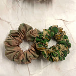 • Set of two silk scrunchies.