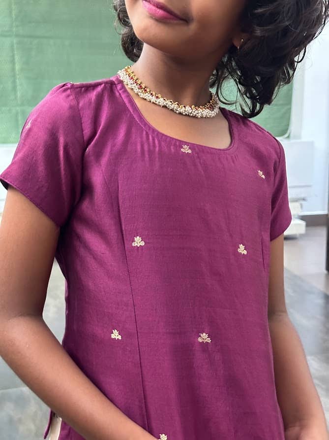 Magenta handwoven pure silk saree with small flower buttis in Benaras weave