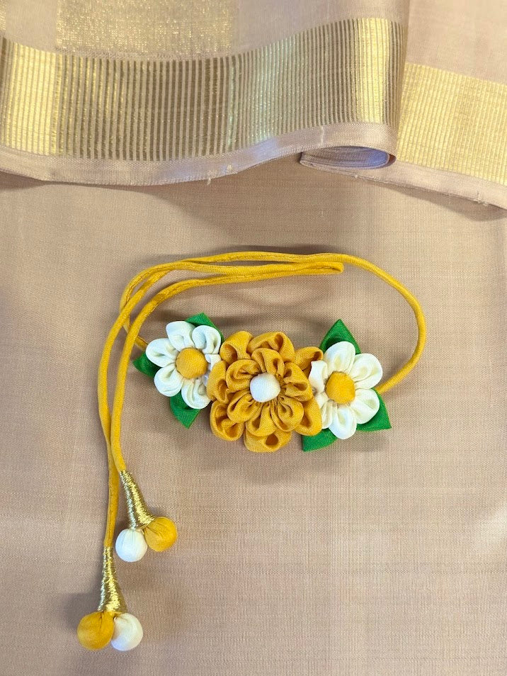 Trayi yellow royal blue chevron kanchipuram silk saree
