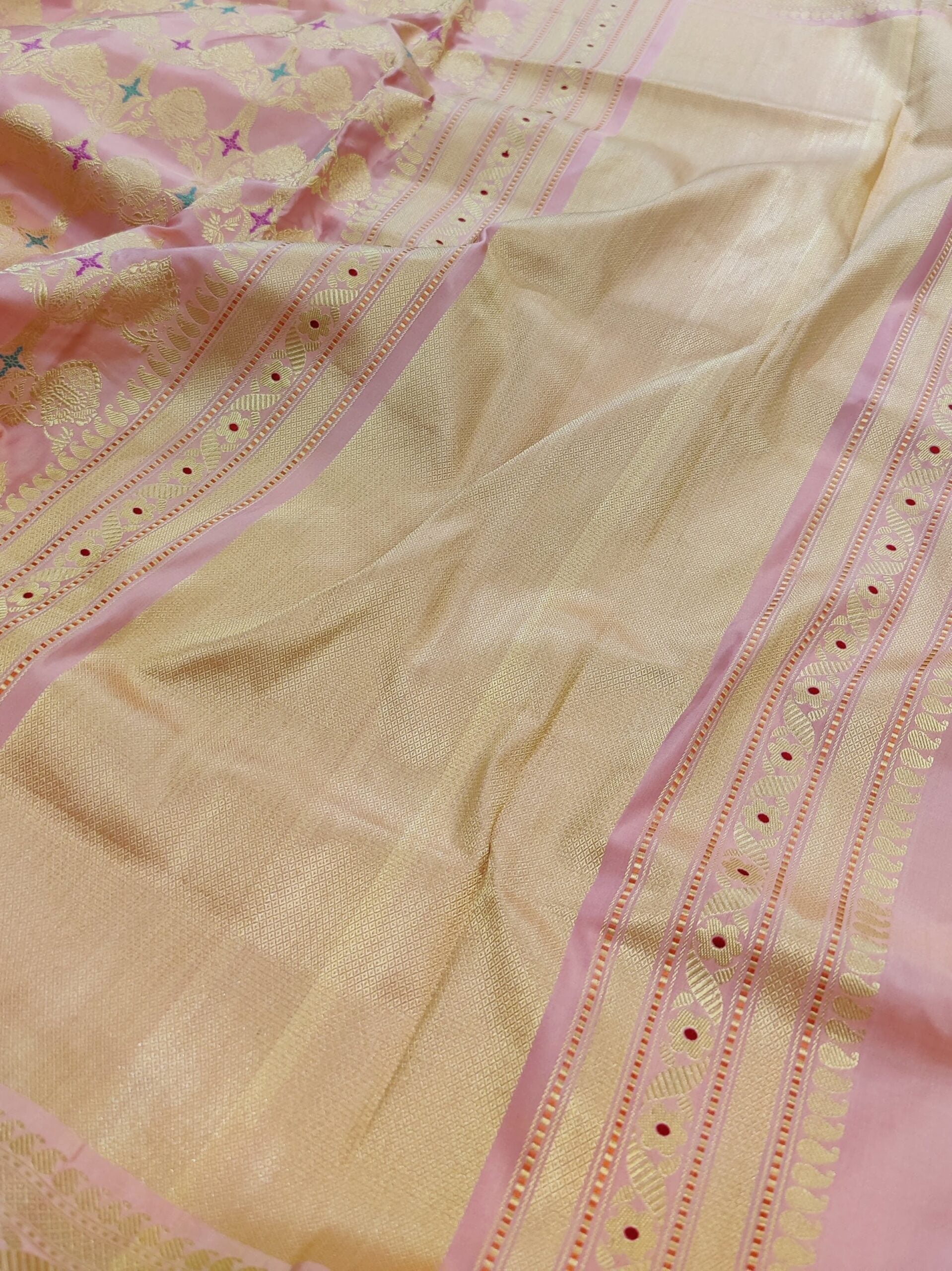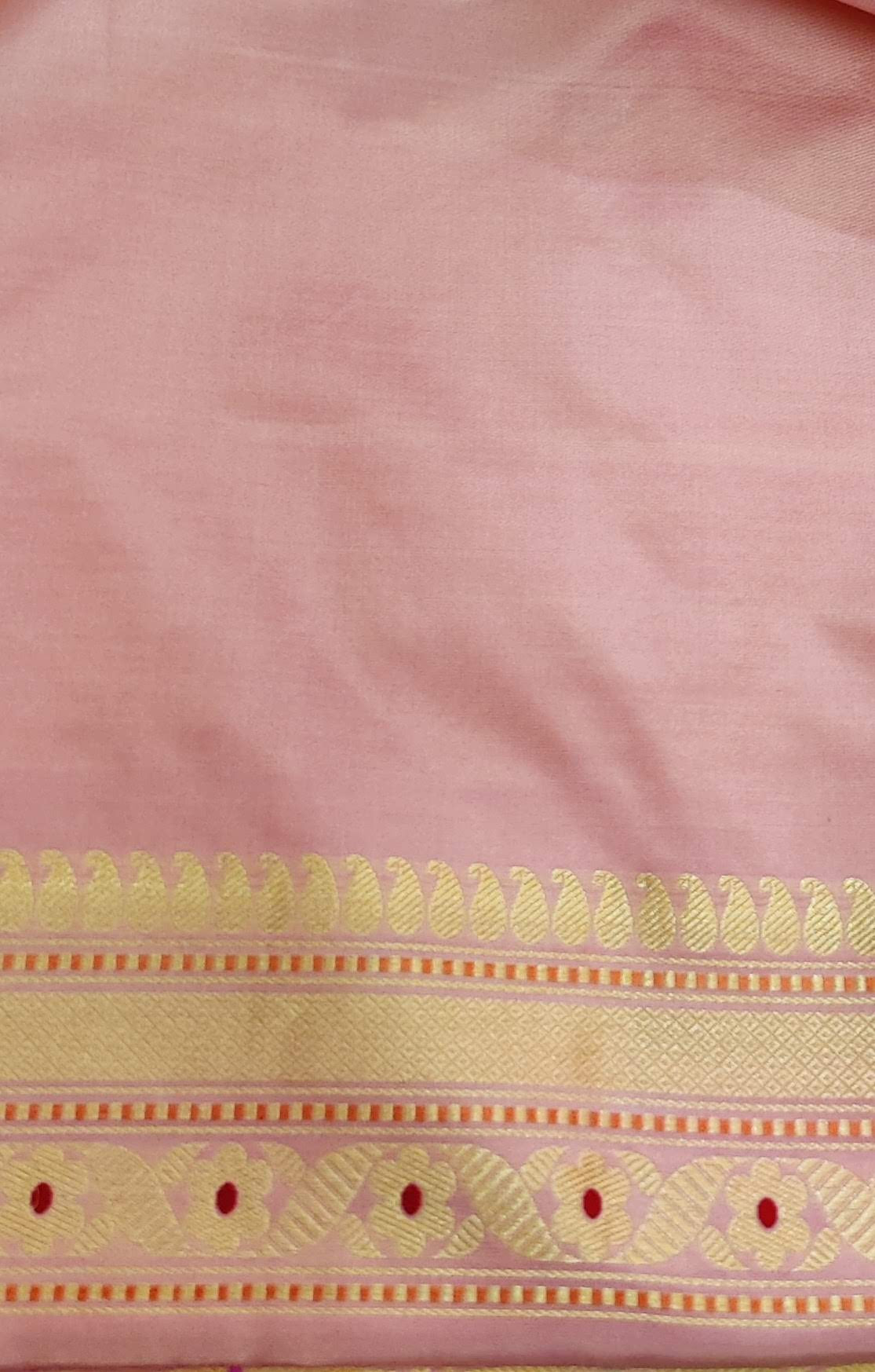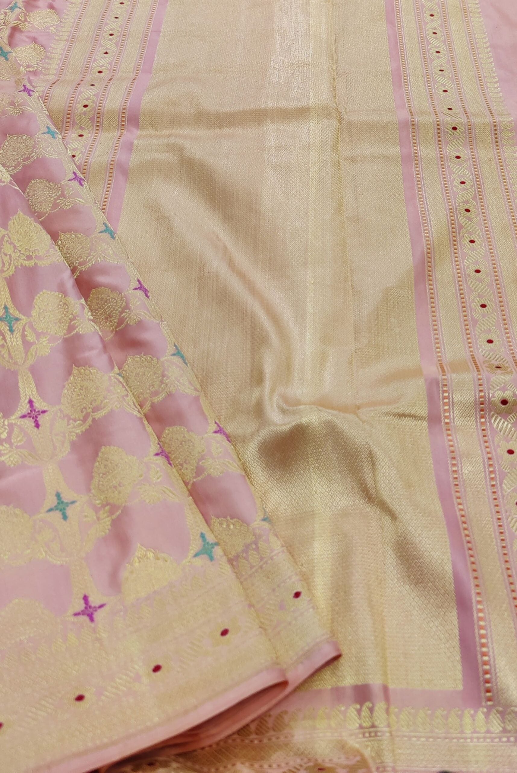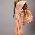 Light pink handwoven pure silk saree with all over floral pattern in Benaras weave
