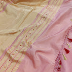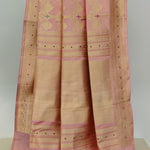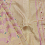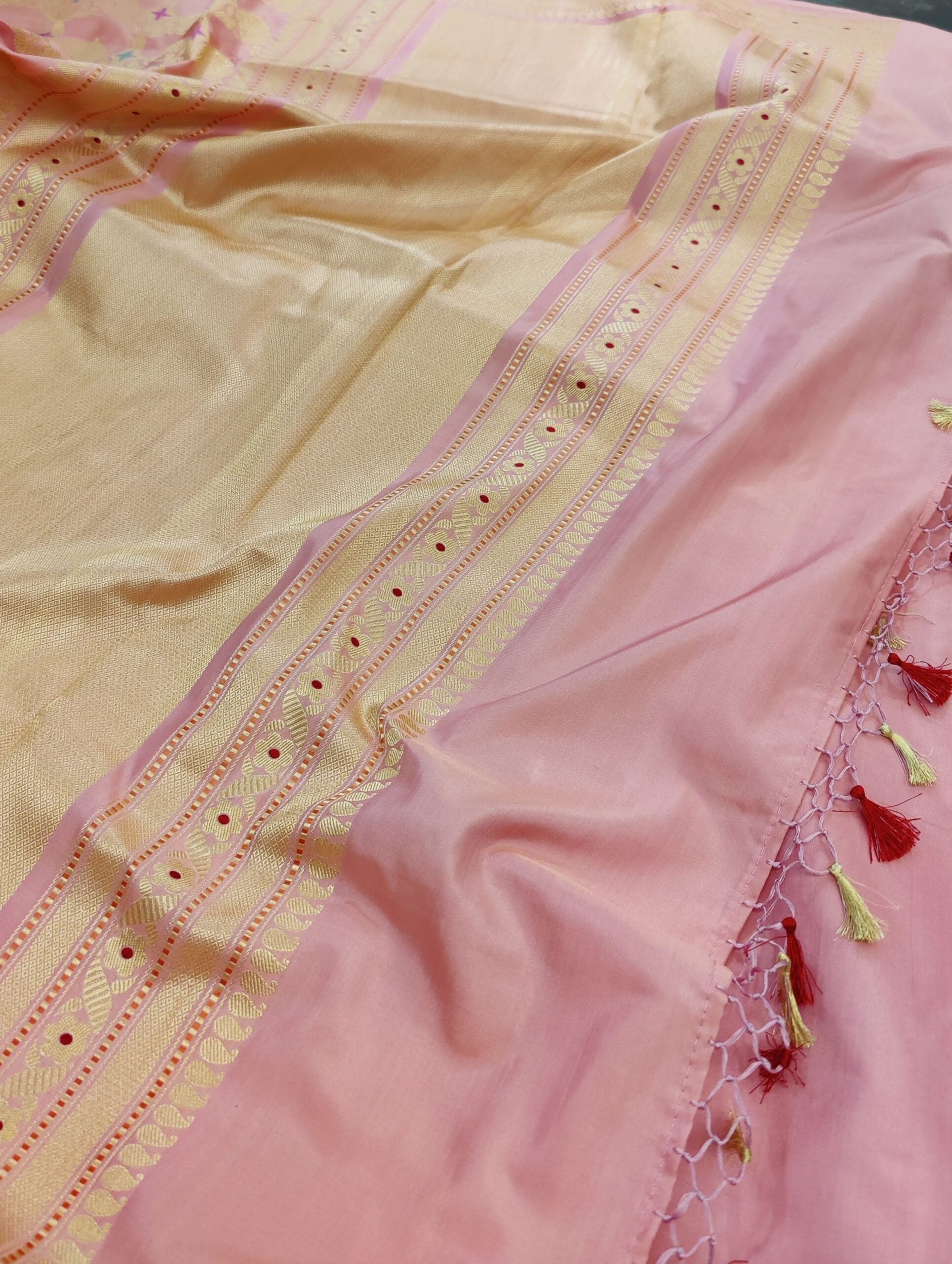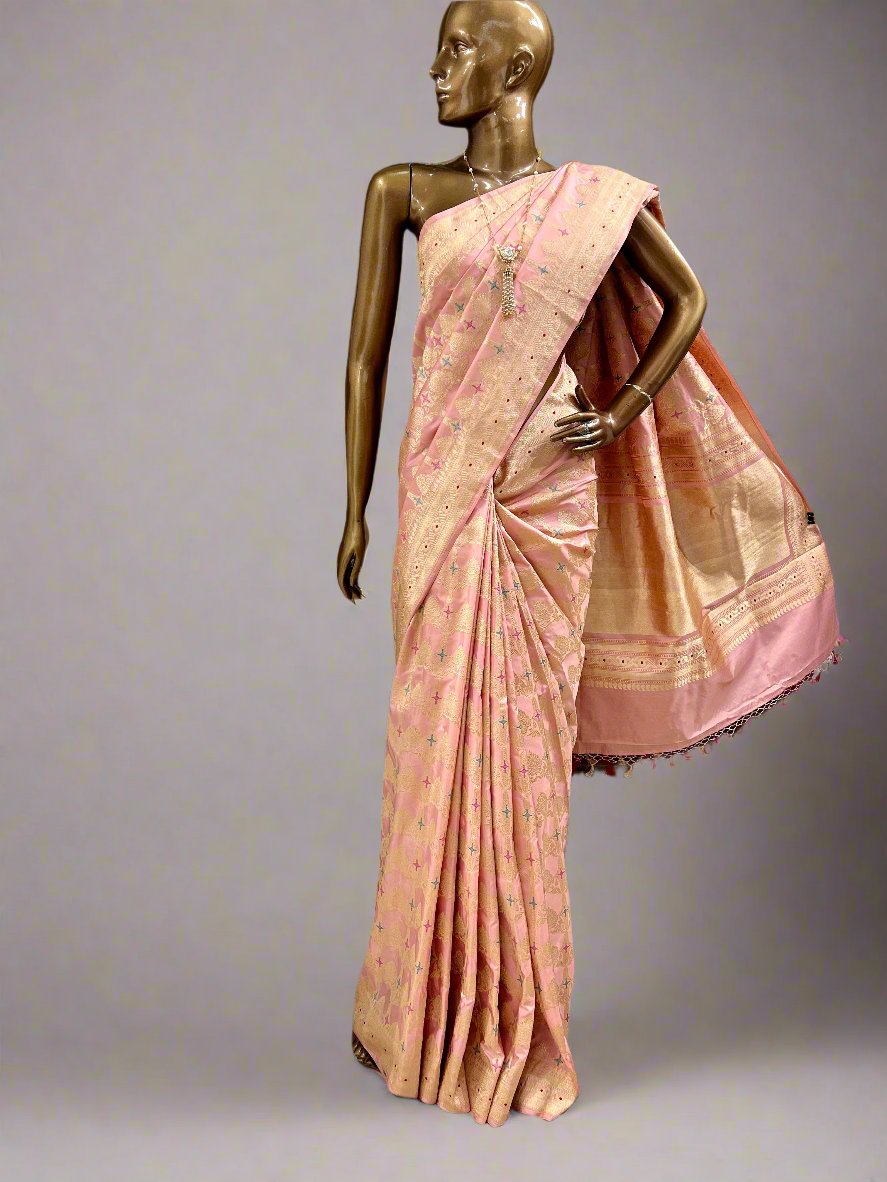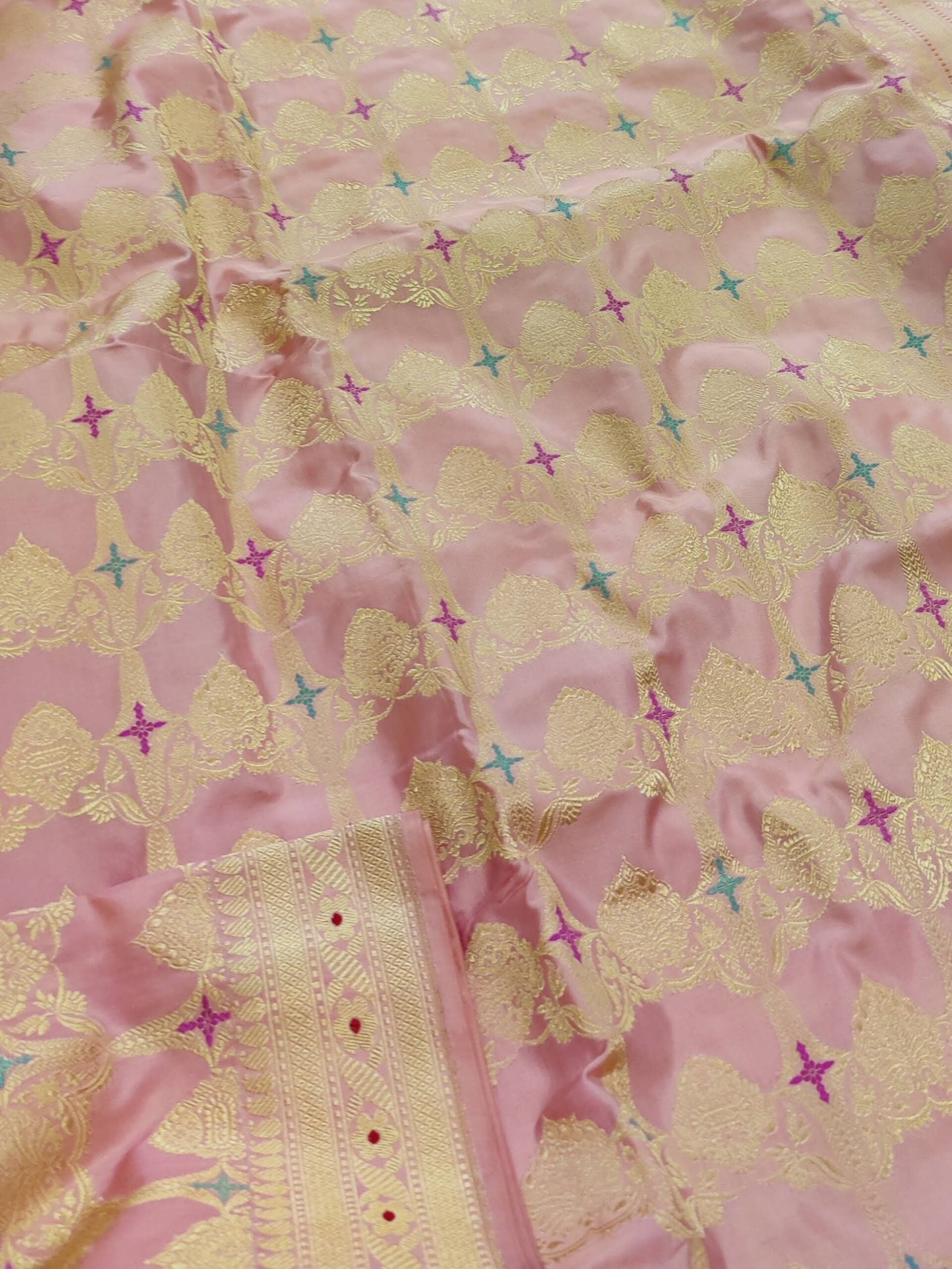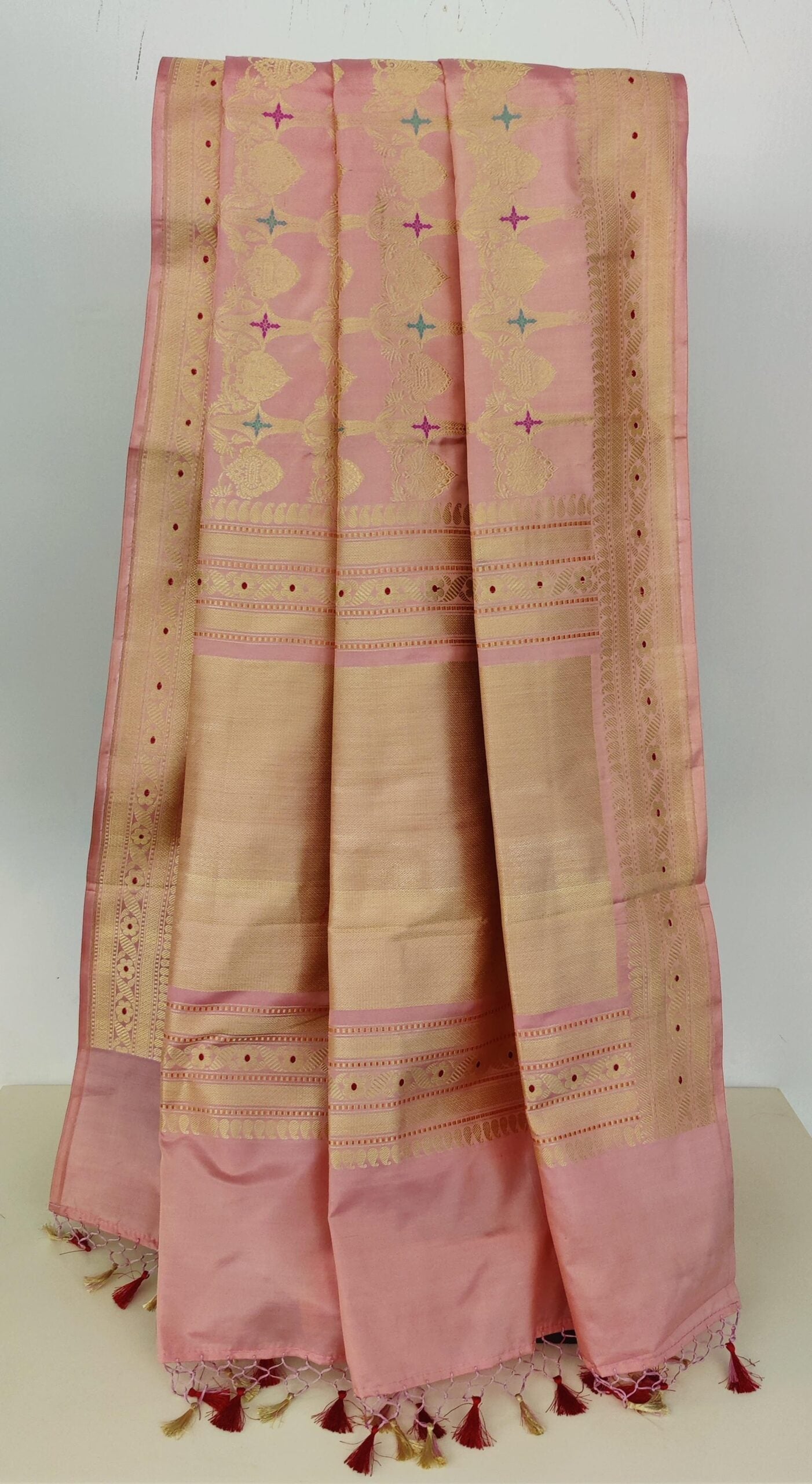 Light pink handwoven pure silk saree with all over floral pattern in Benaras weave