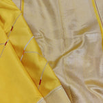Yellow handwoven pure silk saree with geometric stripes in Benaras weave