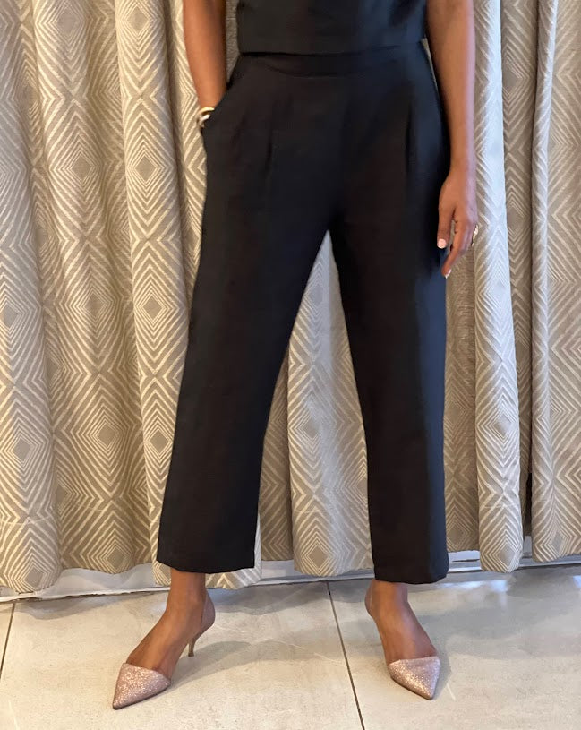 Online exclusive - Limited Edition A wardrobe staple comfortable Black linen cropped pantsAt Aavaranaa we are passionate about comfort and fitThe product is available only online and can also be customized and a lead time of 7 to 10 days as all outfits are made on orderThe model is 5'7" and she is wearing an XS size