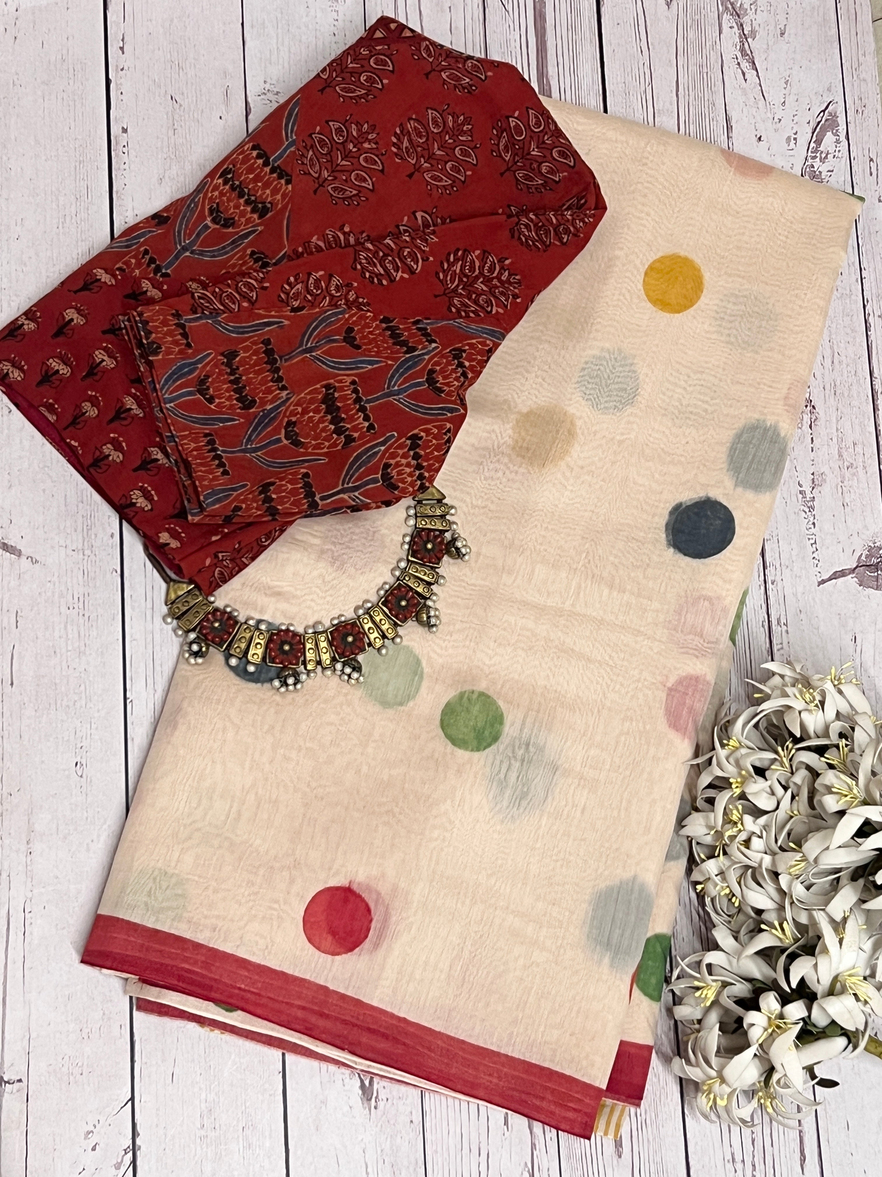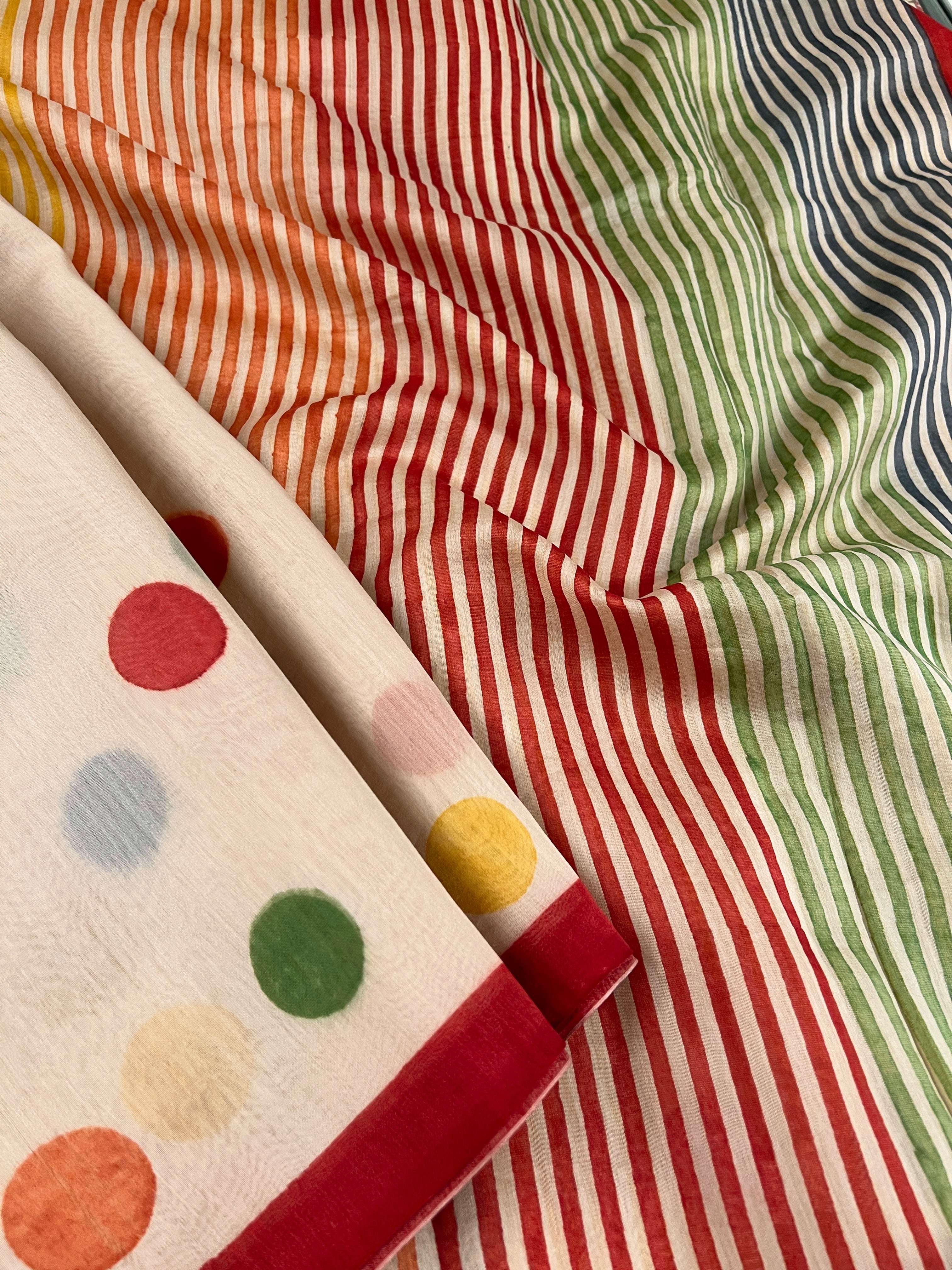 Multicoloured polka dots chanderi saree