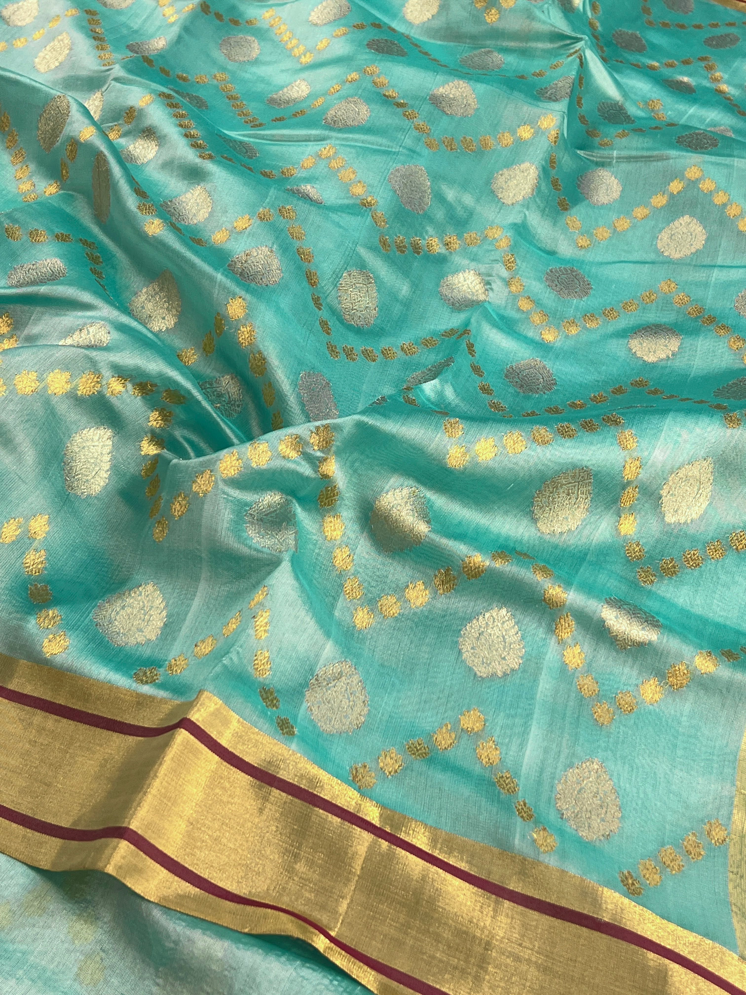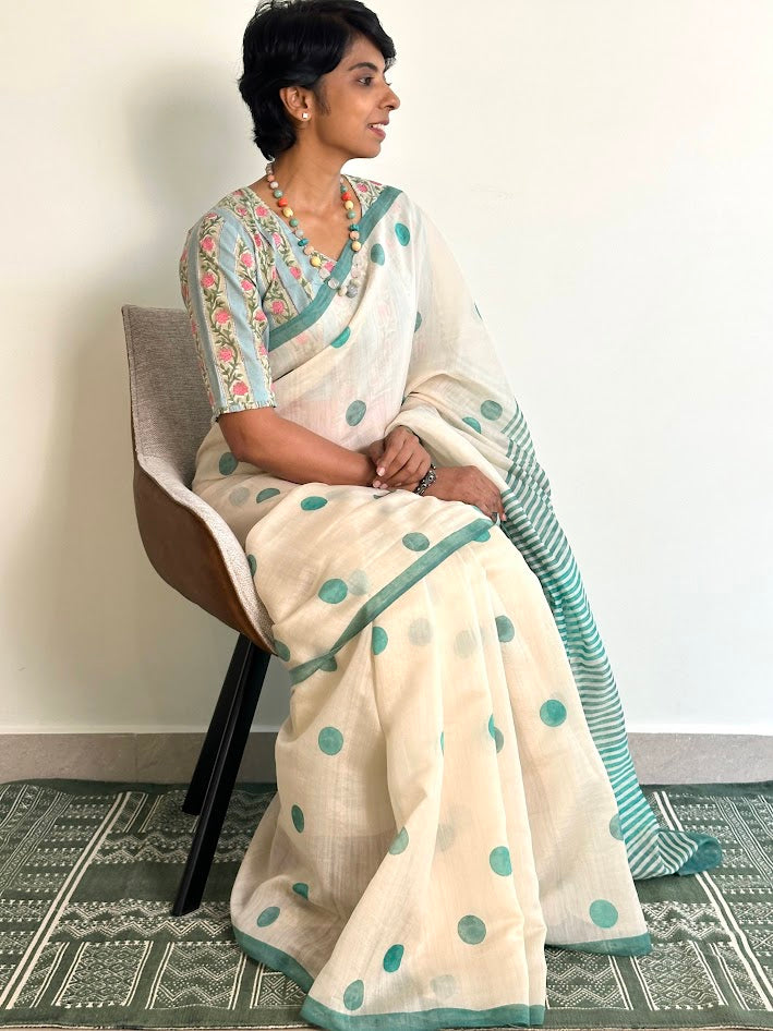 Teal polka dots chanderi saree