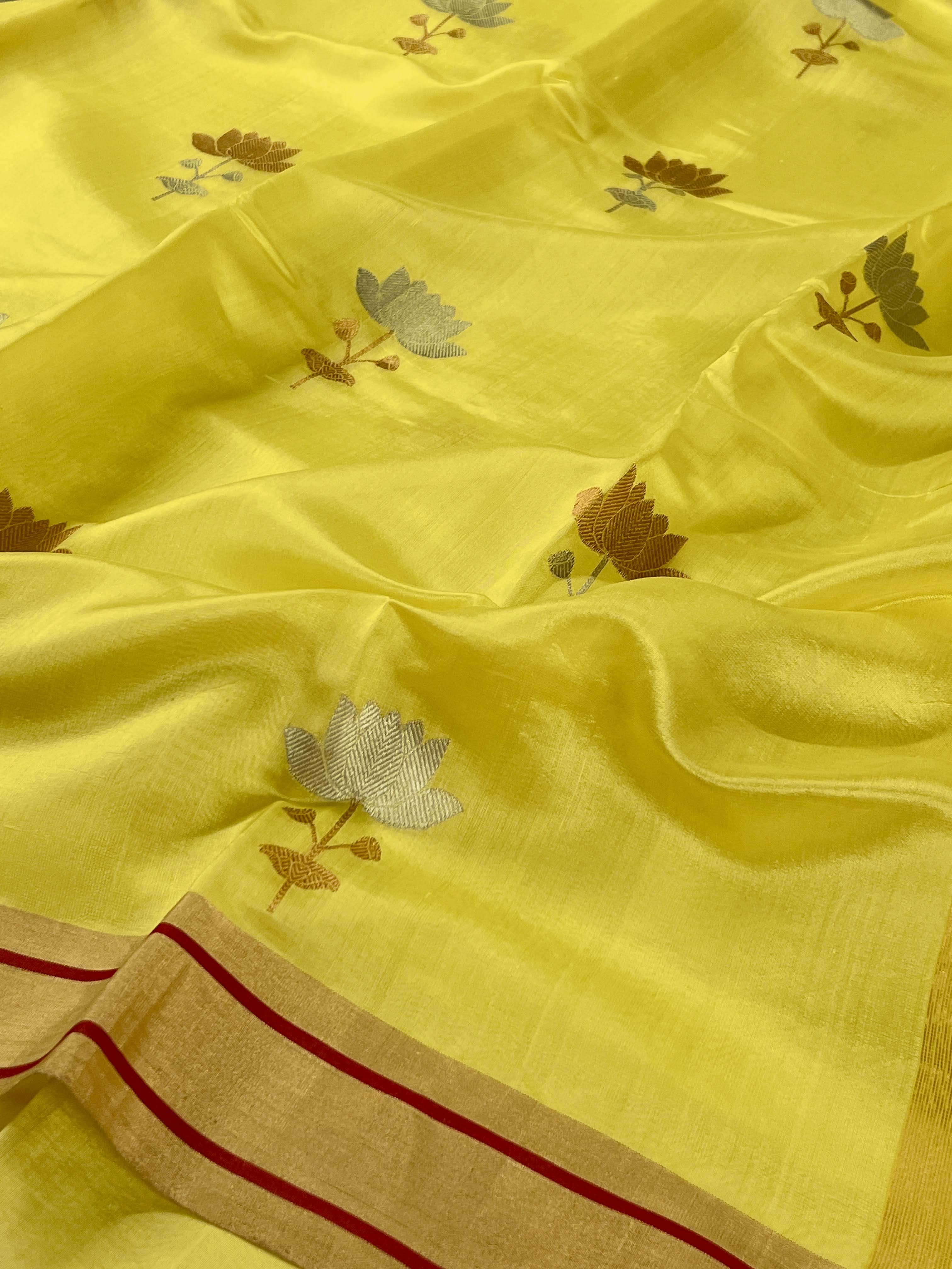 Neon yellow chandheri silk saree