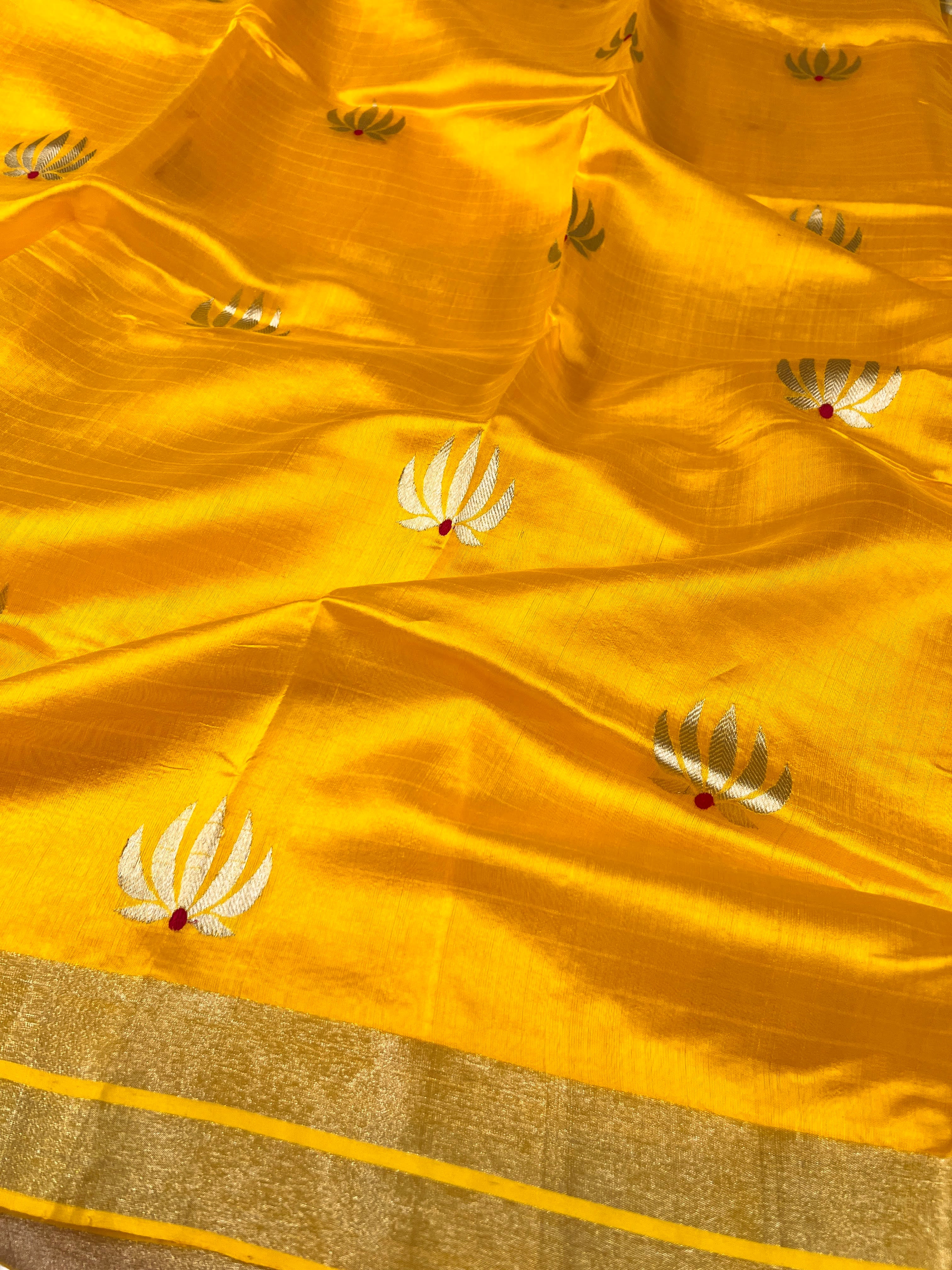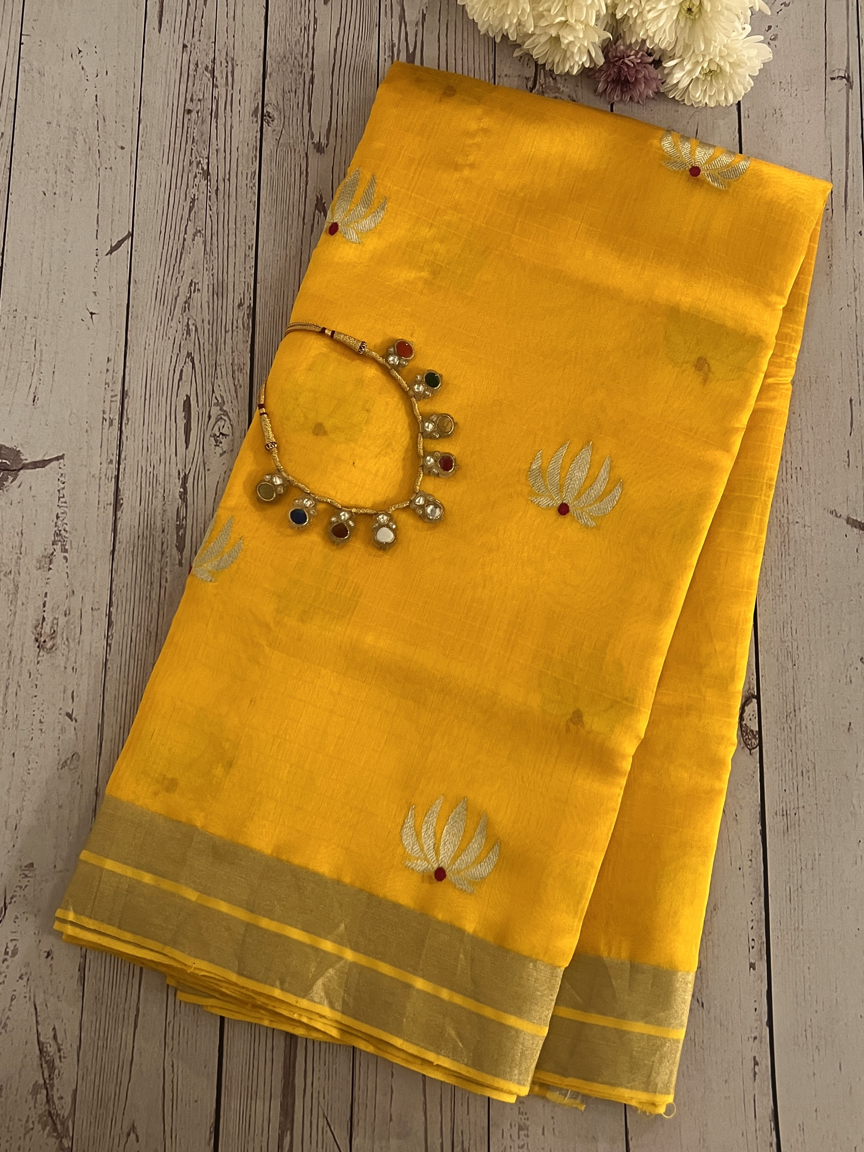 Yellow chandheri silk saree