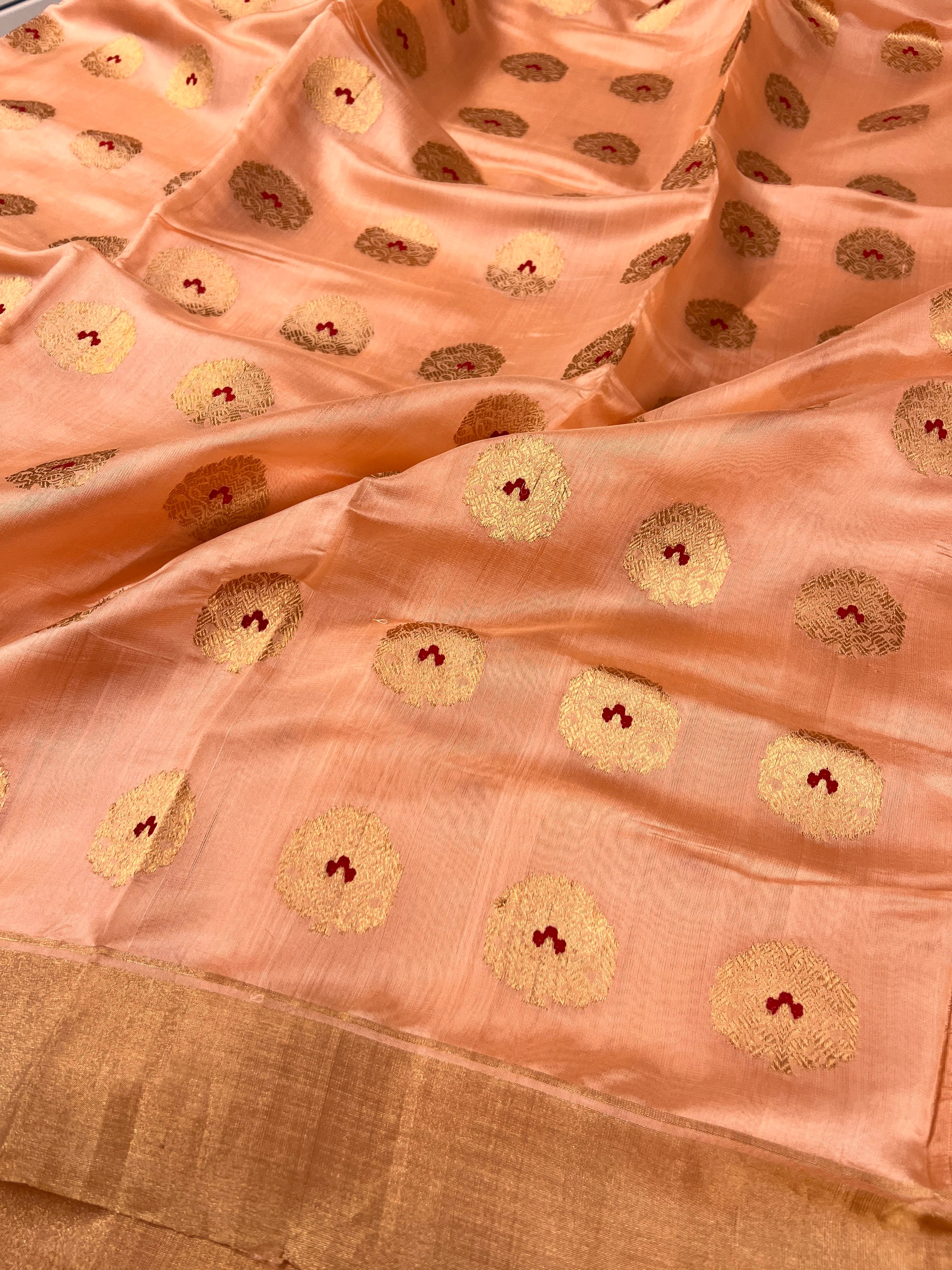 Peach meenakari chandheri silk saree
