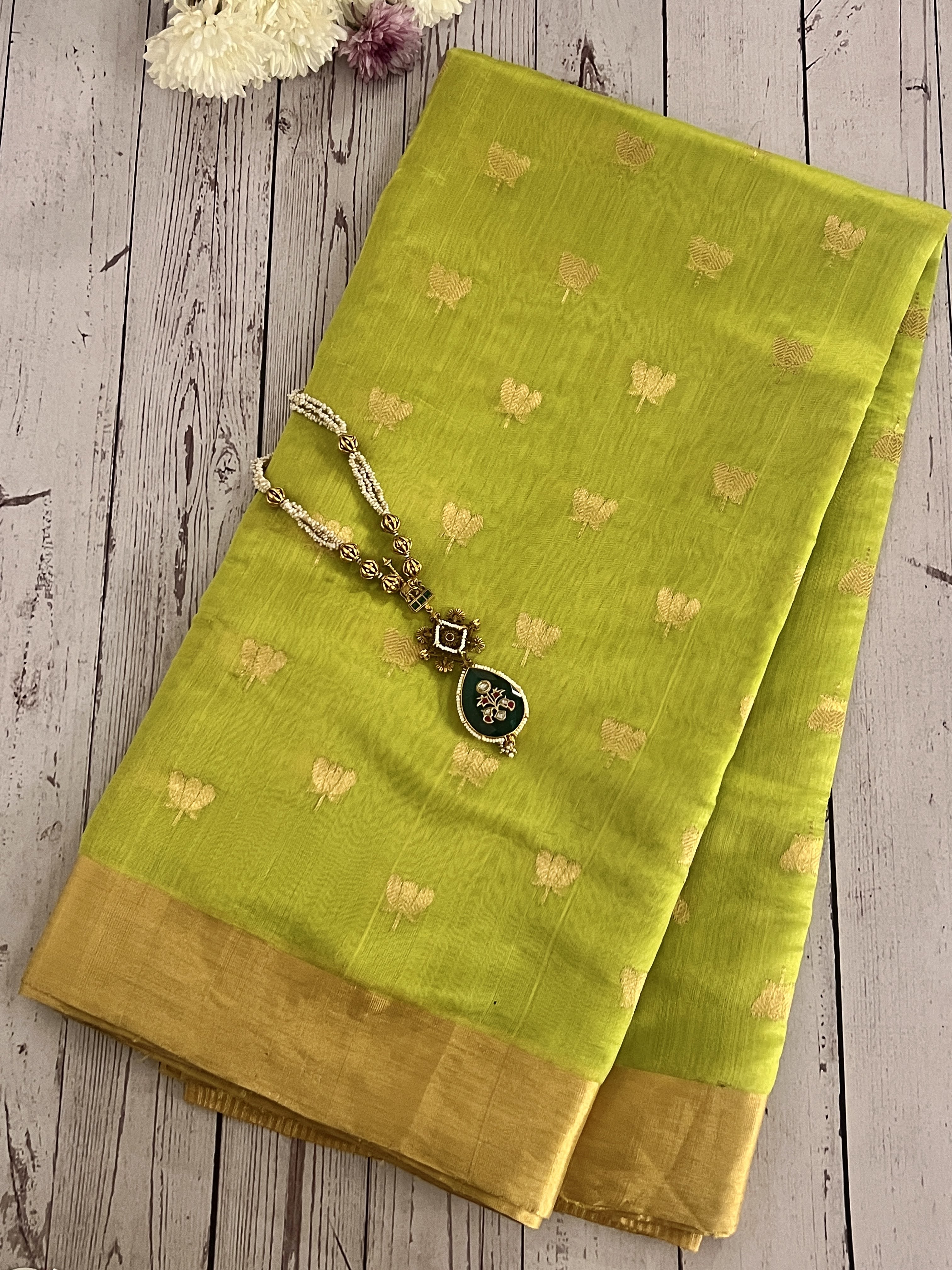 Neon green chandheri silk saree