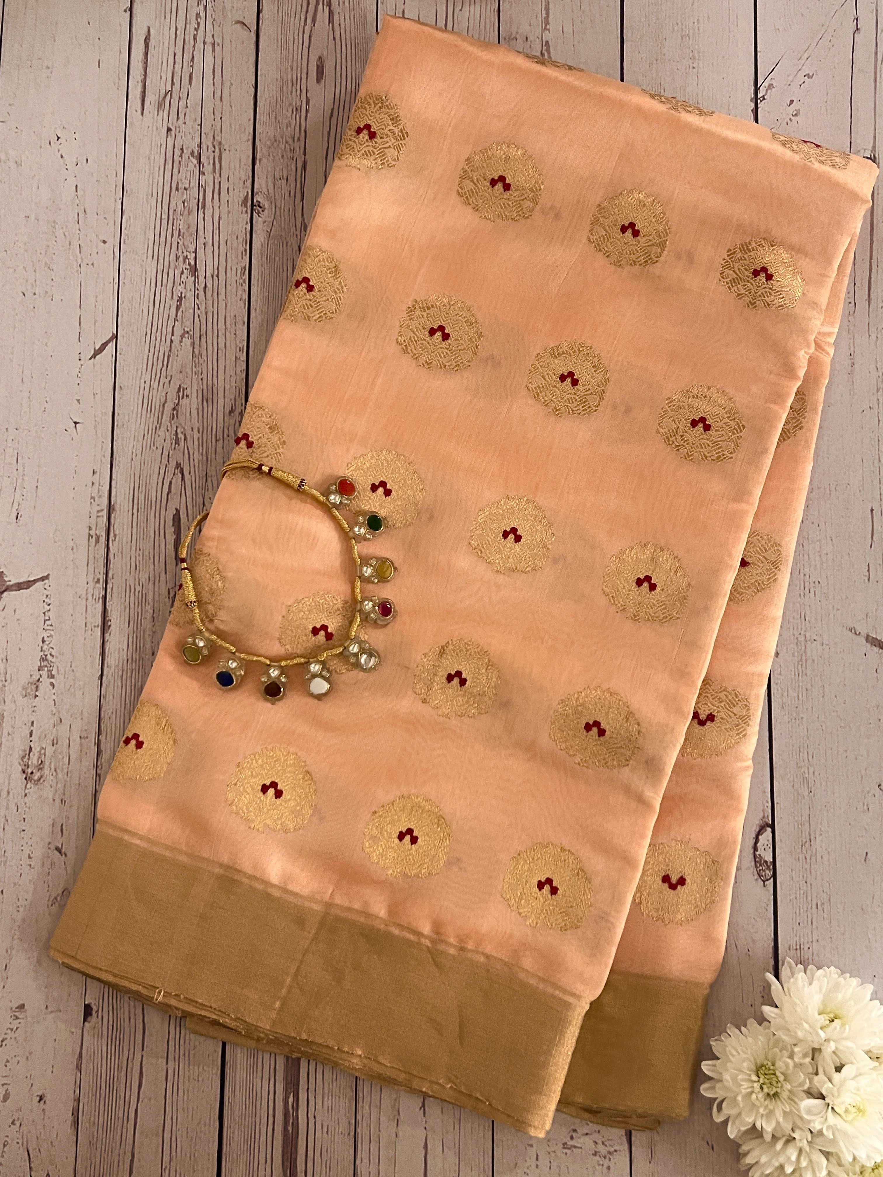 Cream gold chandheri silk saree
