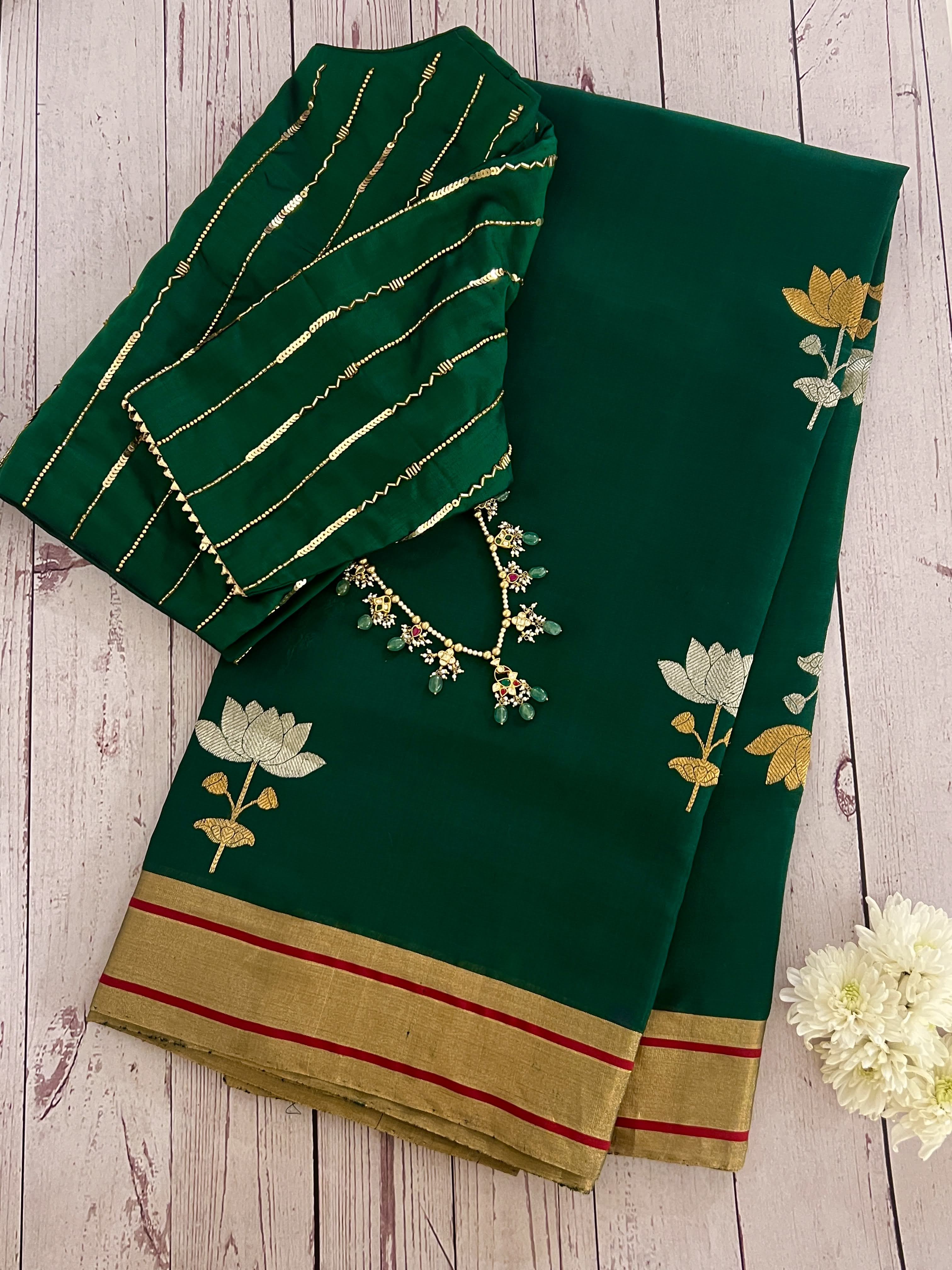 Lotus chandheri silk saree