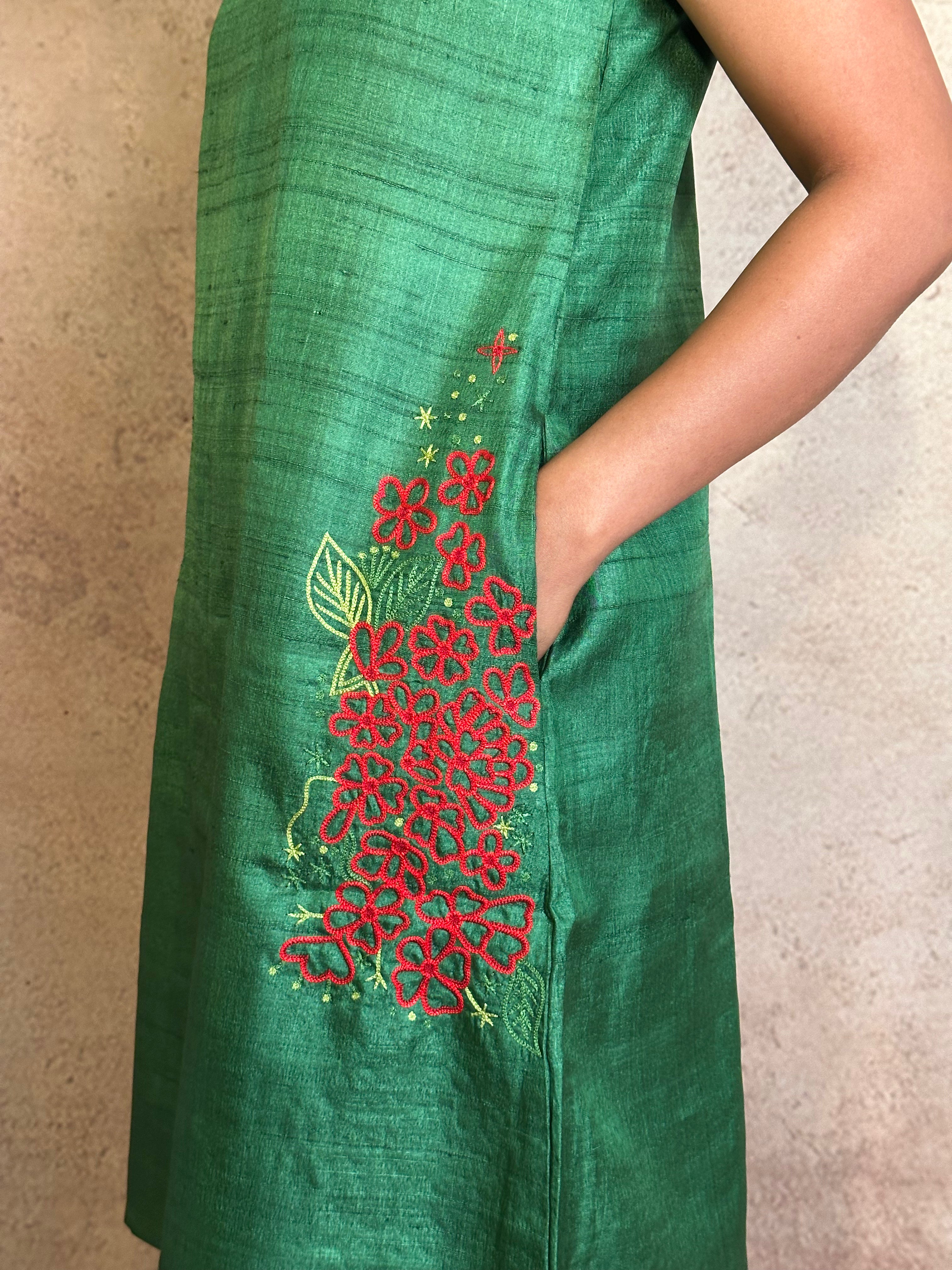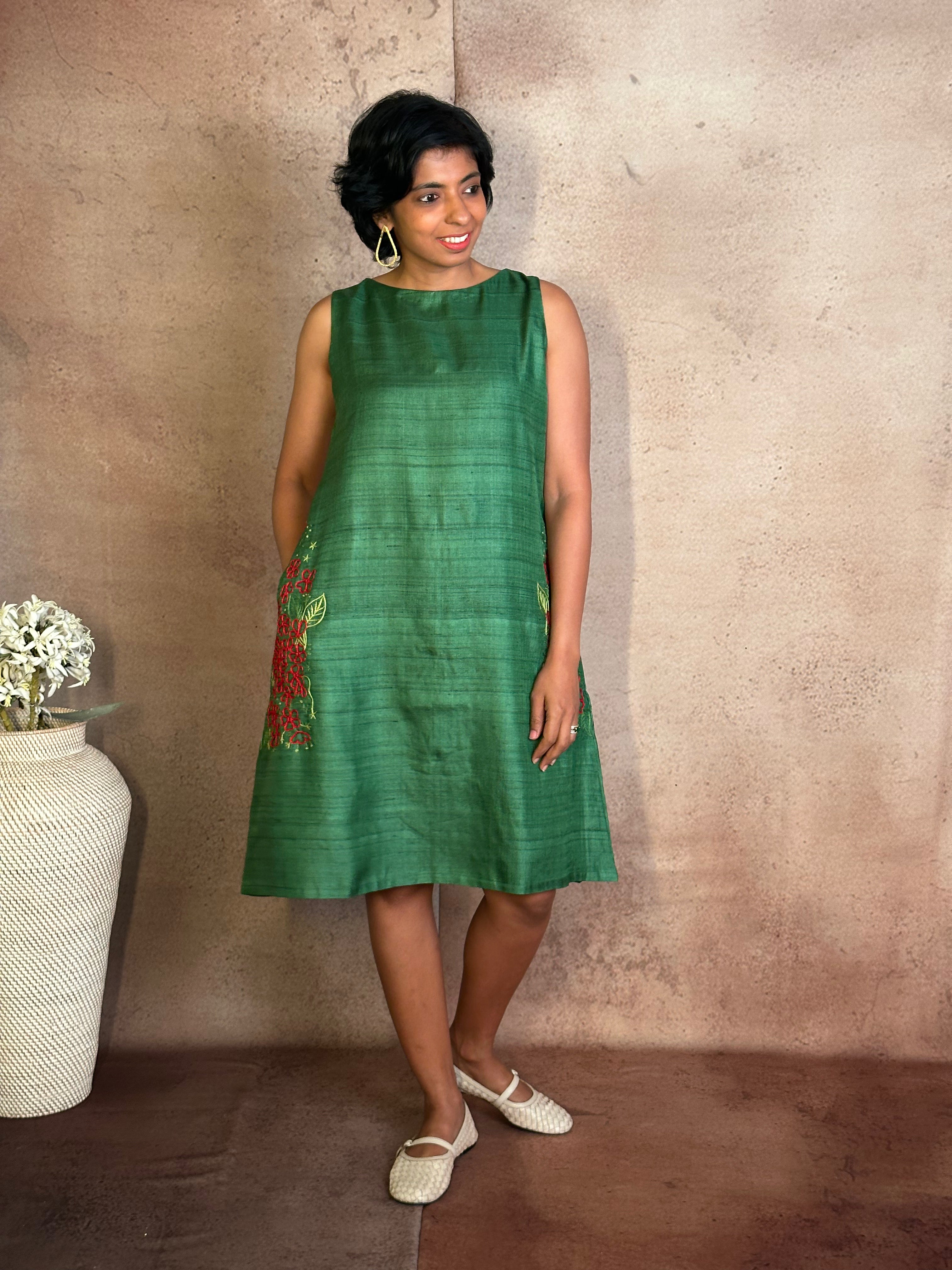 Crafted in rich tussar silk with velvet fabric accents for a luxe finish