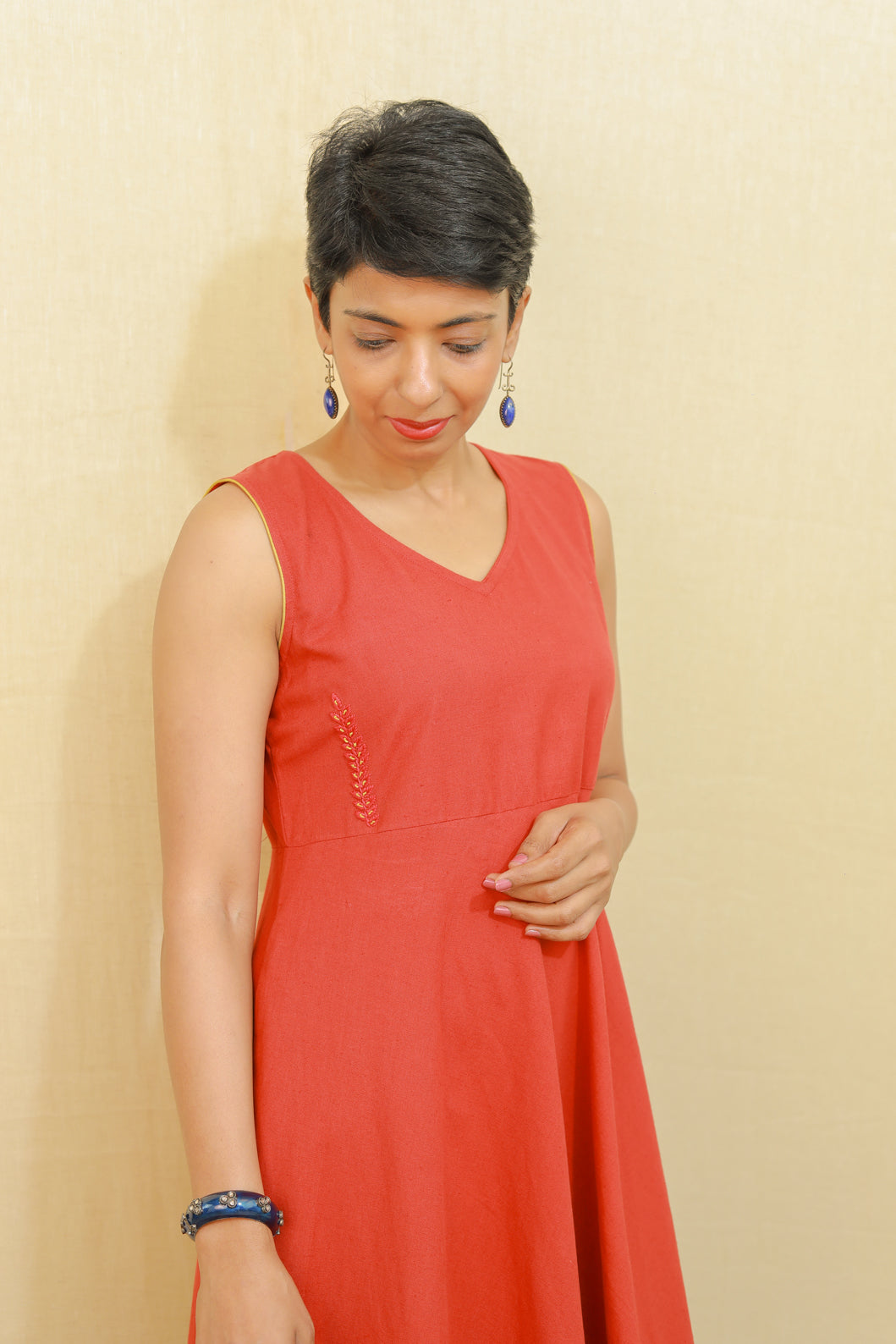 Handwoven cotton Hand embroidered detailing Comfortable all day wear Slip into evenings with a stylish accessory Gentle handwash please