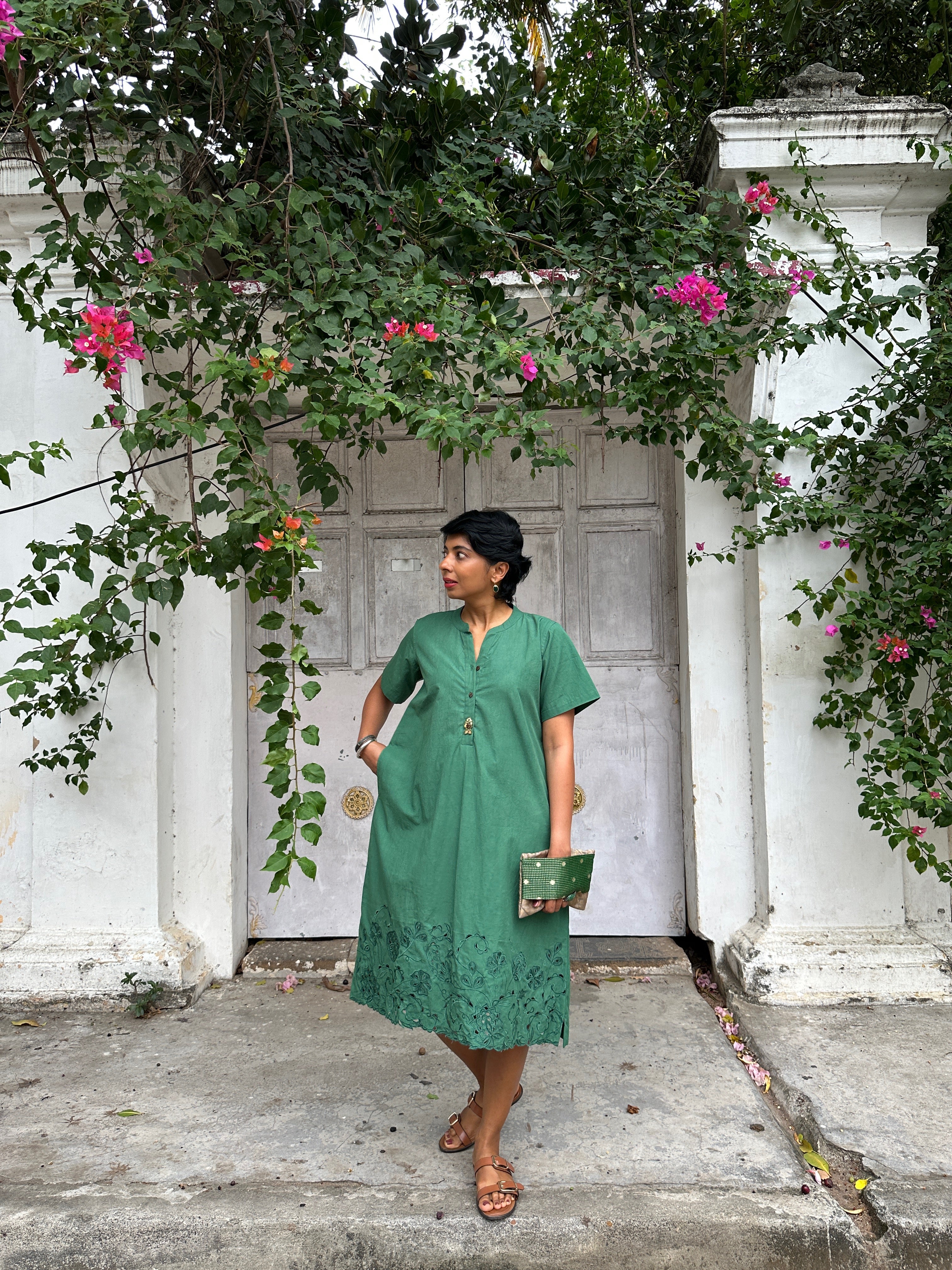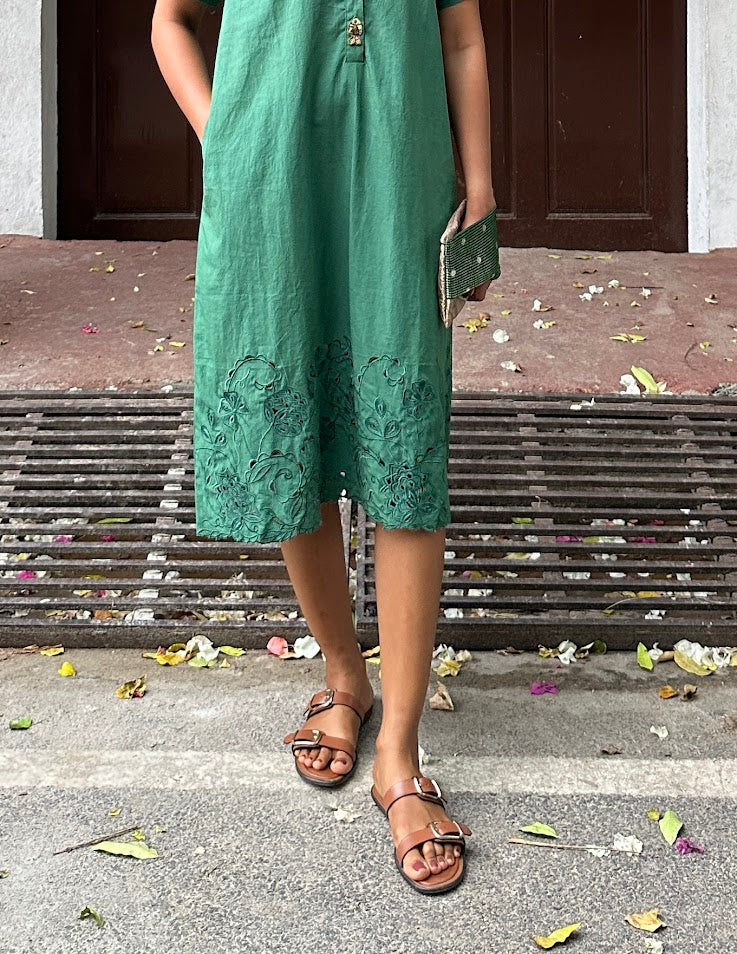 - Highlighted with Self -colour floral cutwork on the bottom hem.