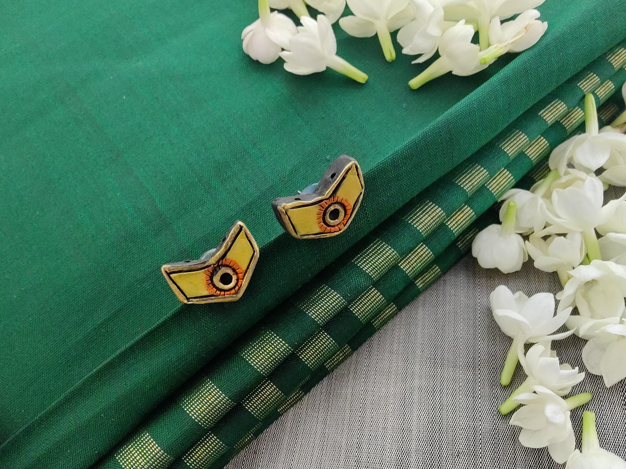 Yellow, orange and gold handmade terracotta earrings. This handmade earring is carefully crafted with terracotta and painted with safe natural dyes.