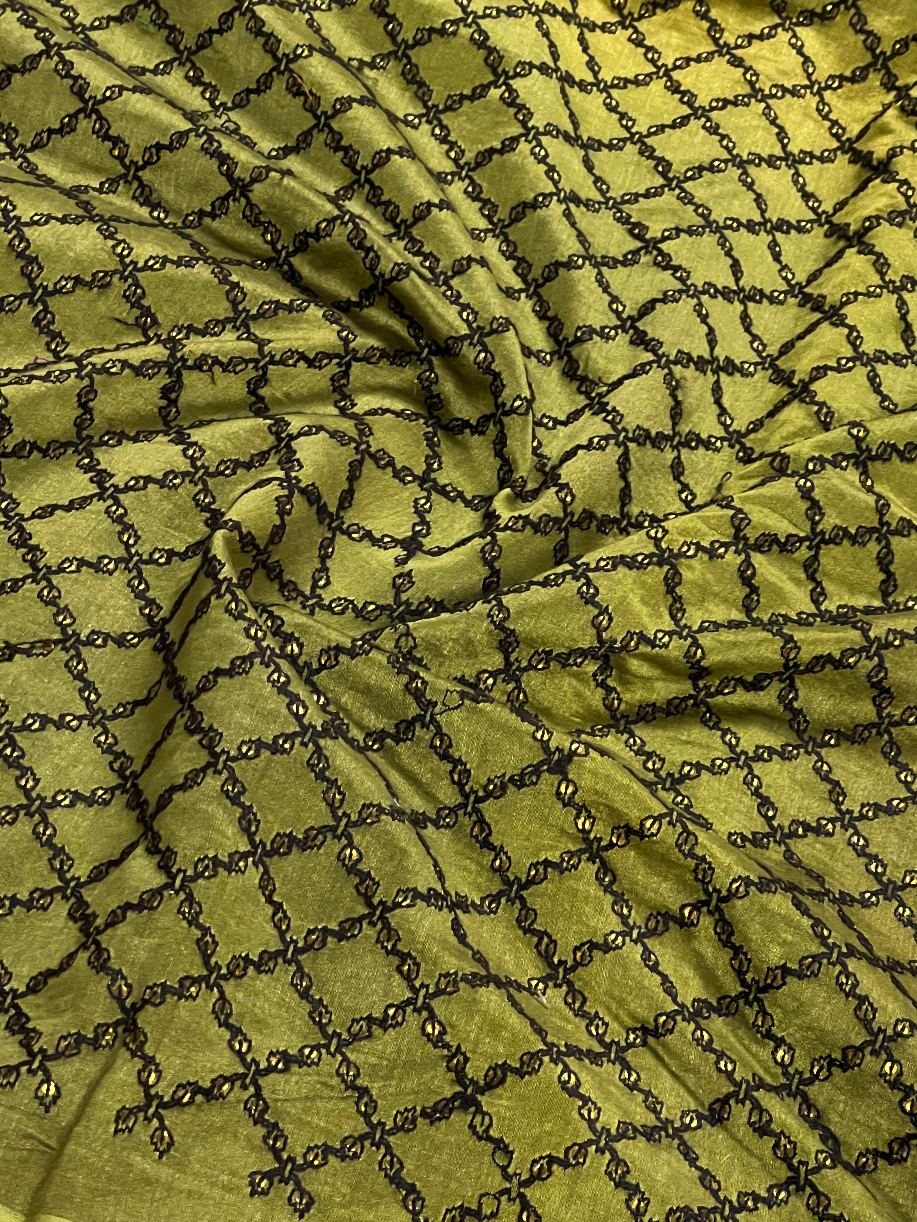 Green embroidered chandheri fabric