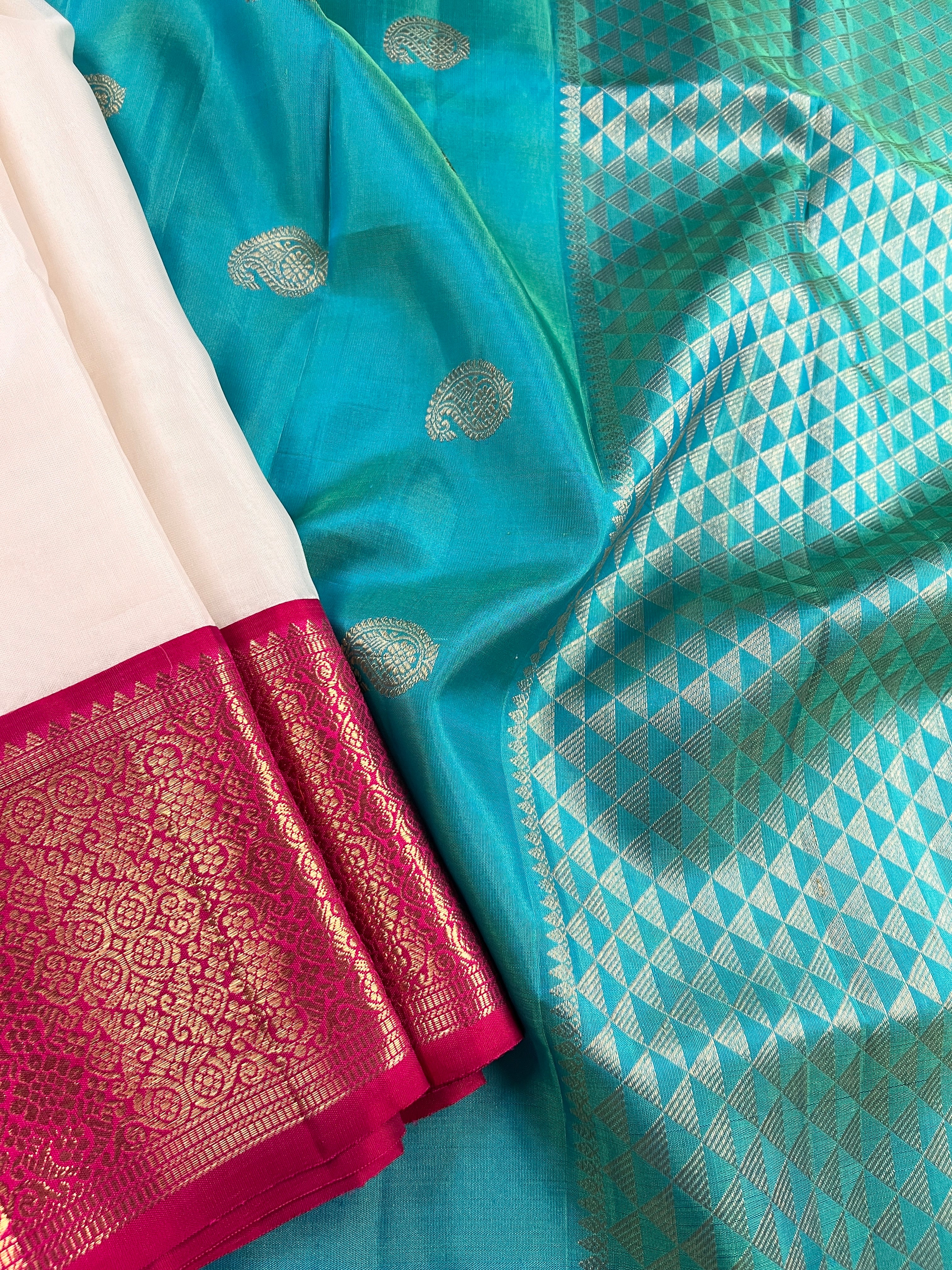 • Fusion of handwoven pure zari kanchipuram silk with organza