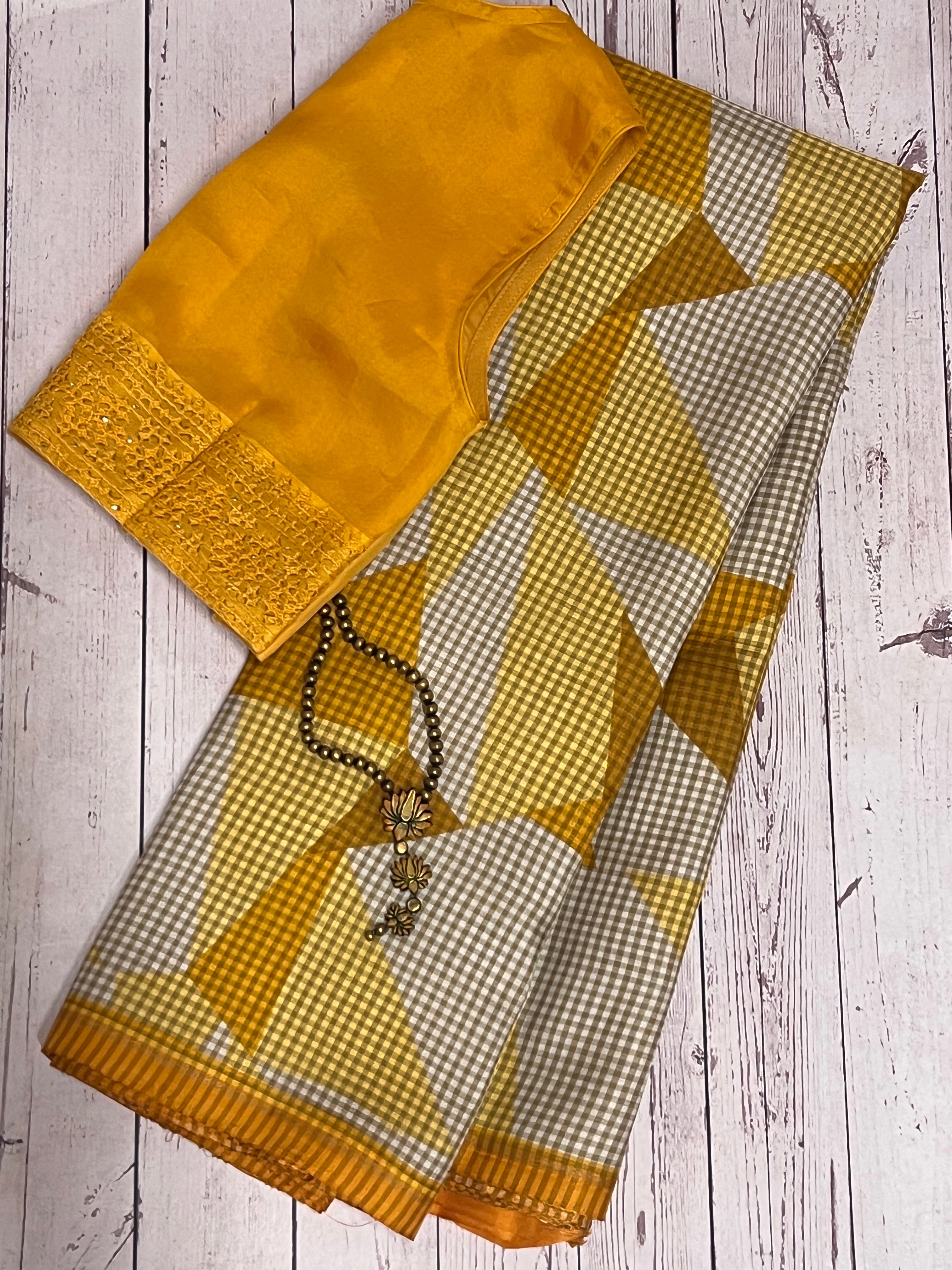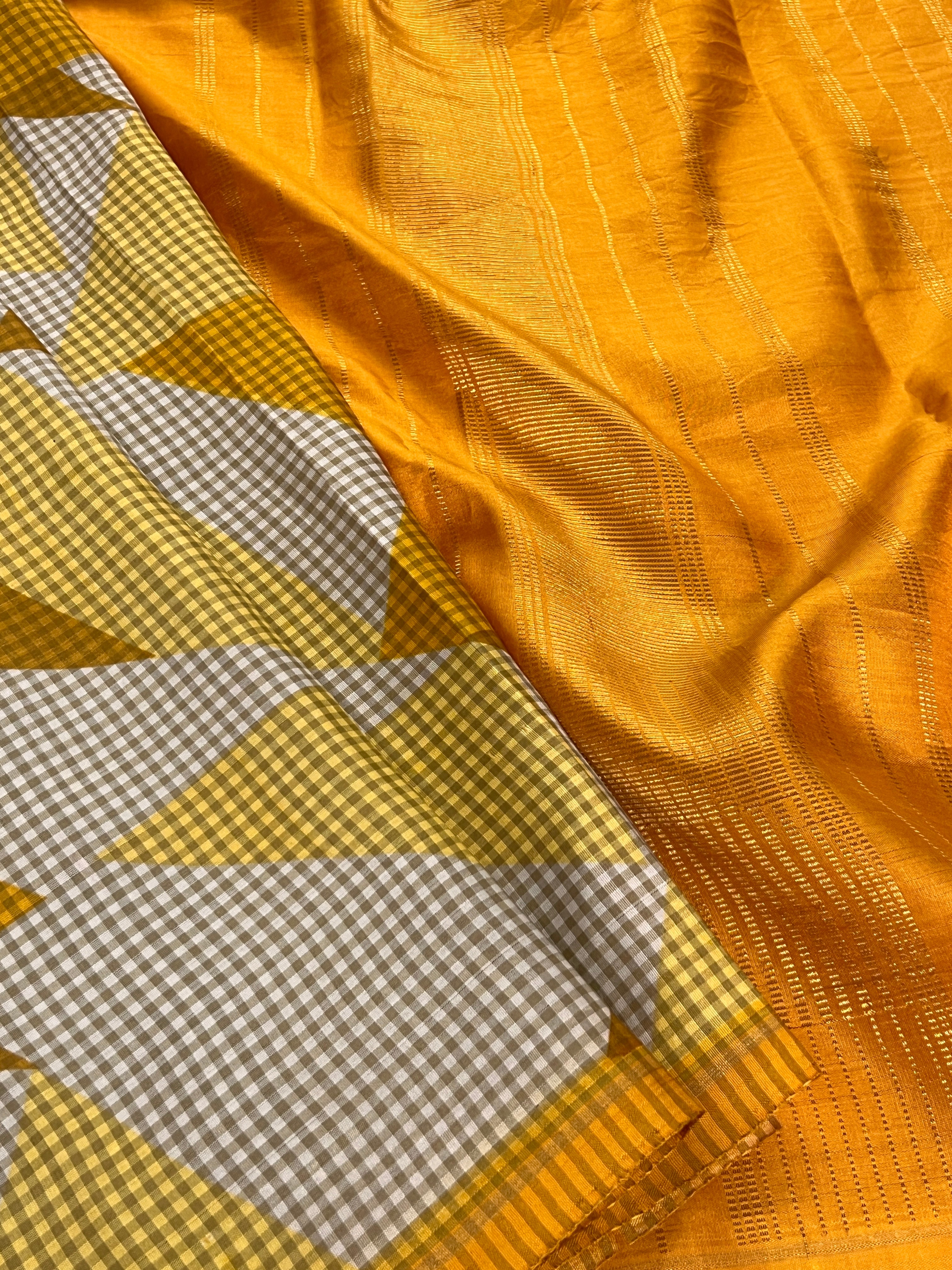 Mila checked triangles kanchipuram silk saree
