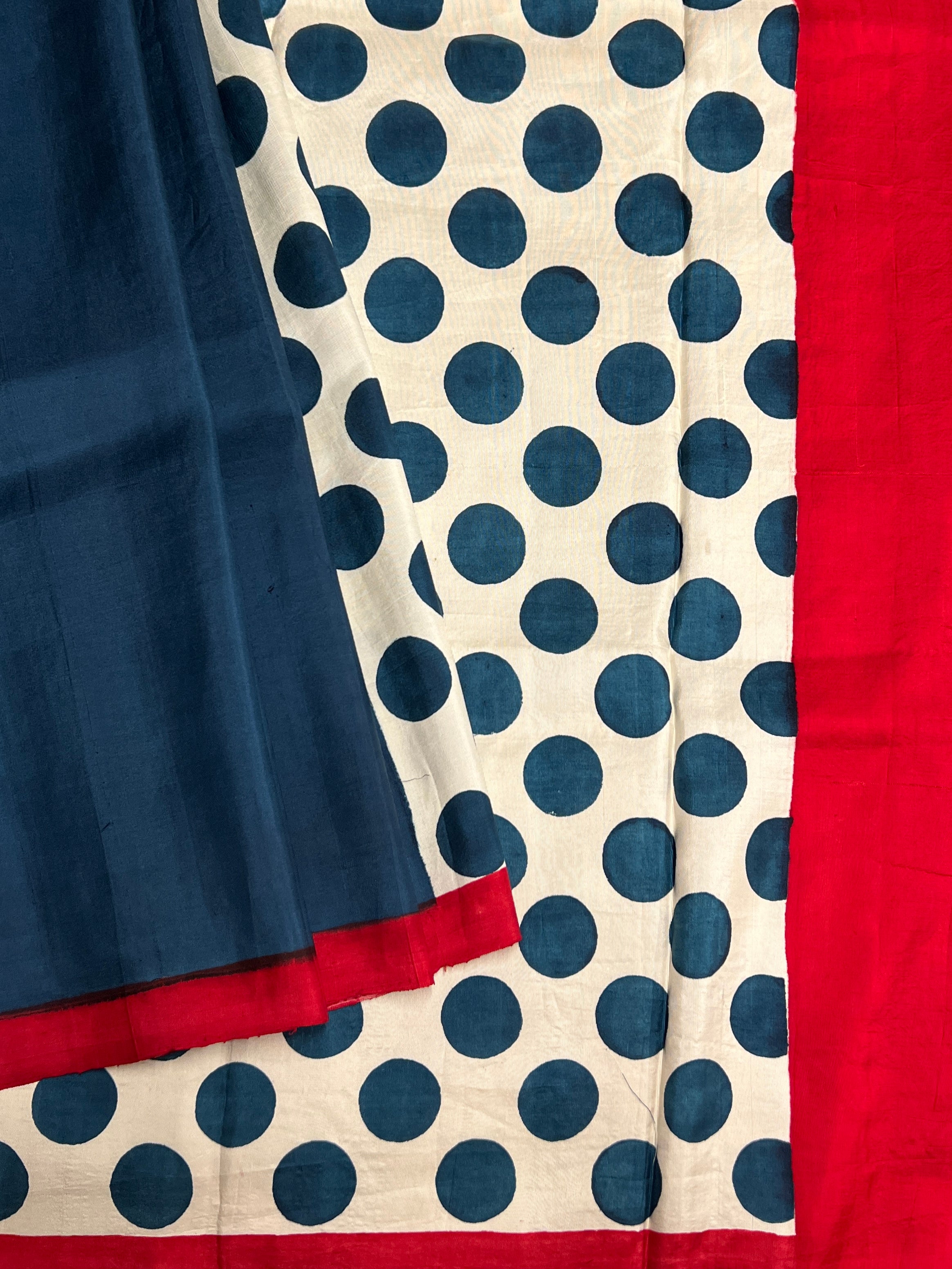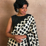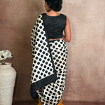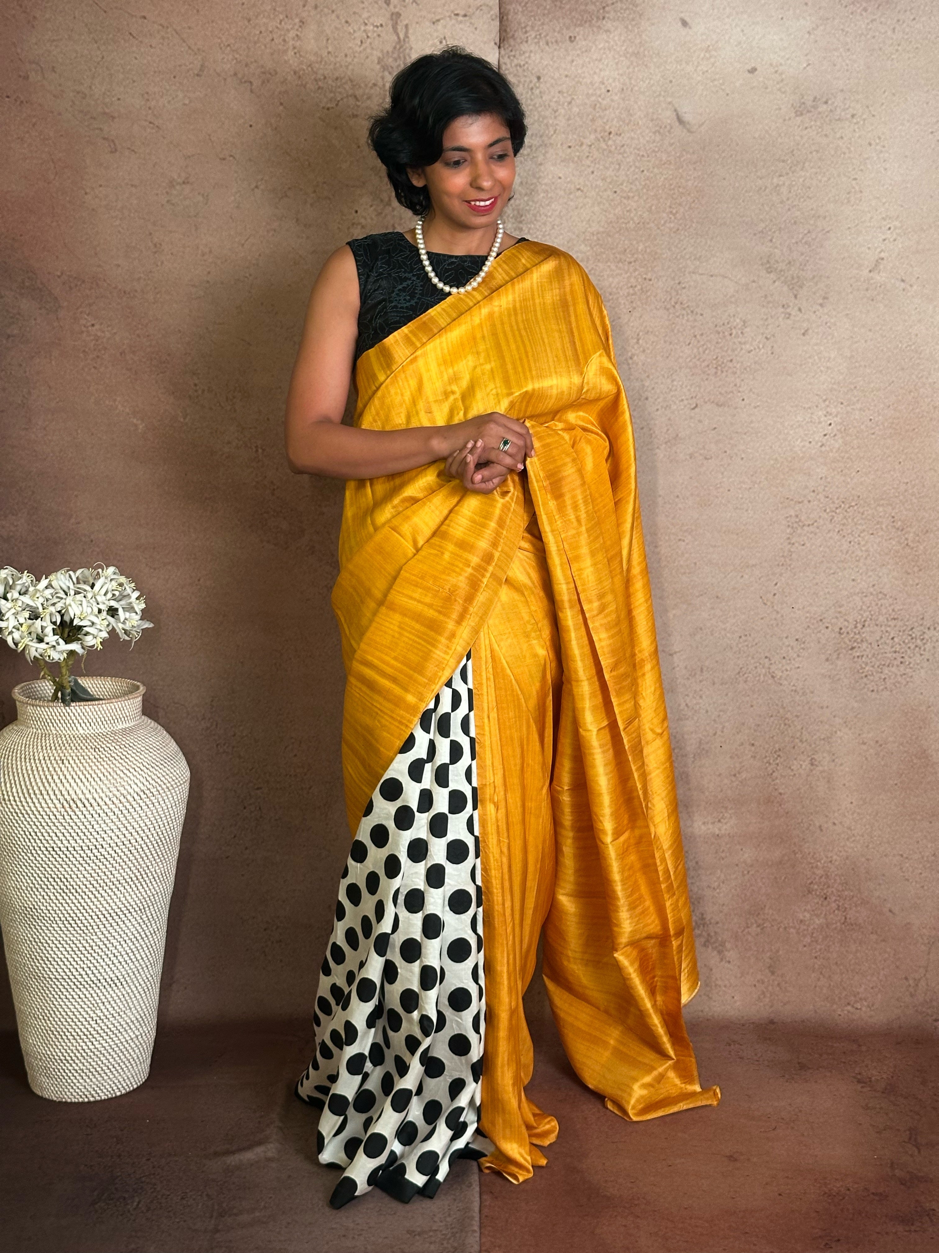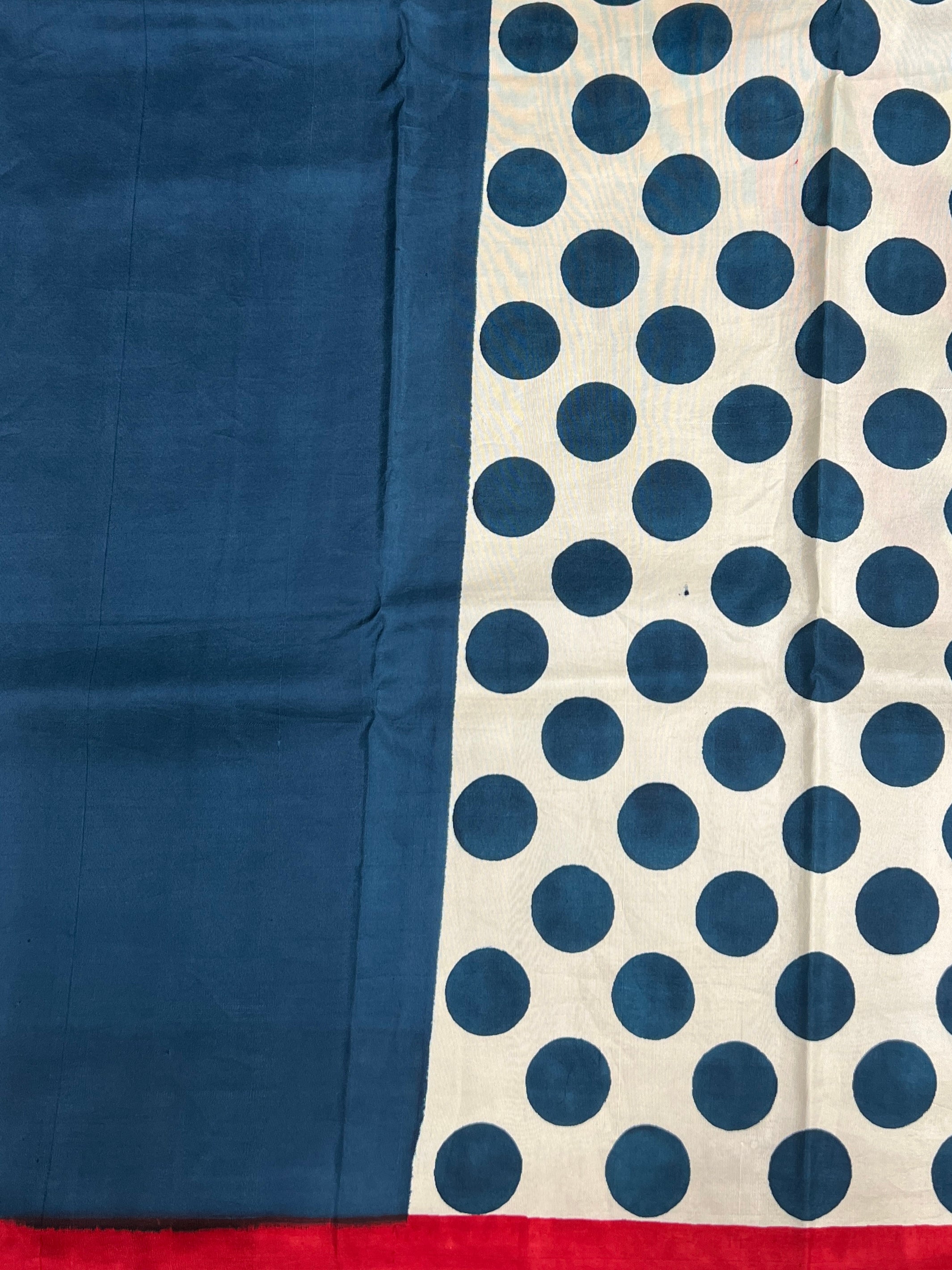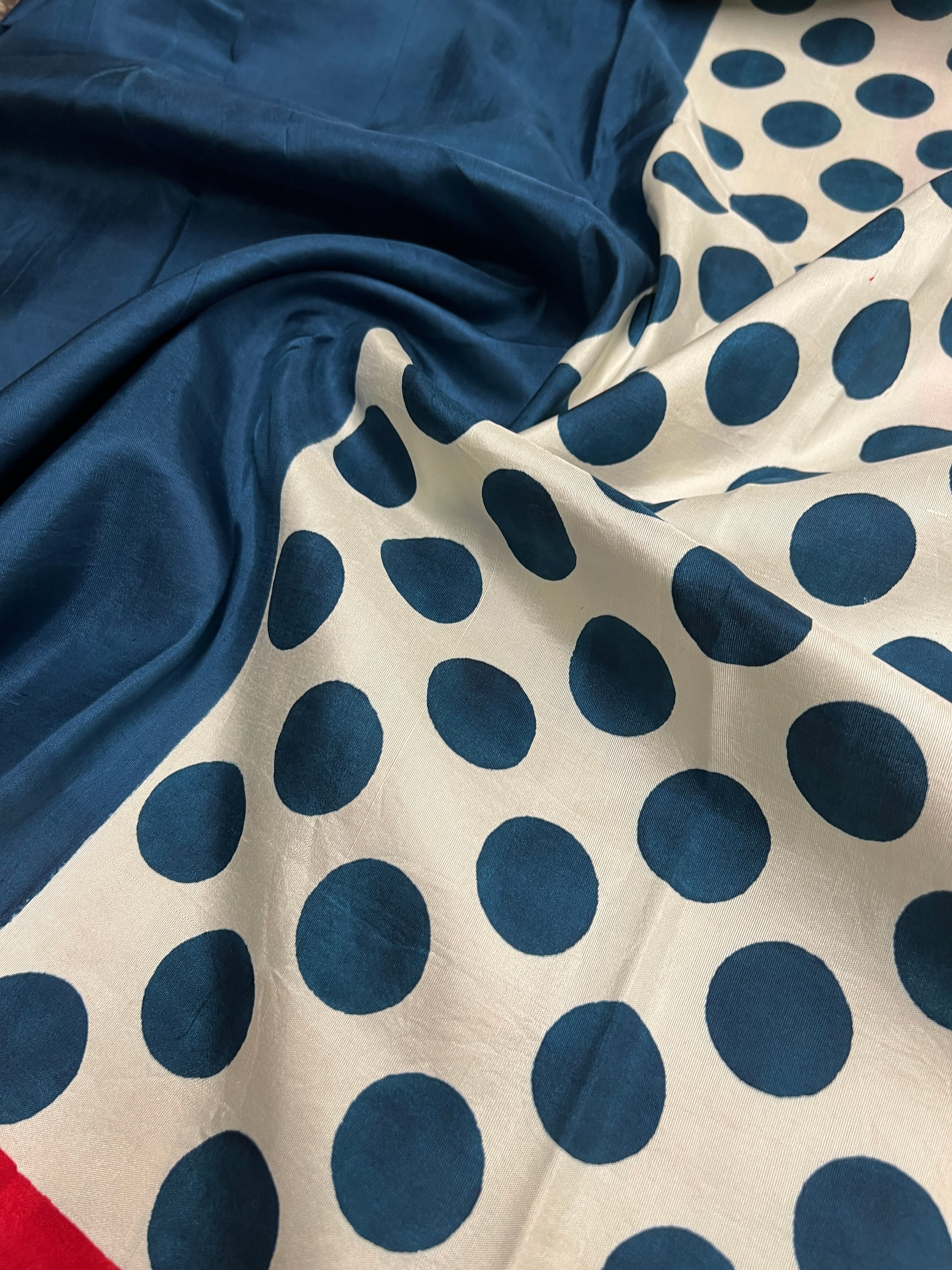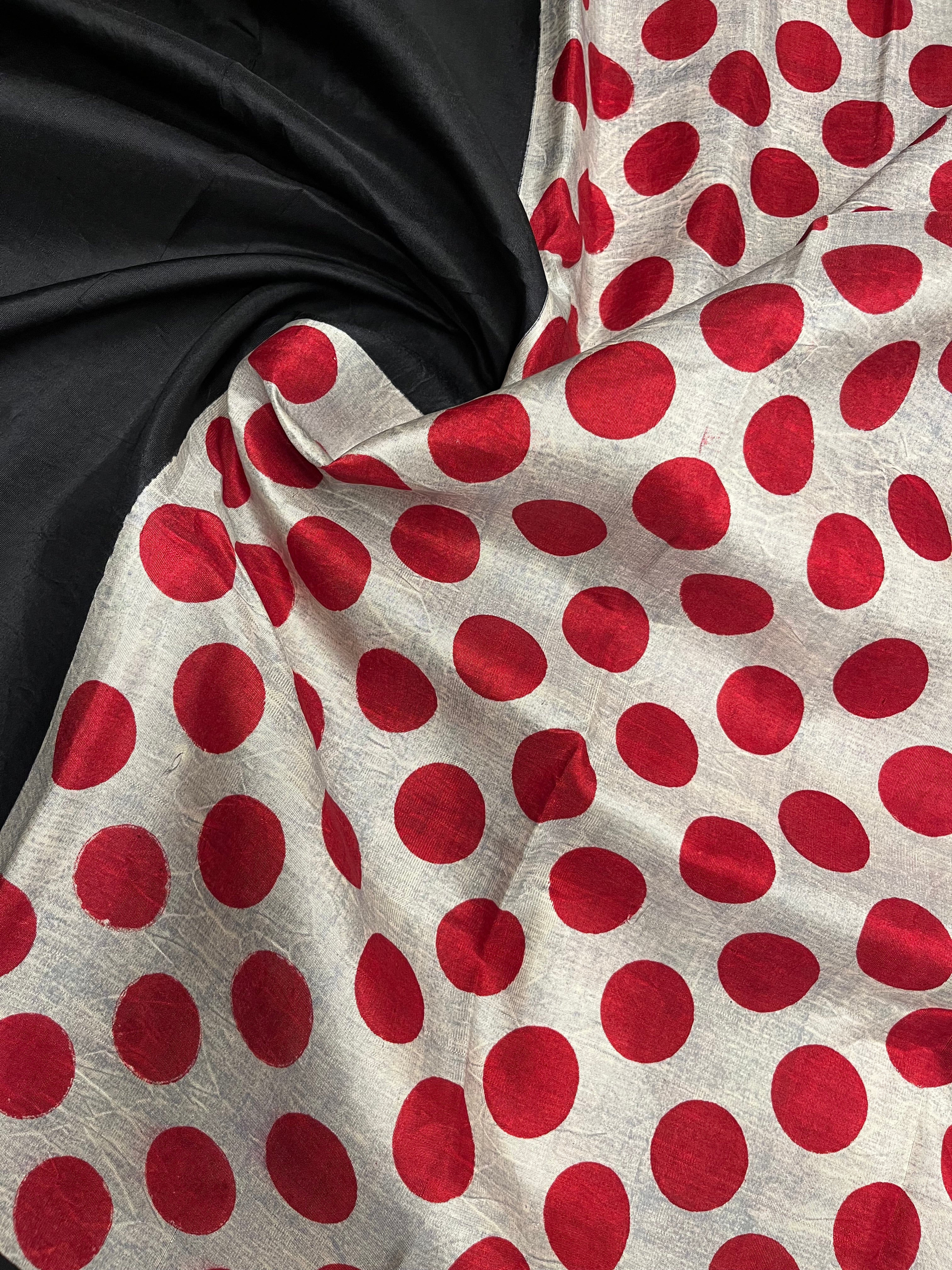 - Half the saree is plain solid colour ,while the other half is polka dots