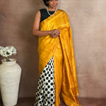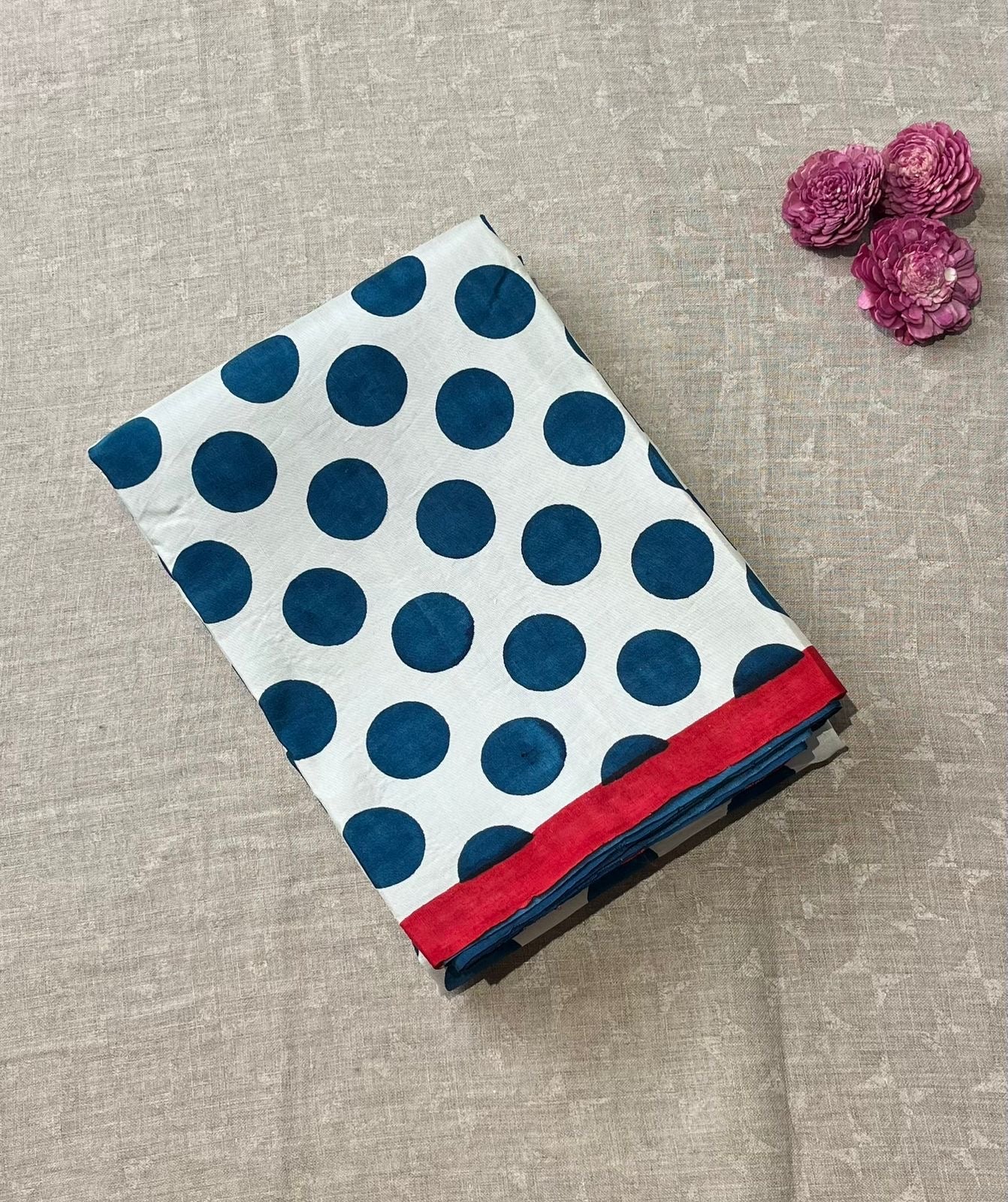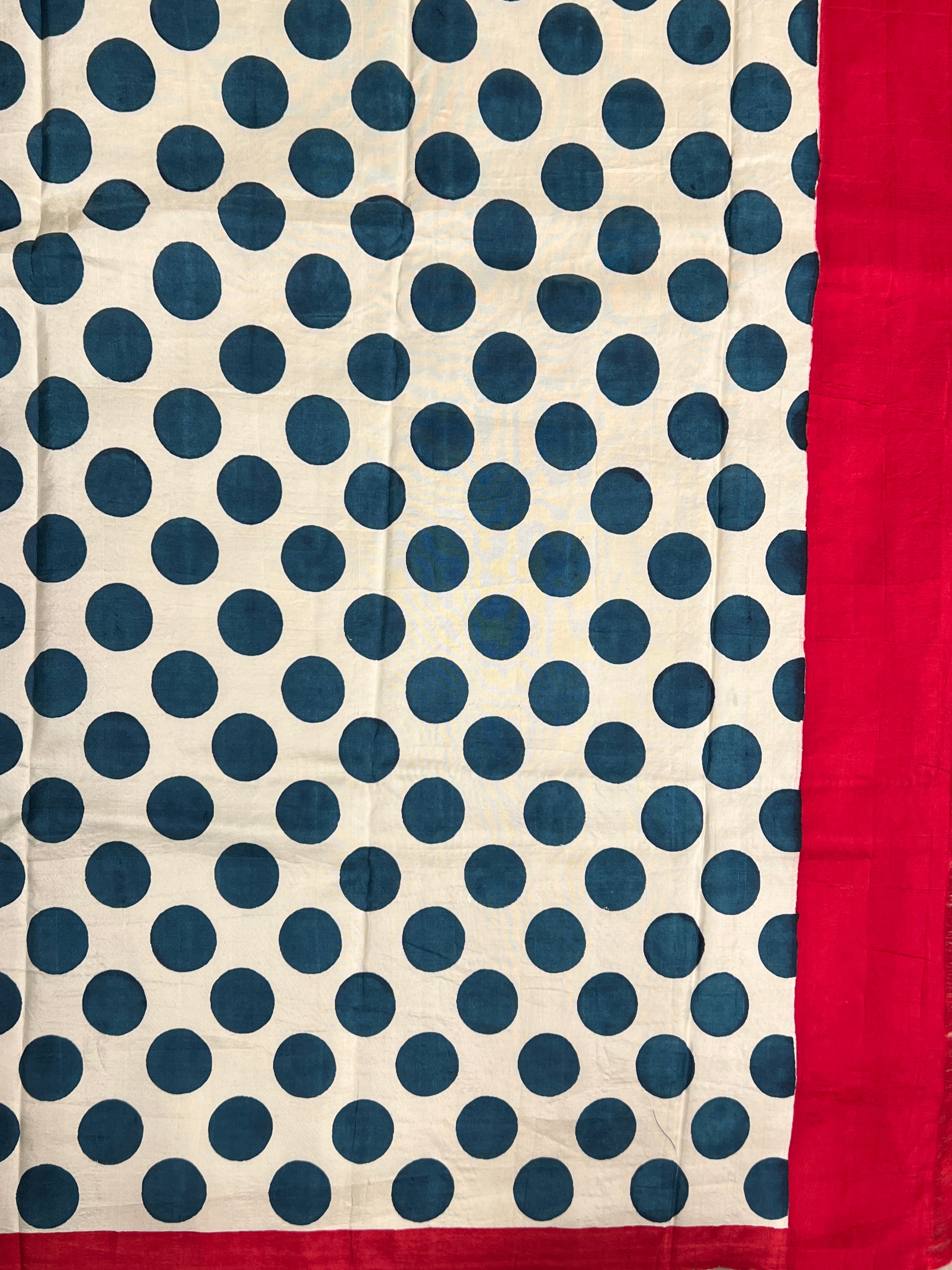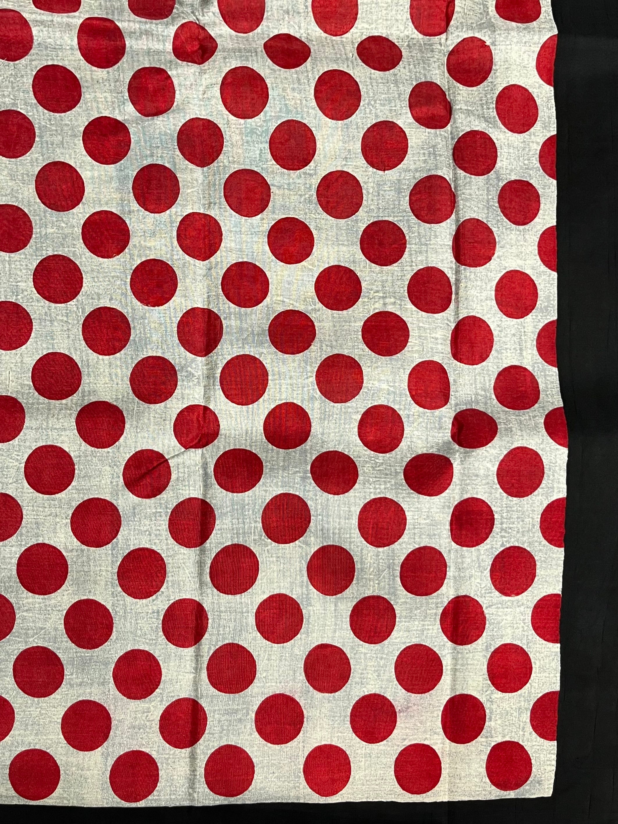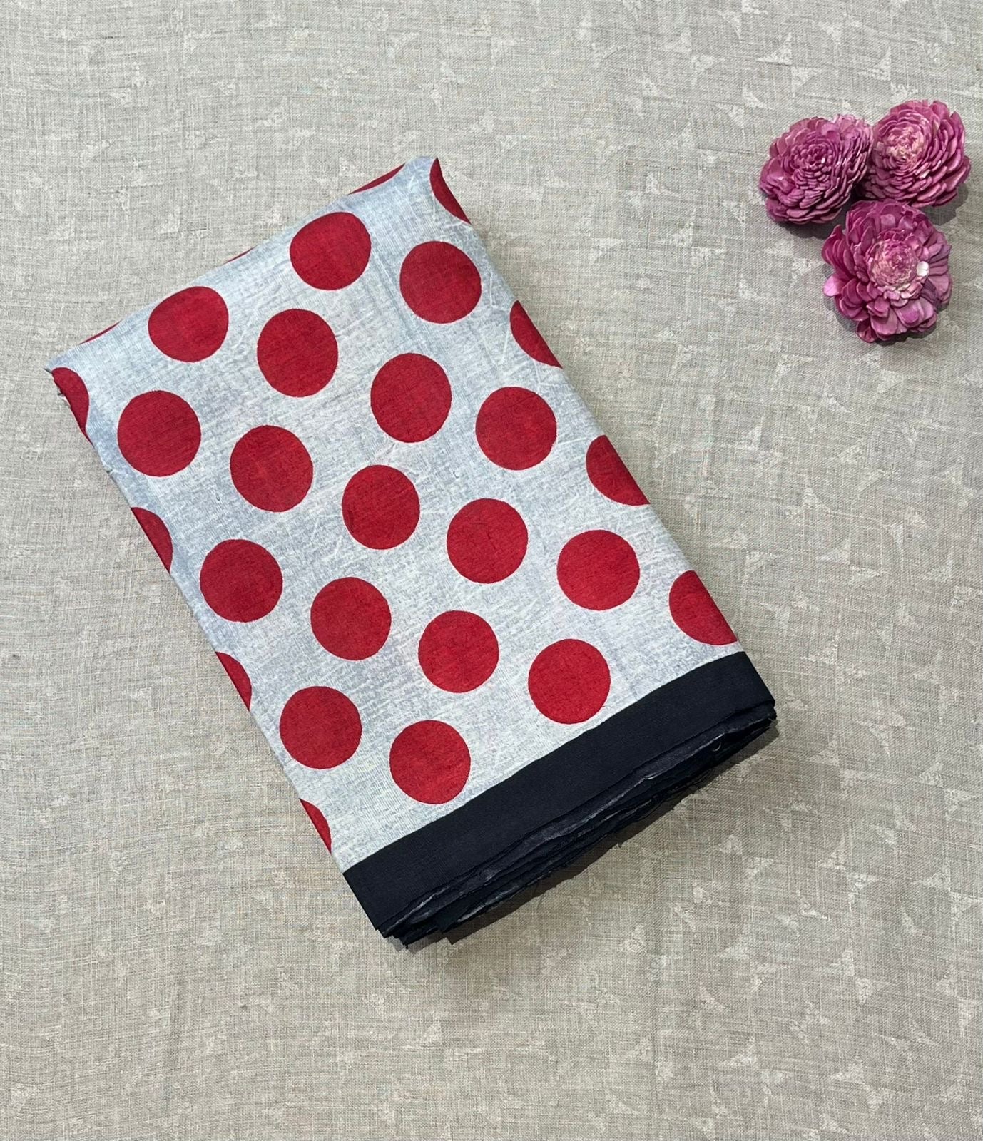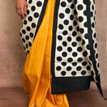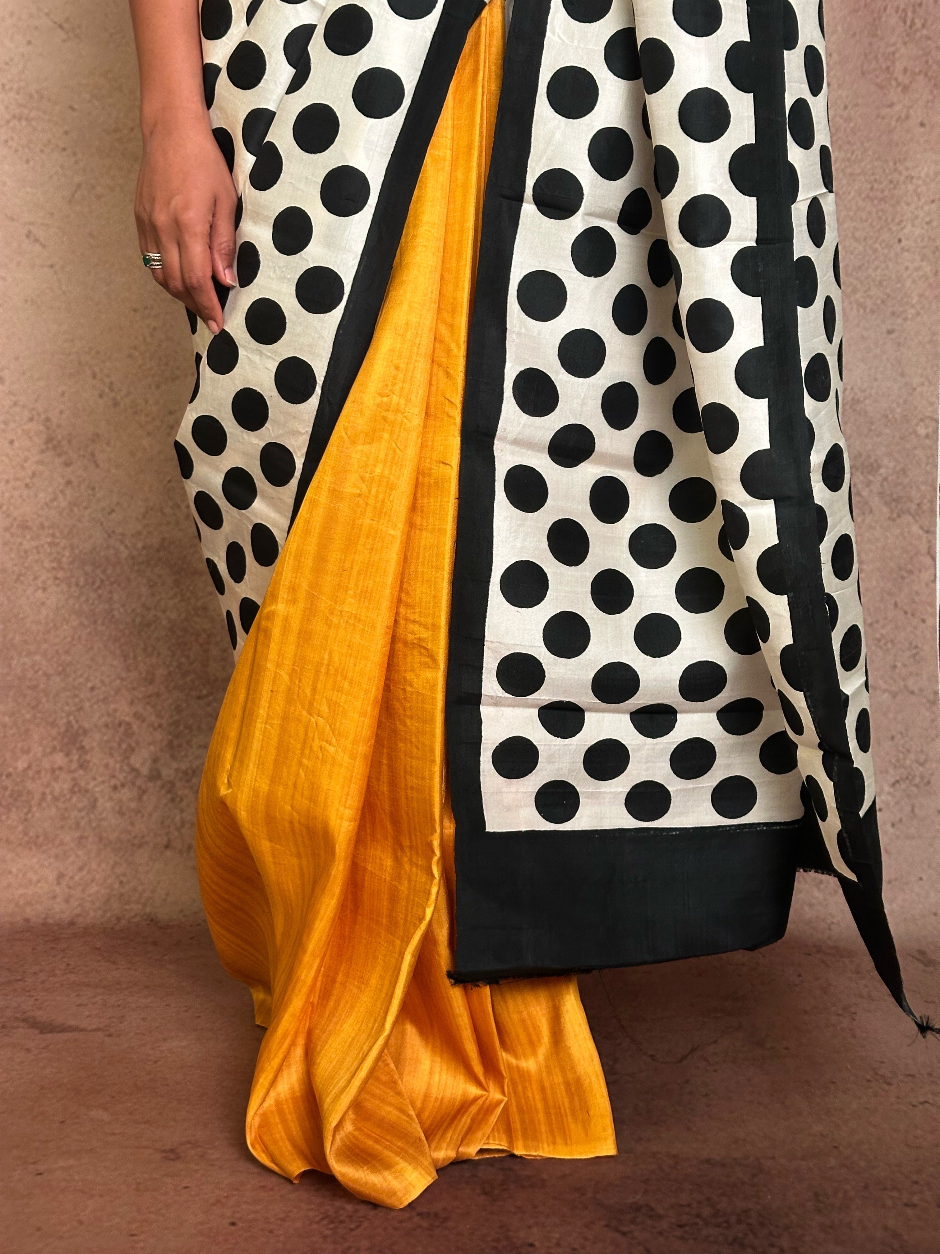 - Half the saree is plain solid colour ,while the other half is polka dots