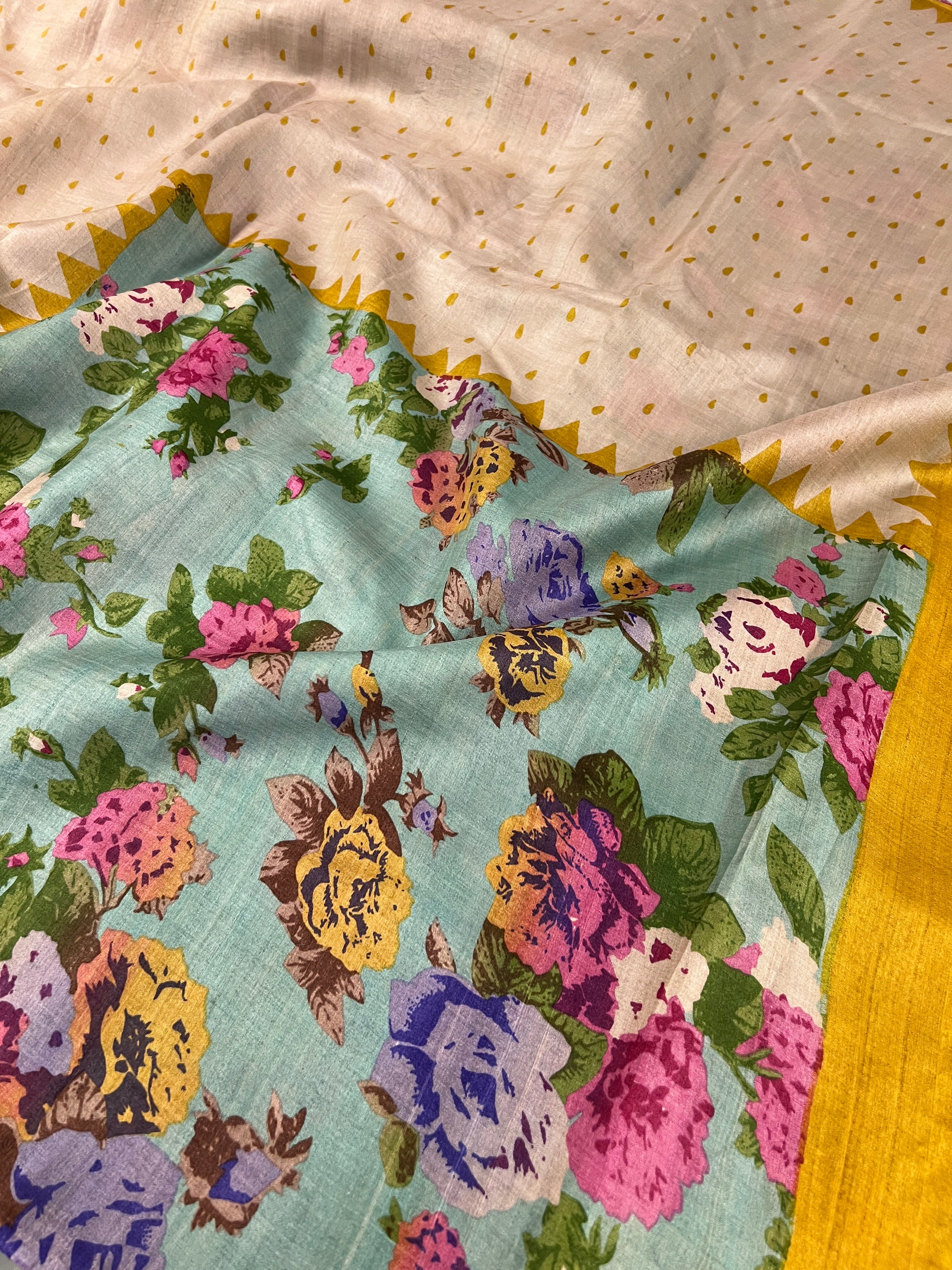 Multicoloured polka dots chanderi saree