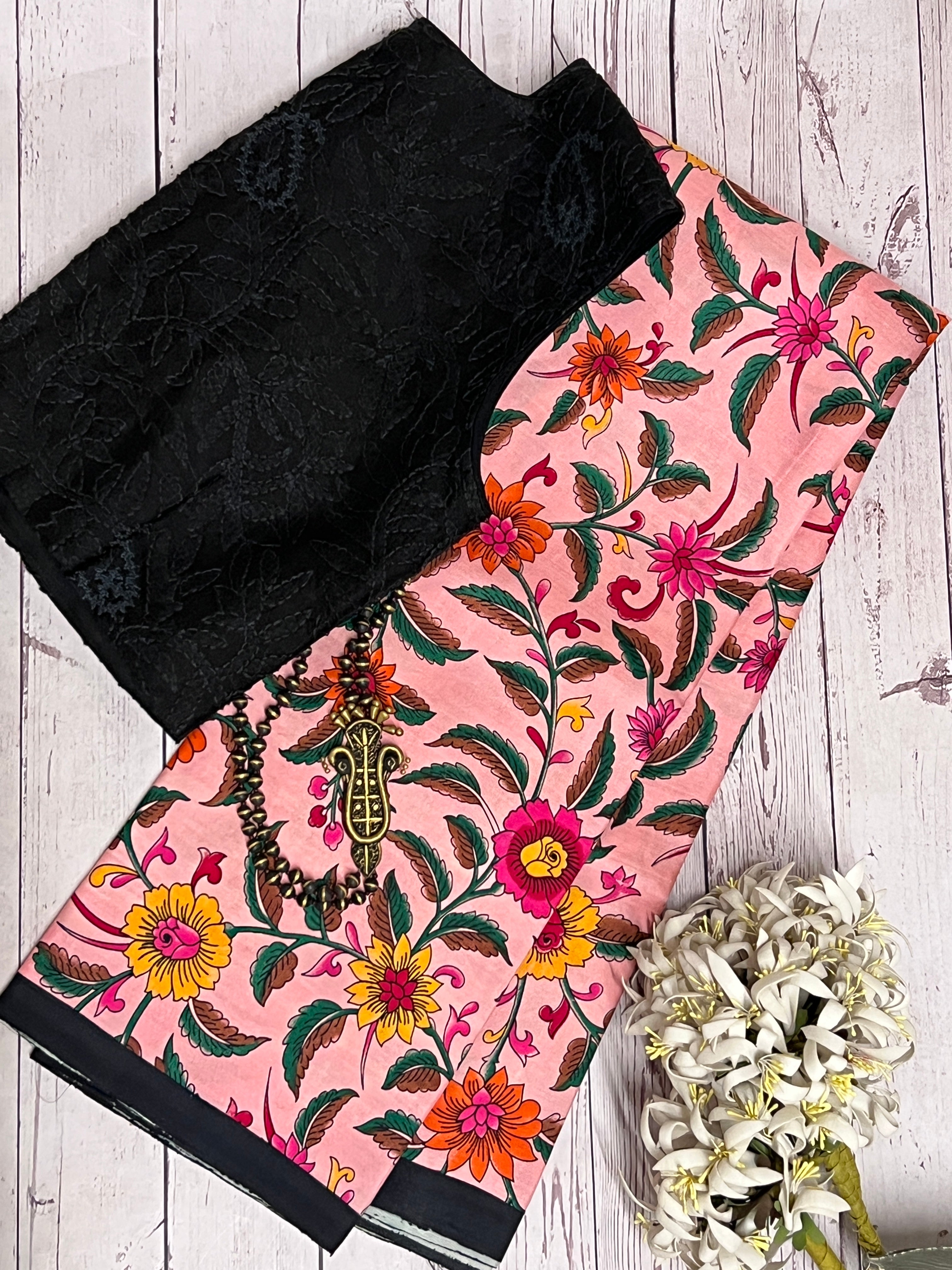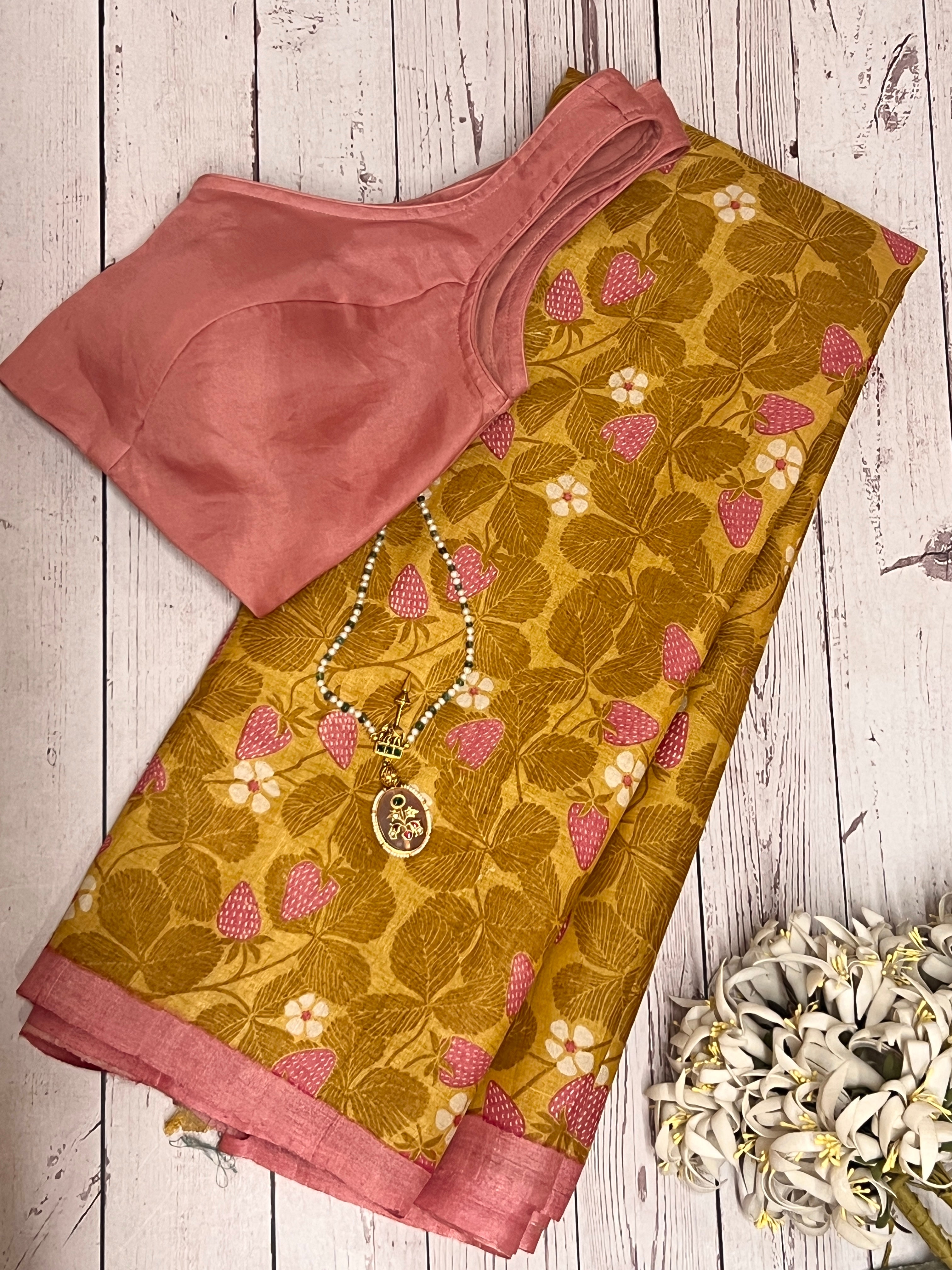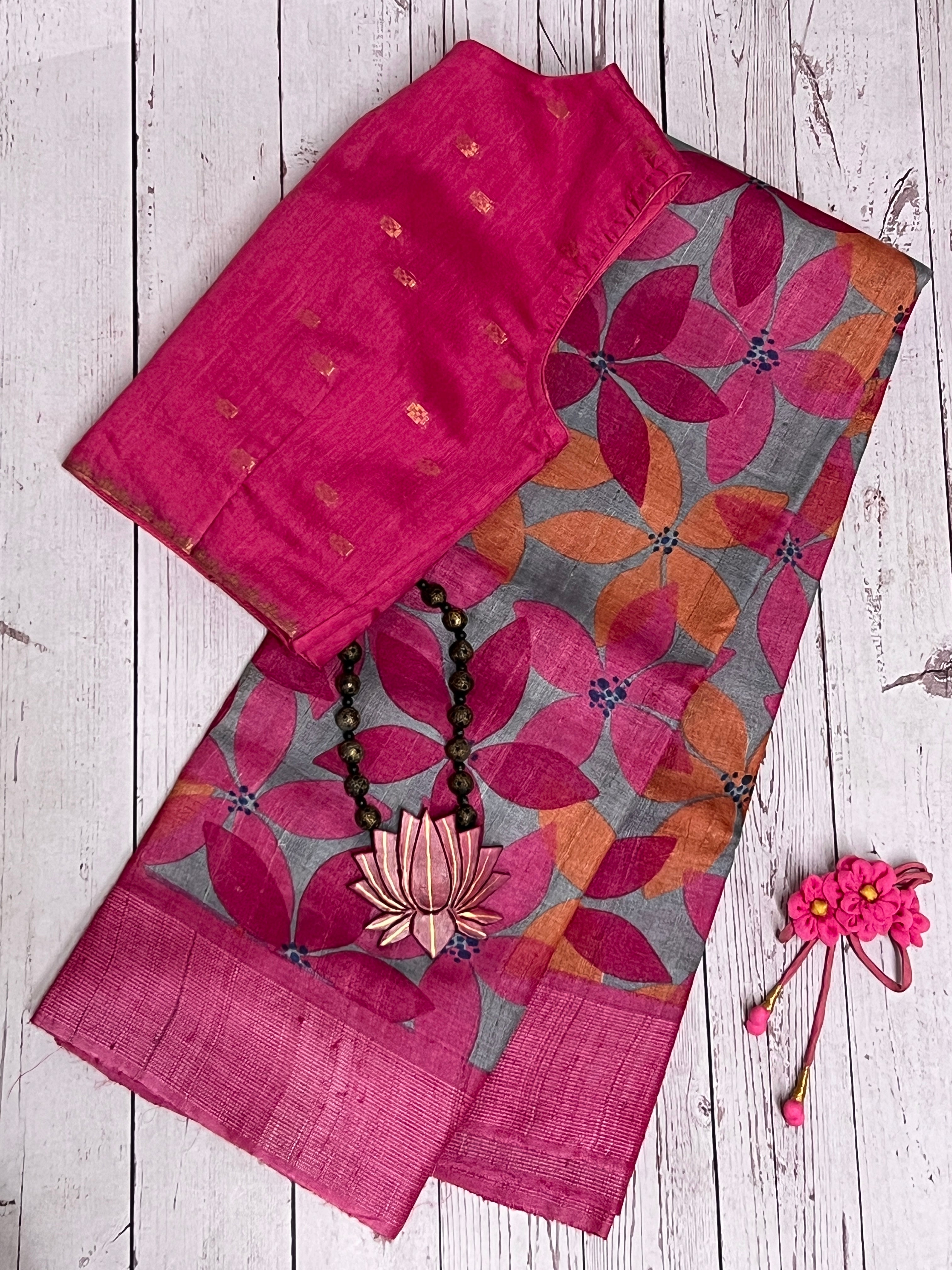 Veena floral block style tussar saree