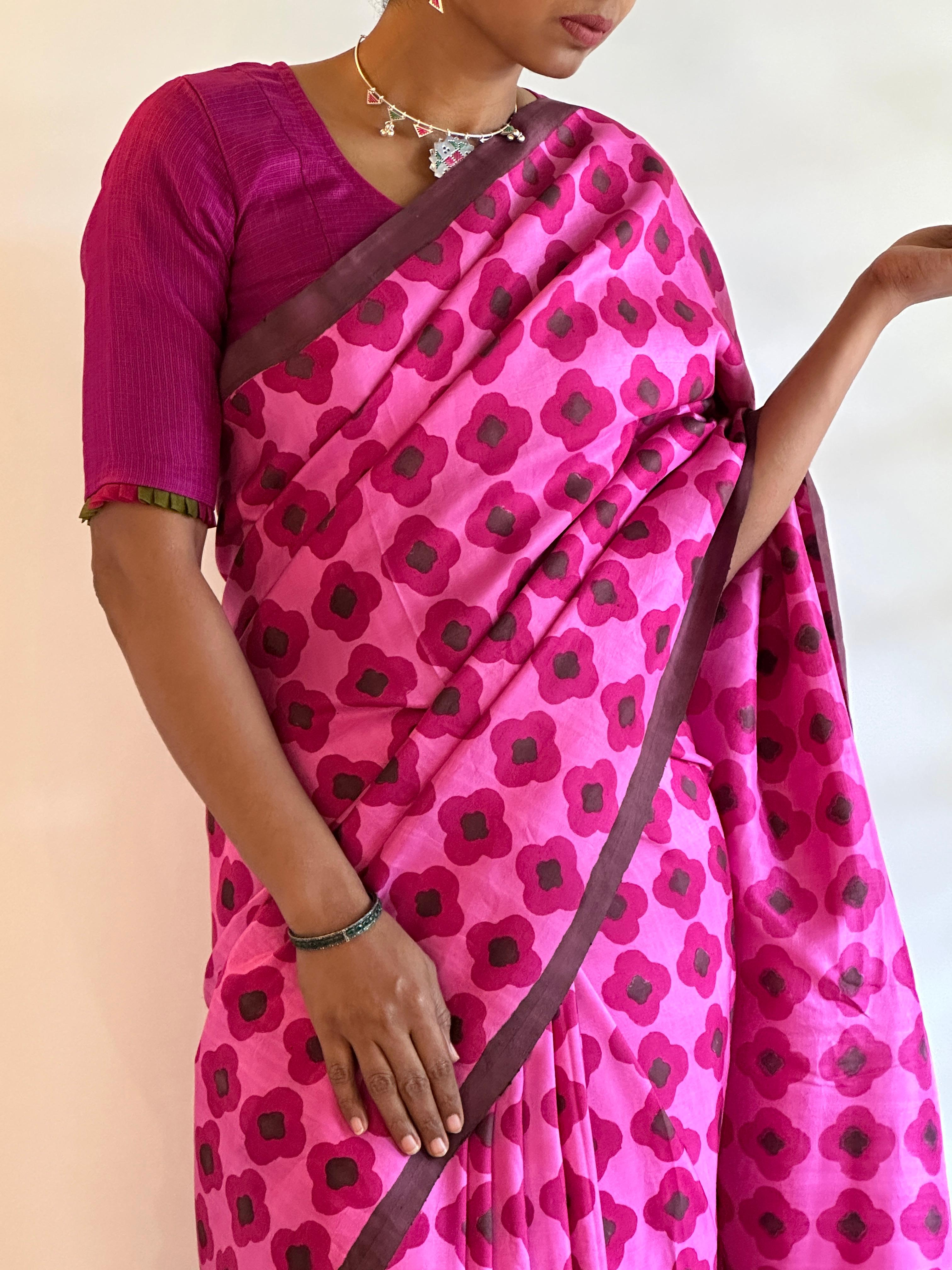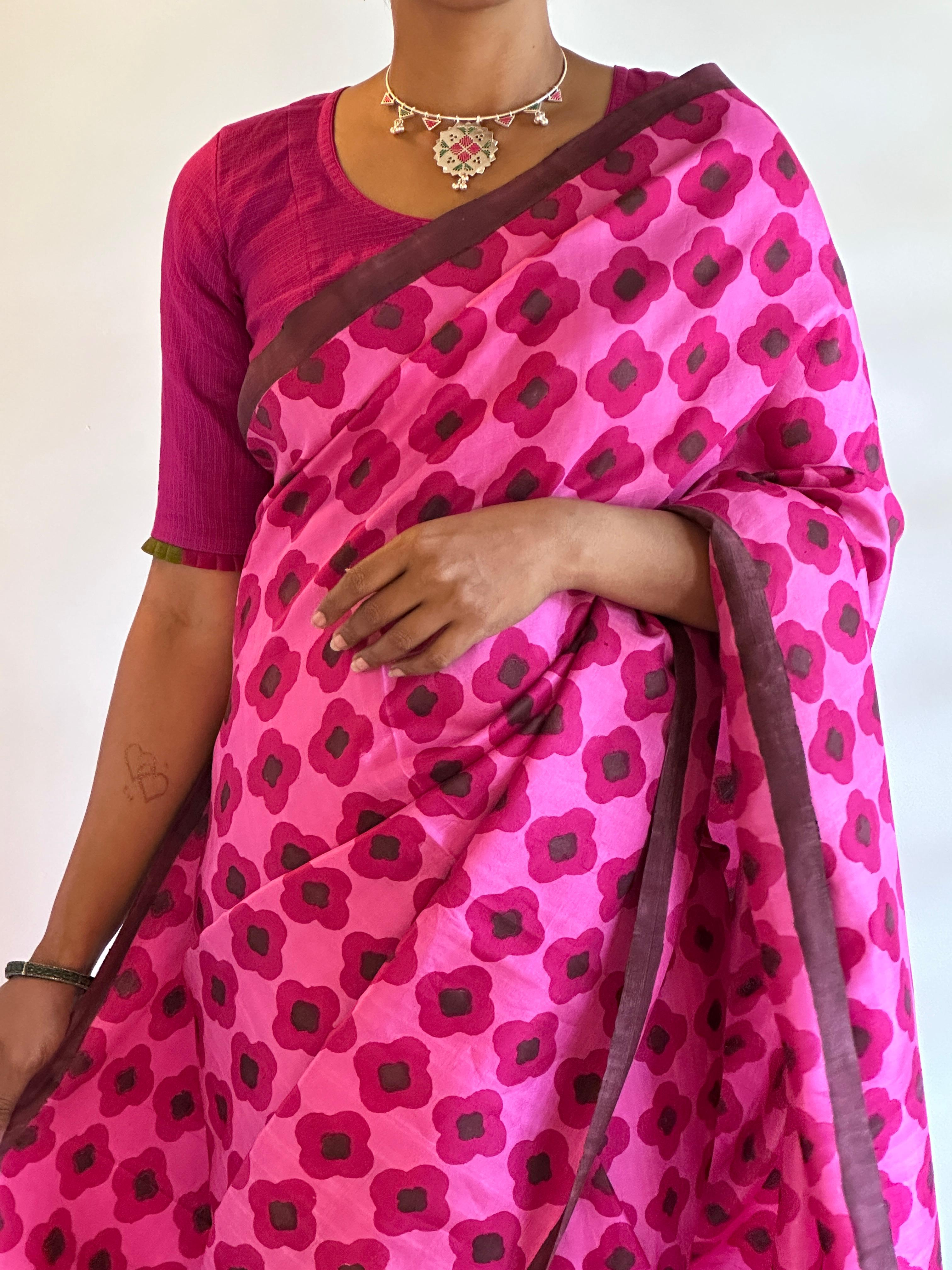 Pink polka dotted chanderi saree