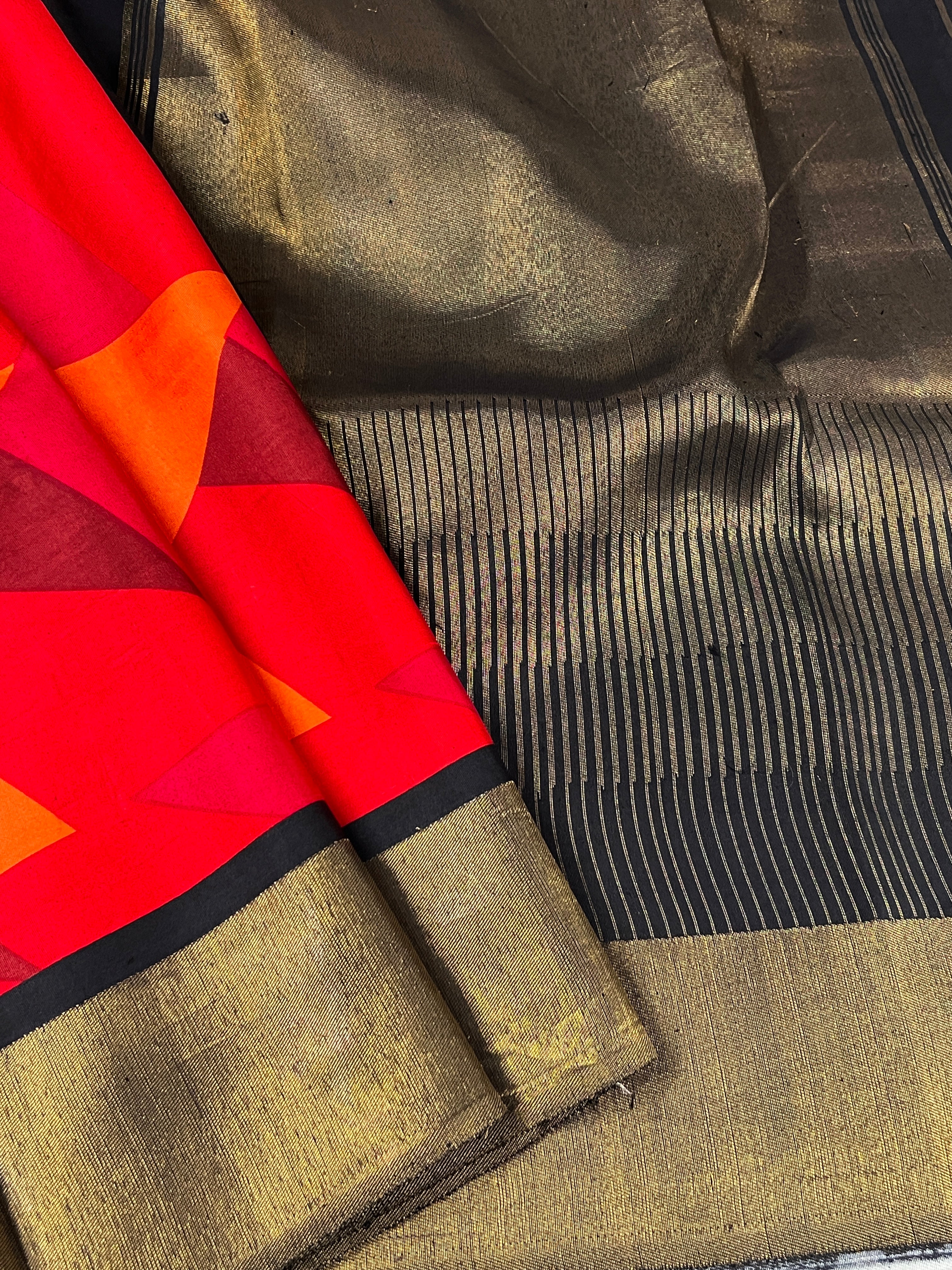 Mila triangles kanchipuram silk saree with gold border