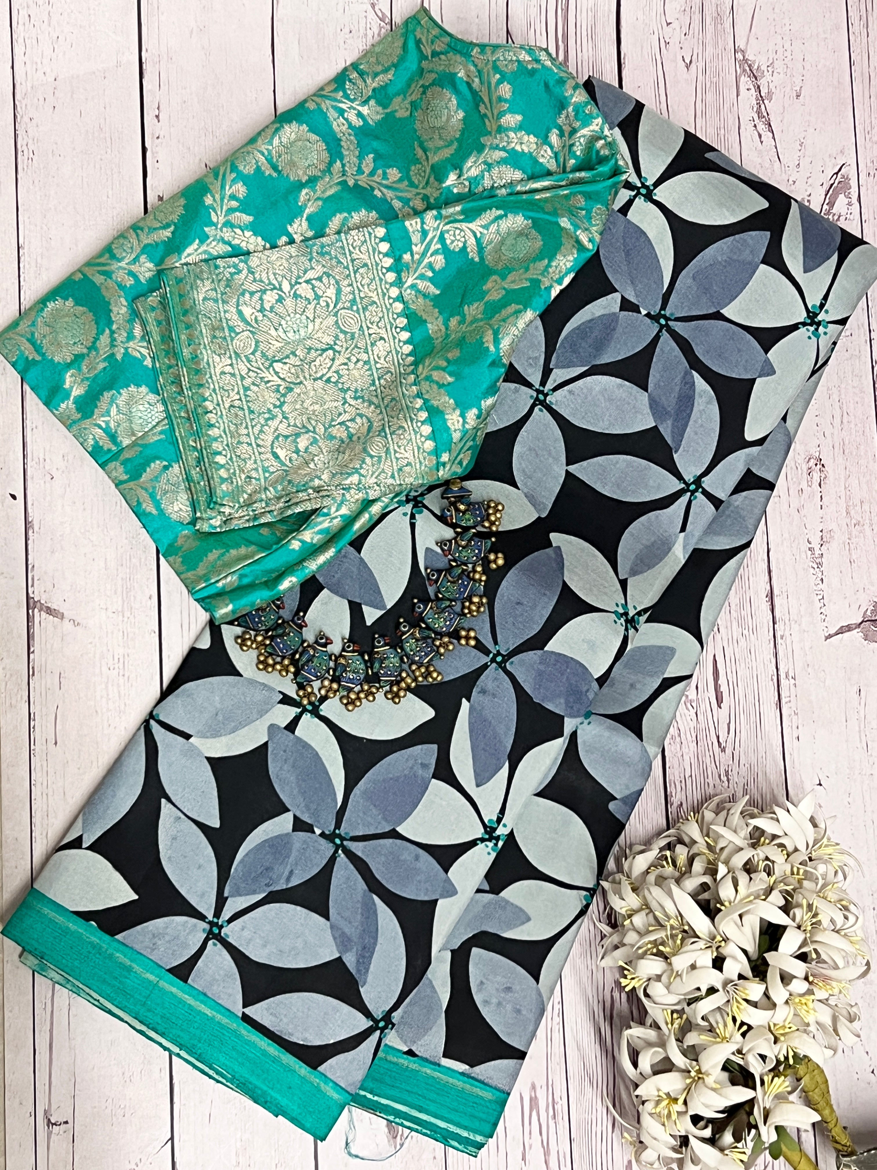 Handprinted Supernet Saree