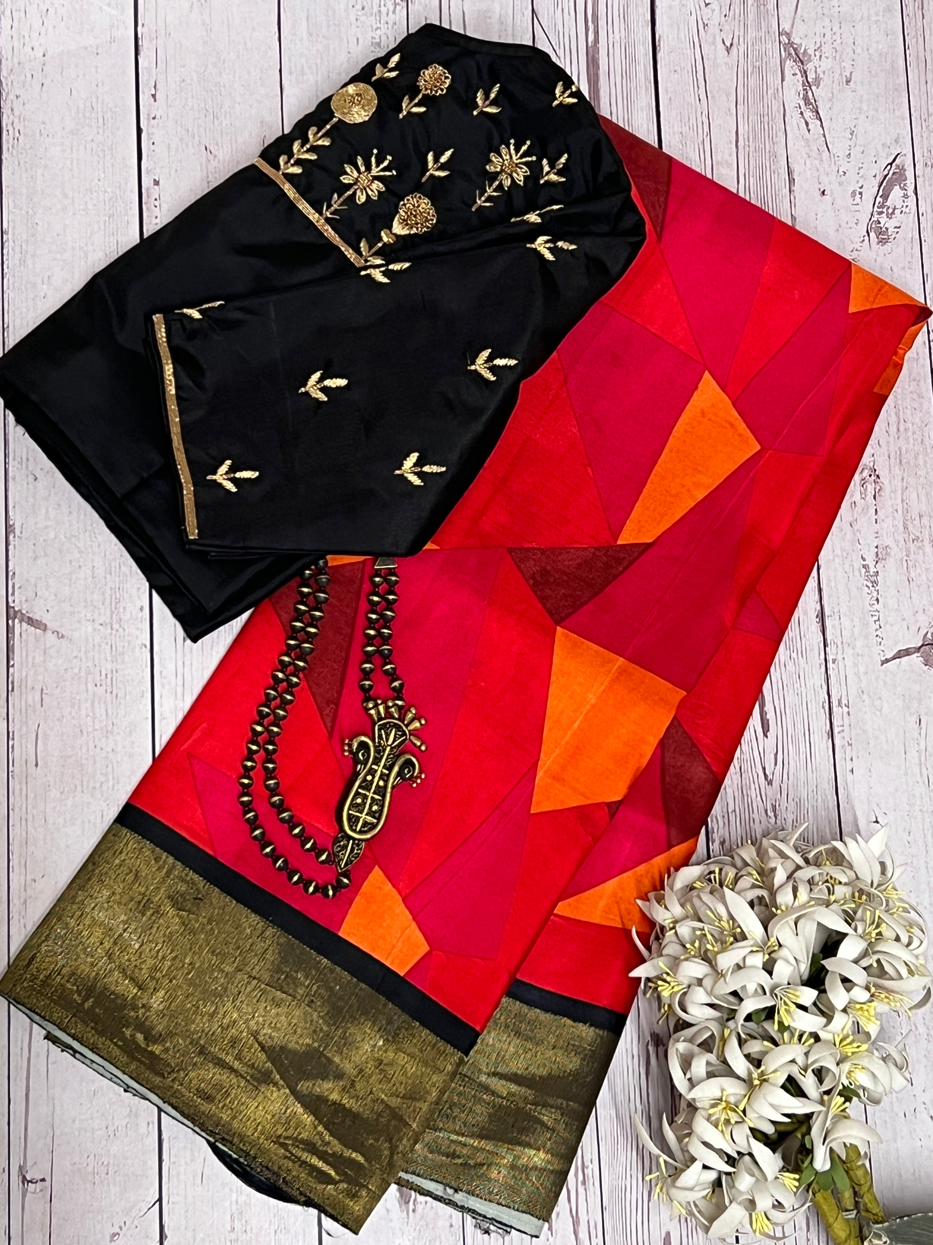 Mila mosaic printed kanchipuram silk saree