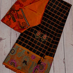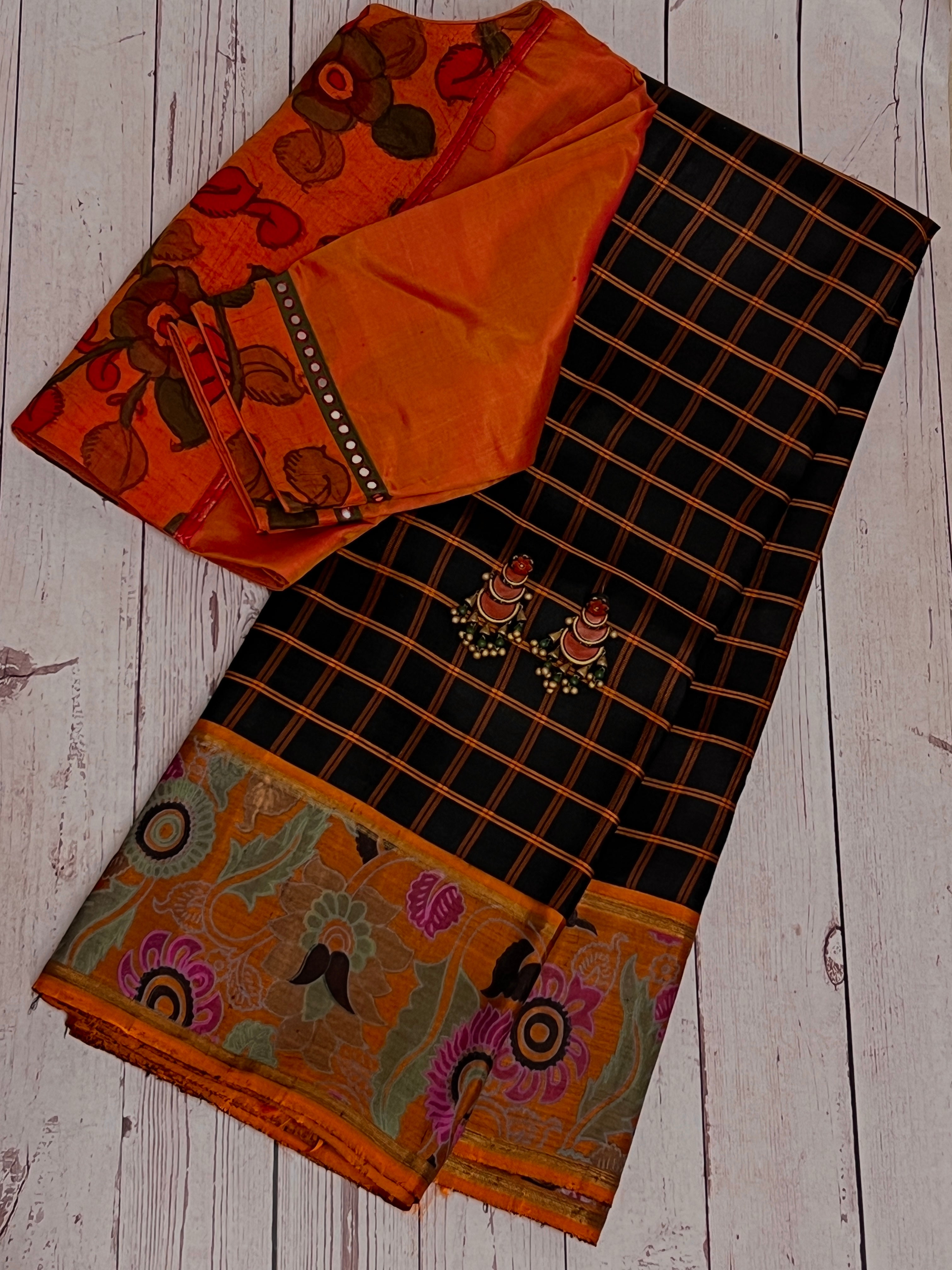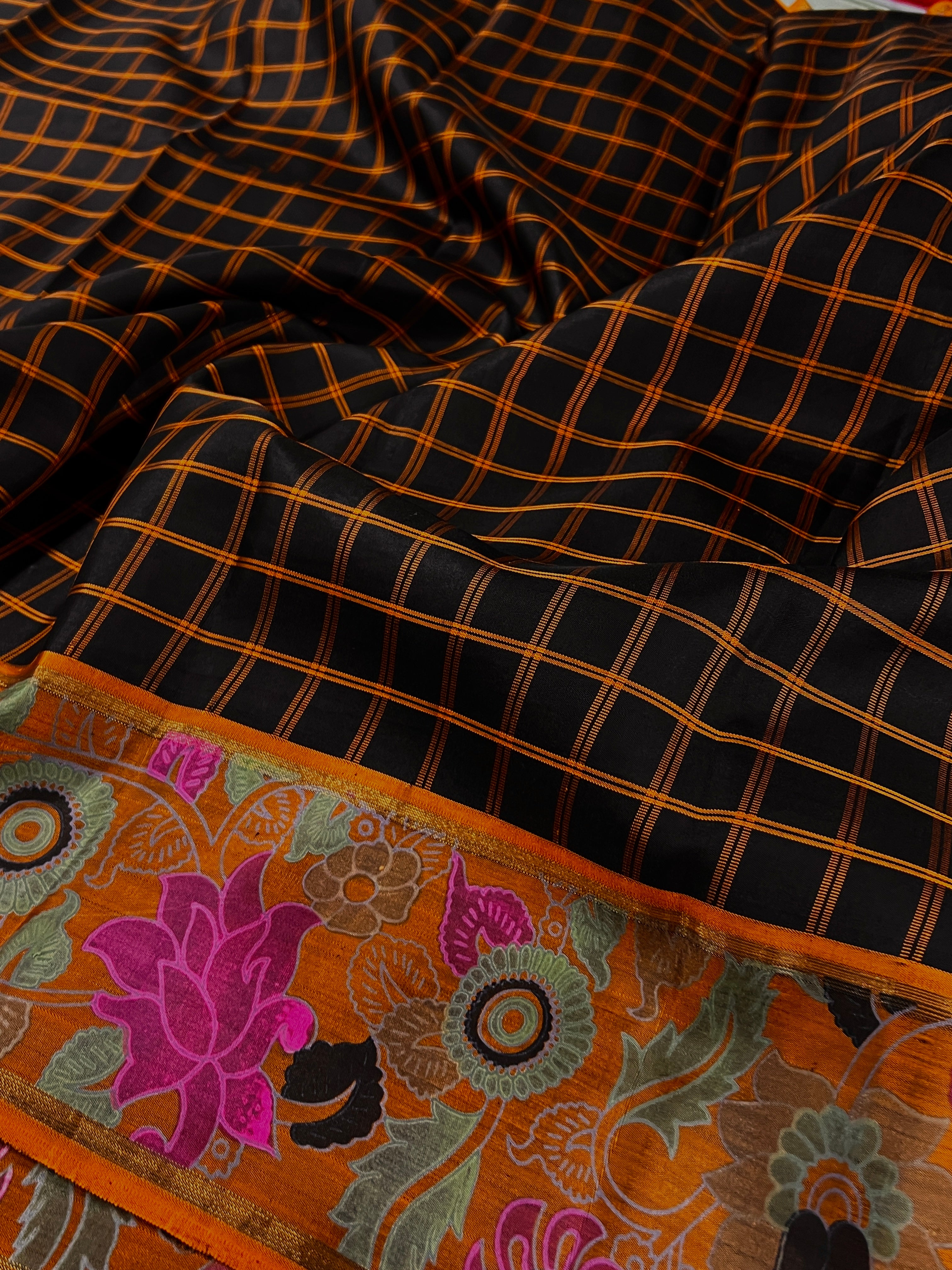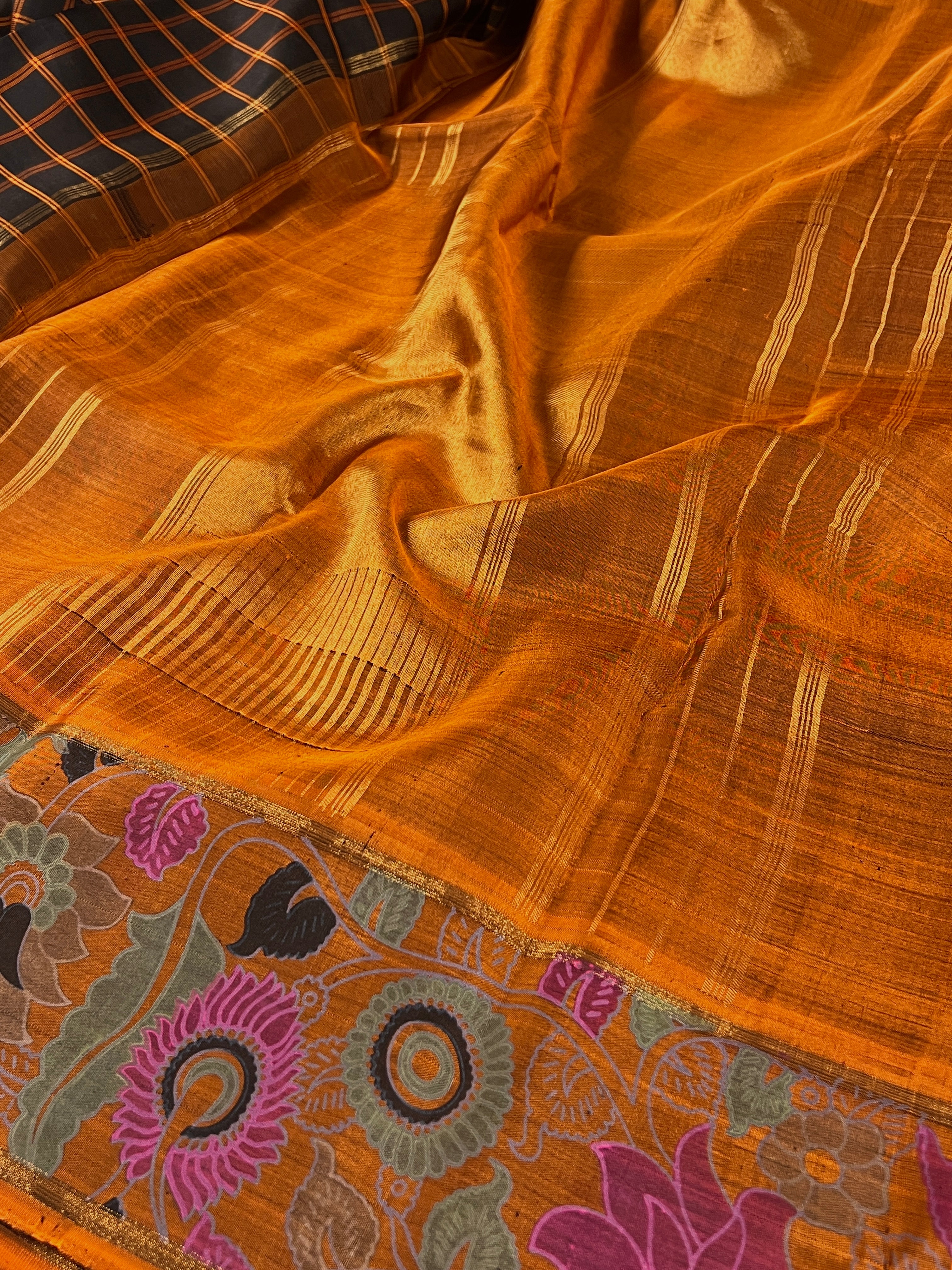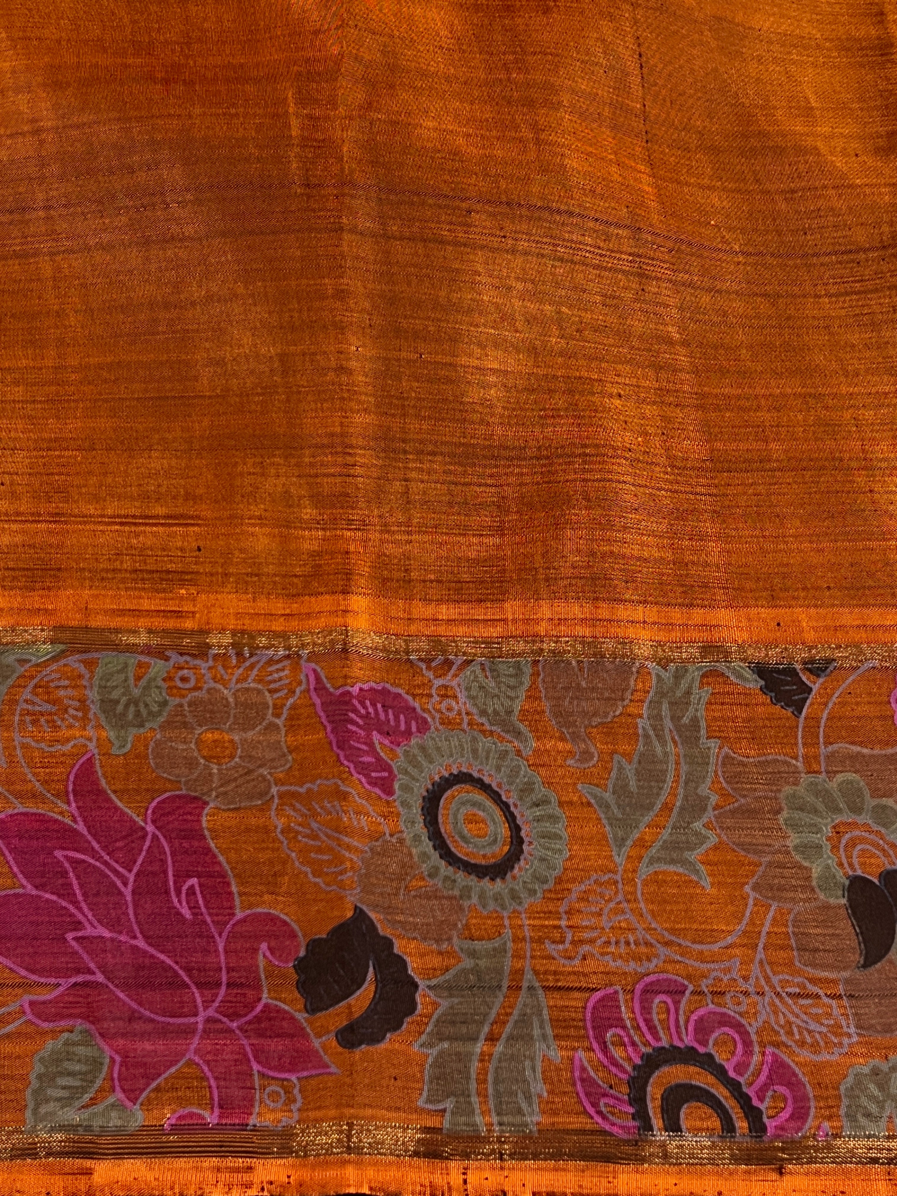Mila Burnt Orange Kalamkari Kanchi Silk Saree