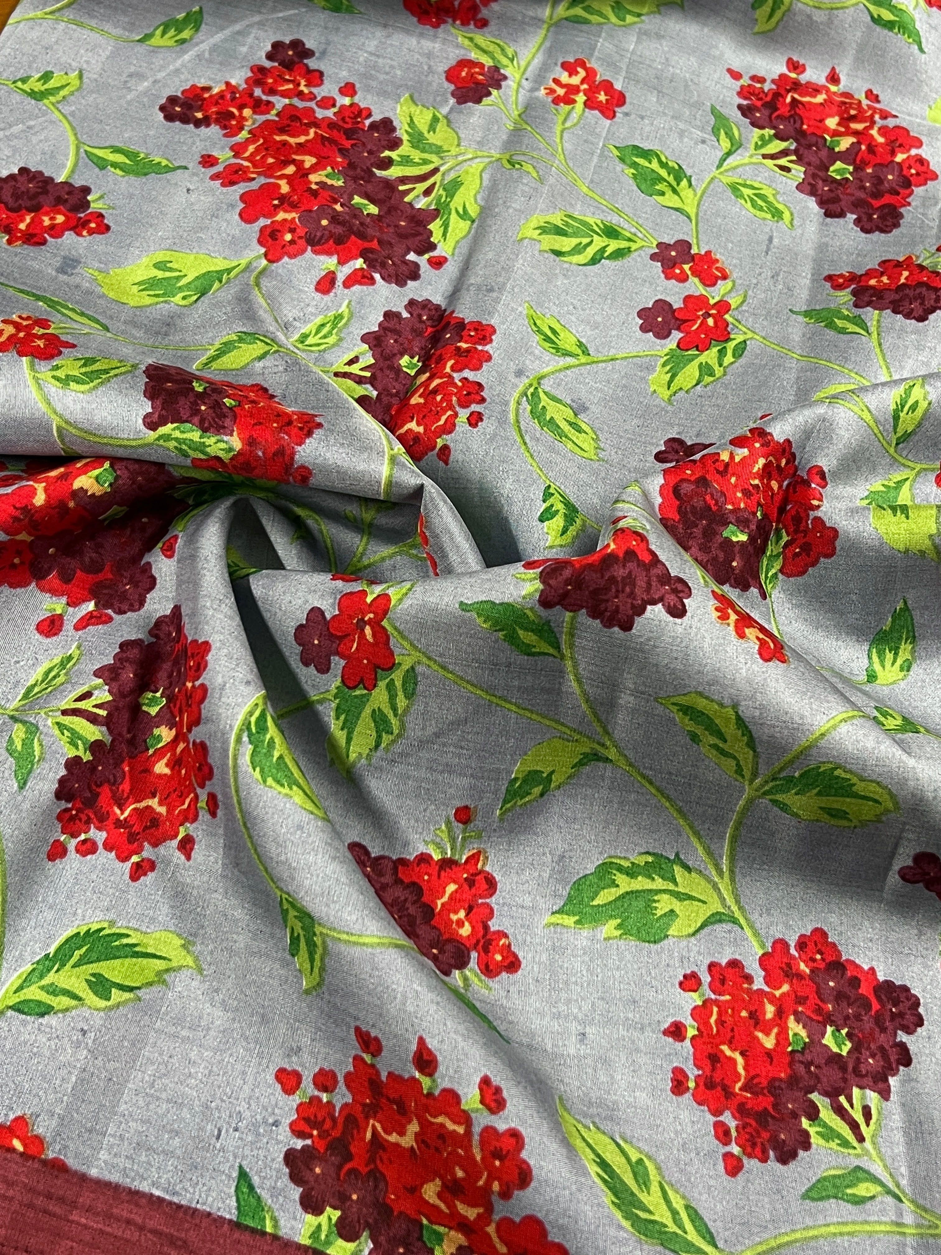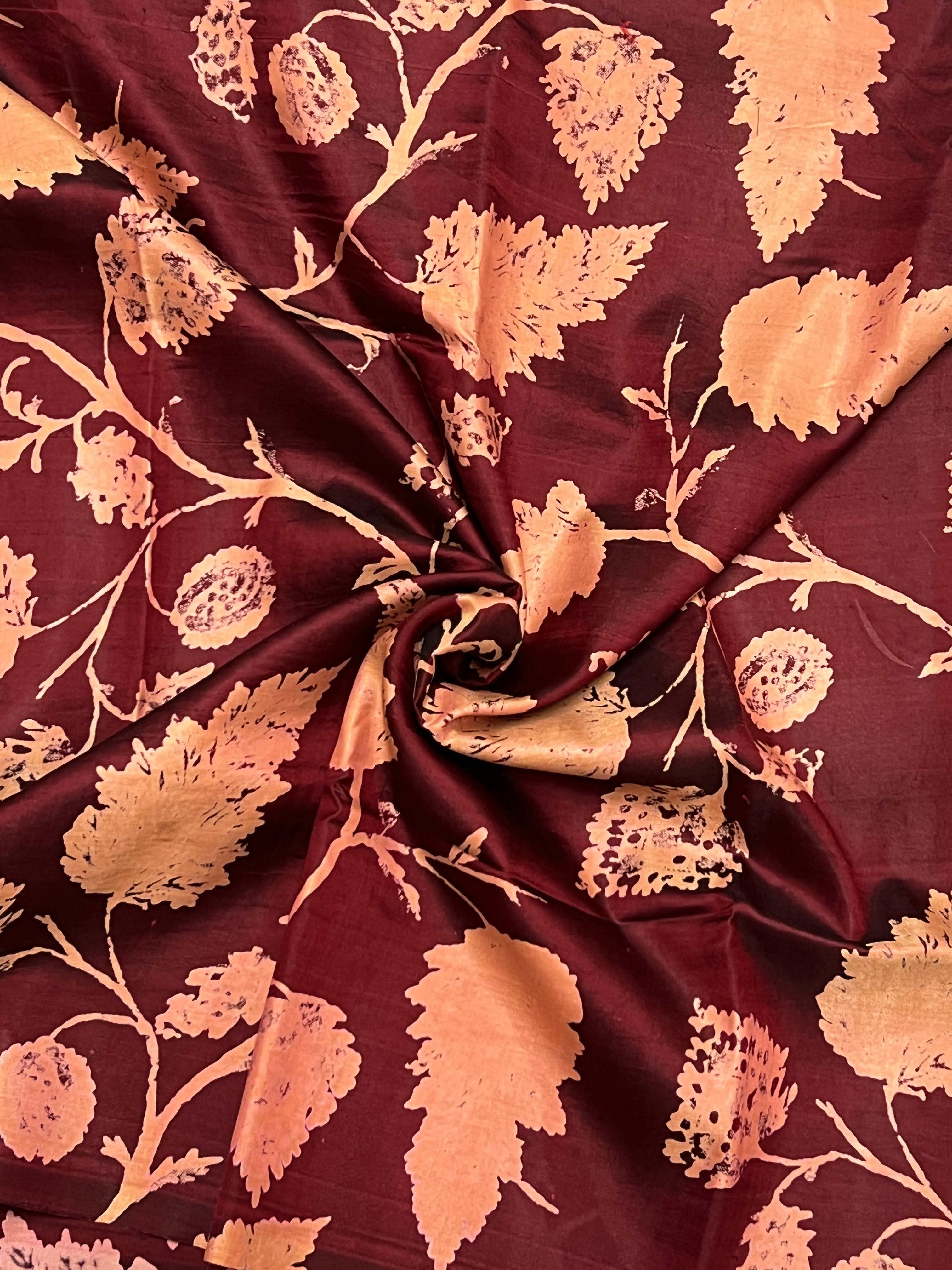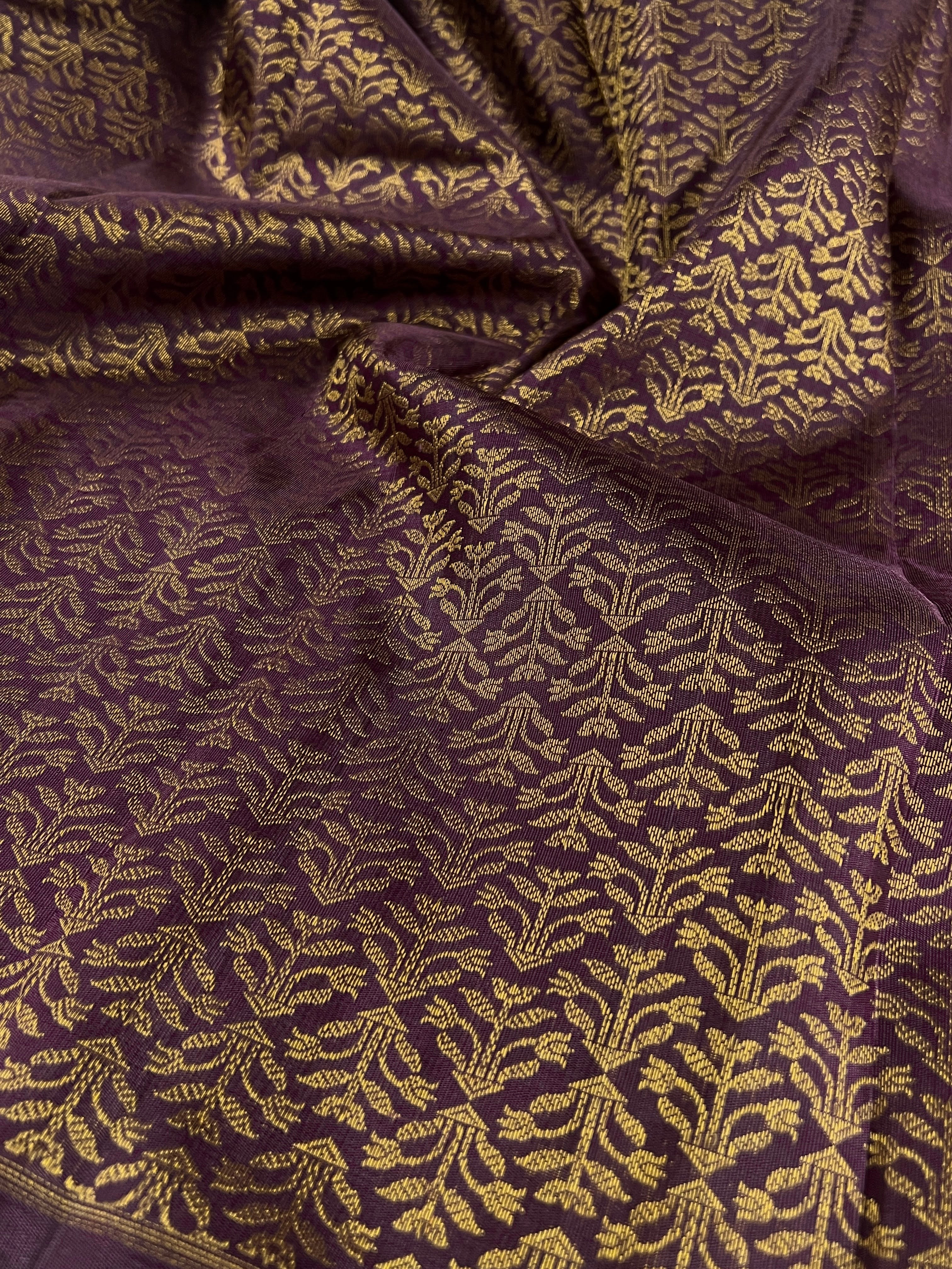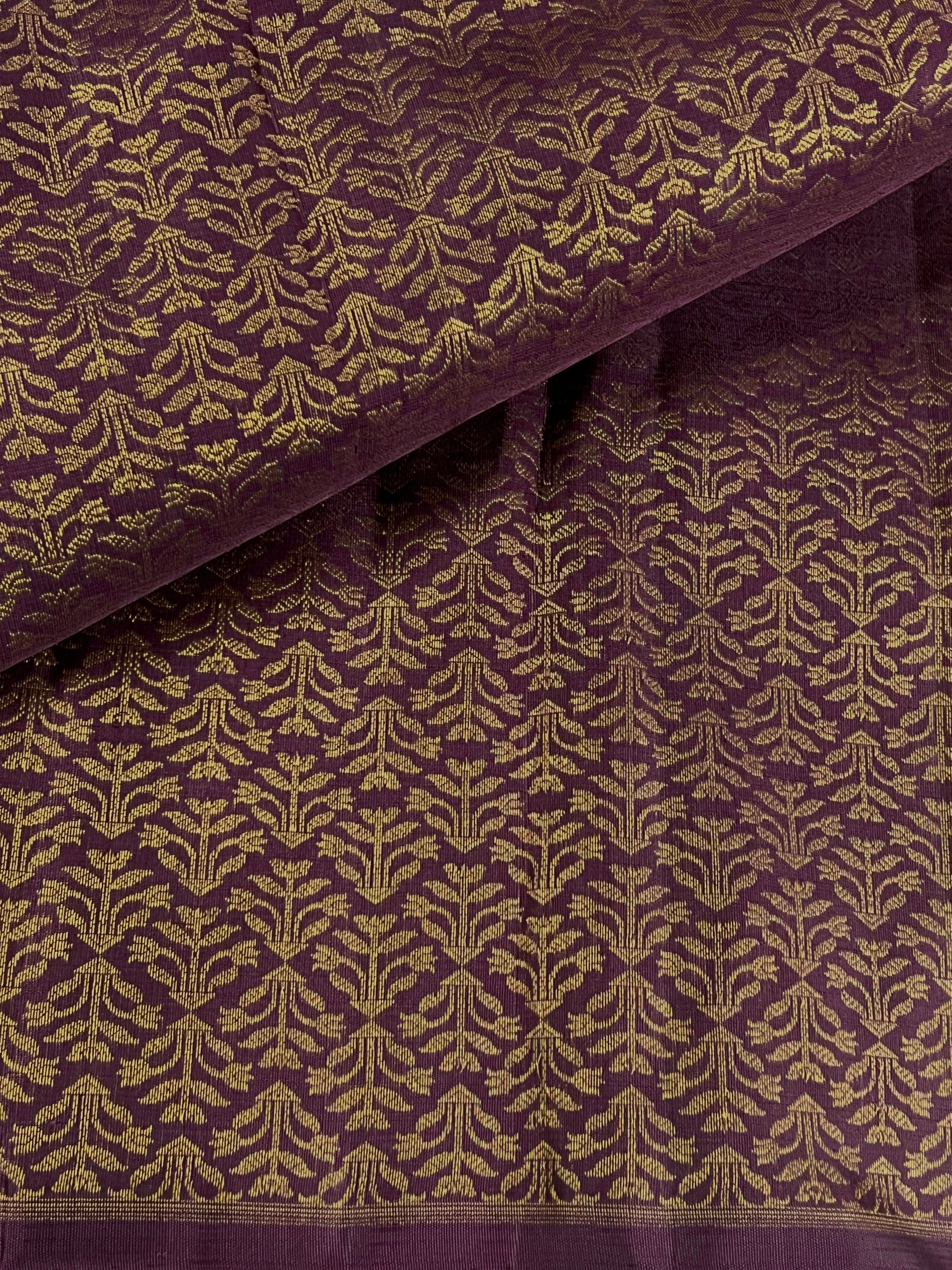 Deep Mauve Floral Kanchipuram Silk Fabric