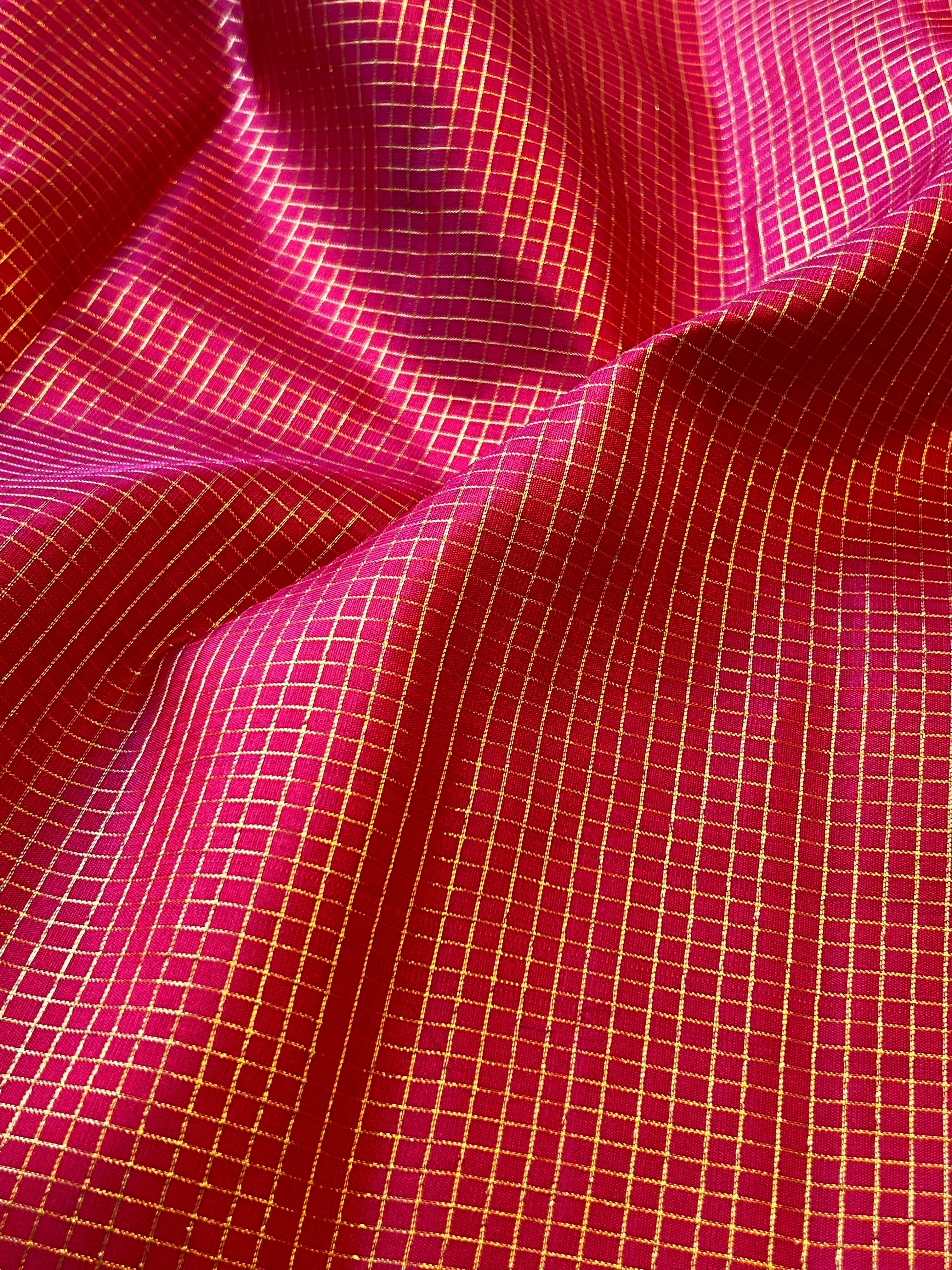 Micro checked kanchipuram silk fabric