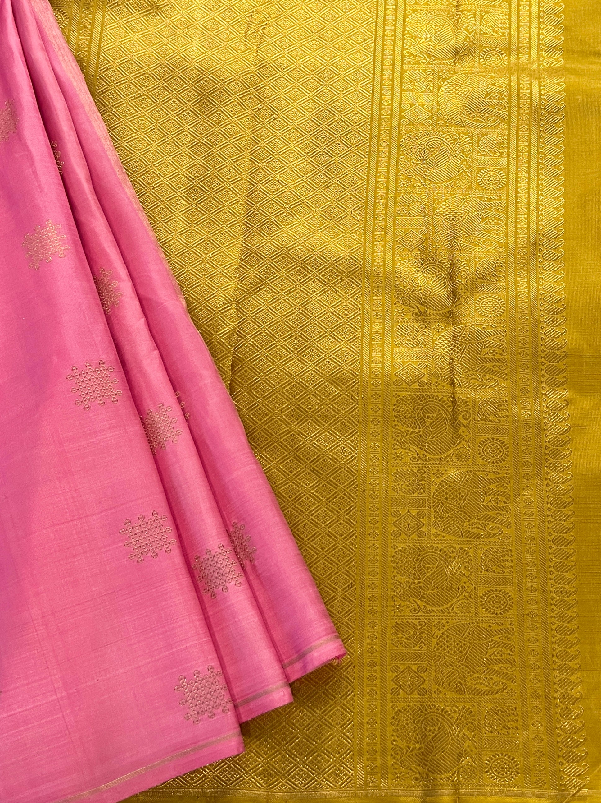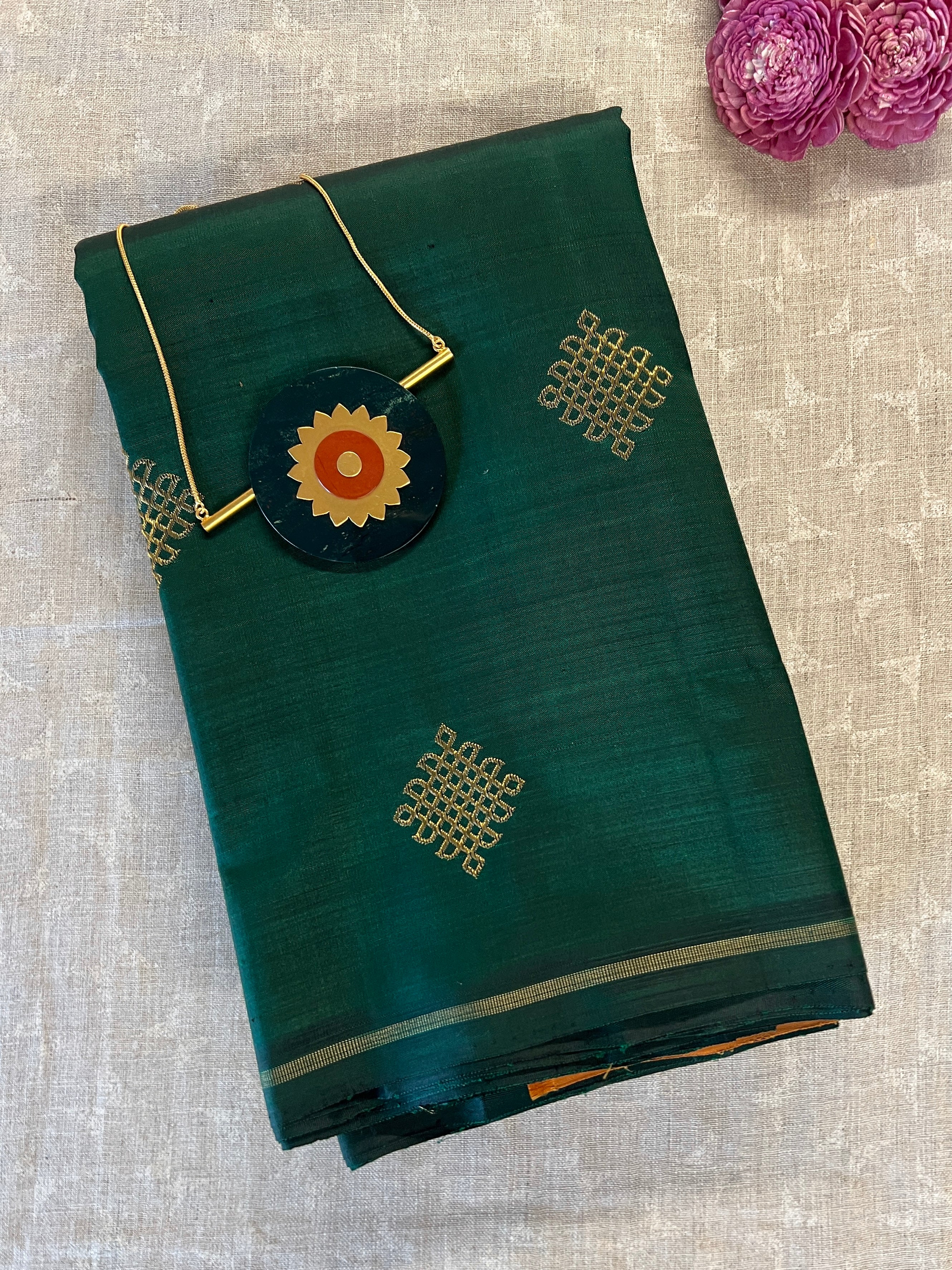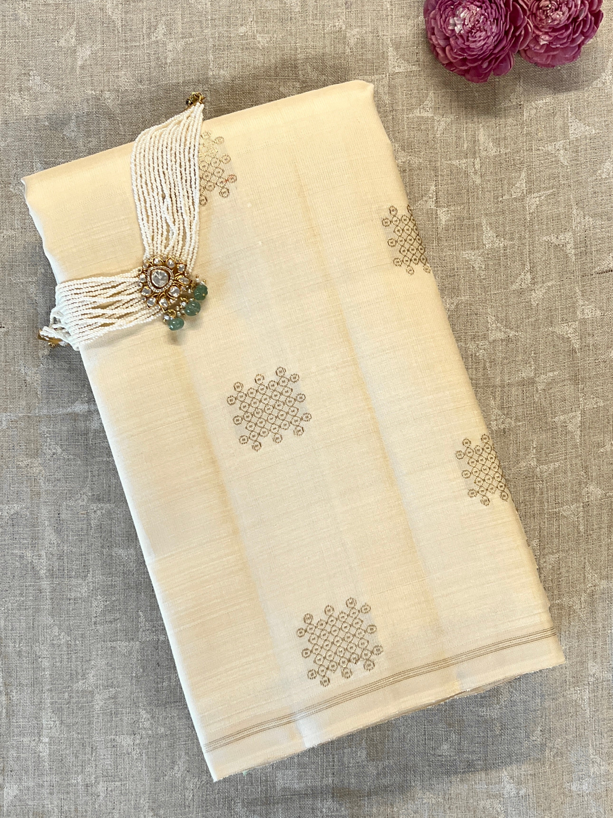 • Handwoven in Kanchipuram.