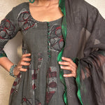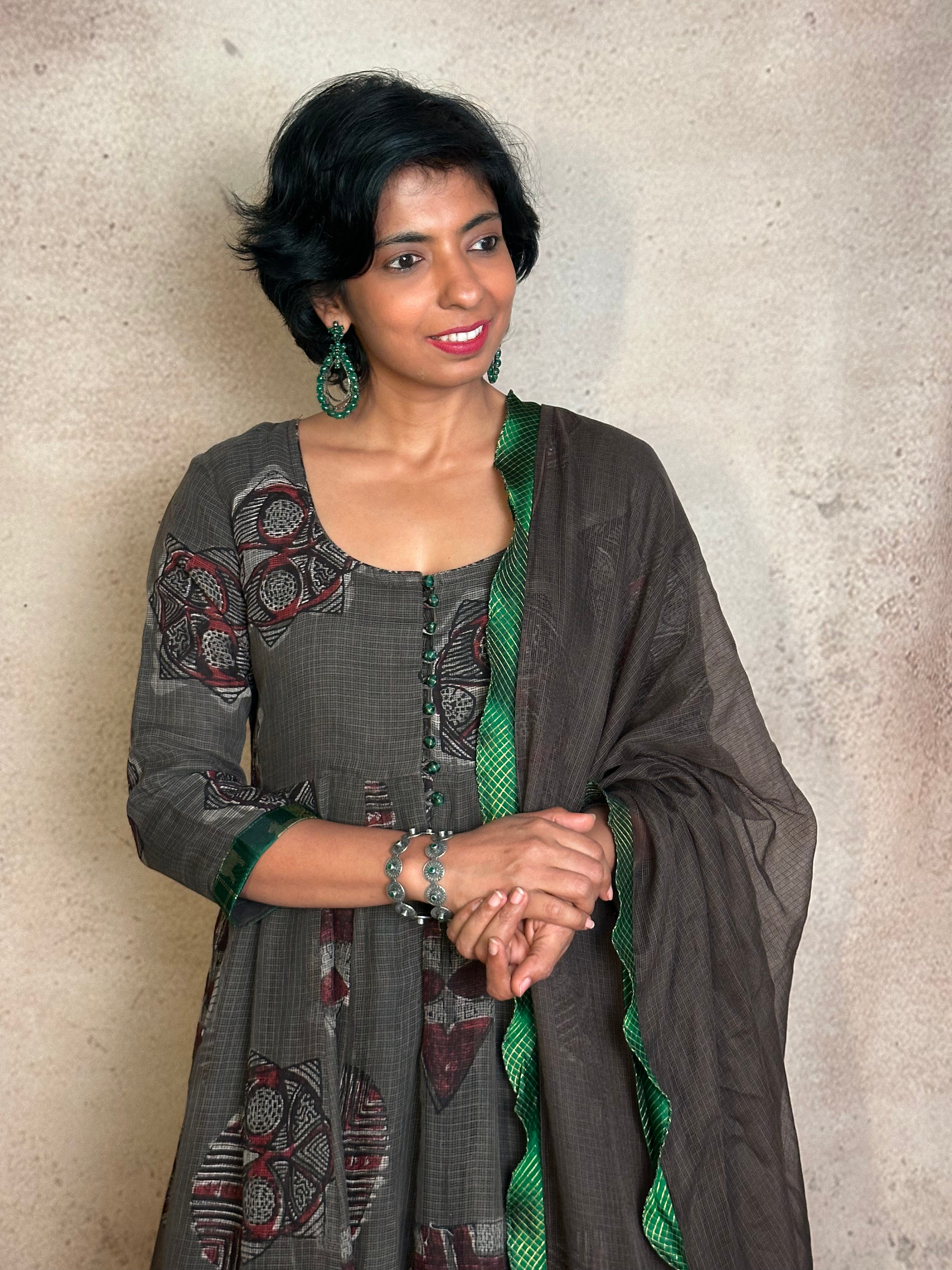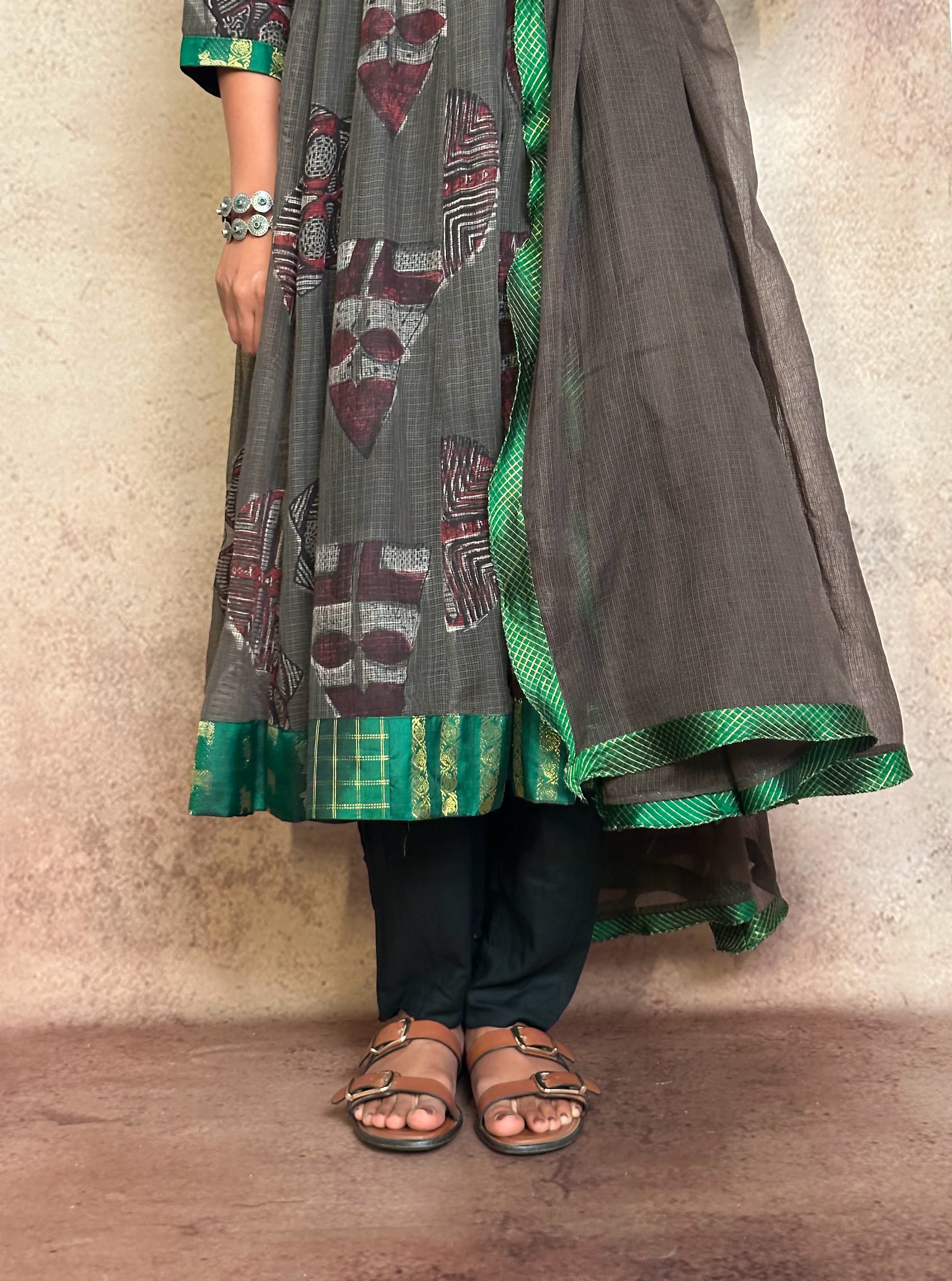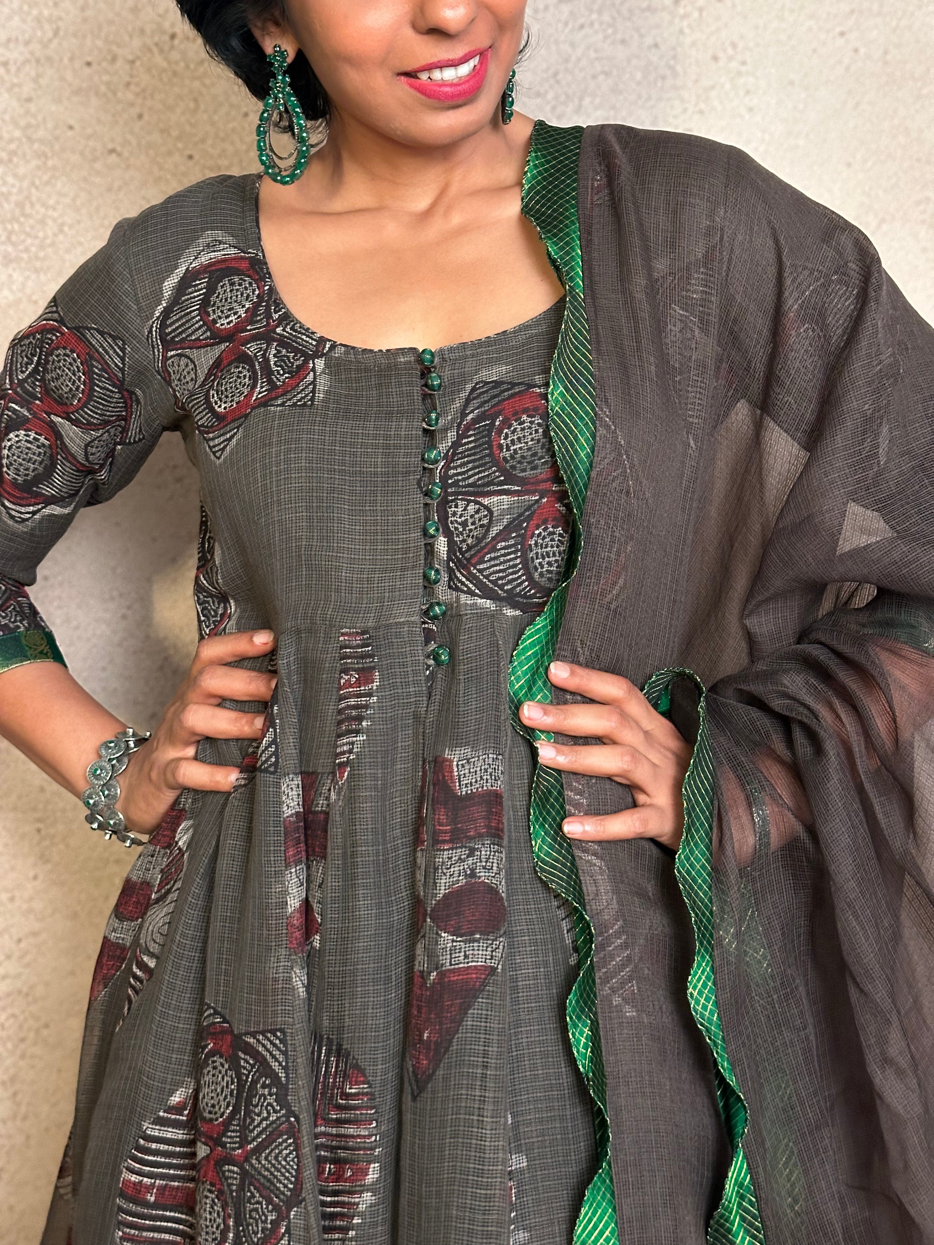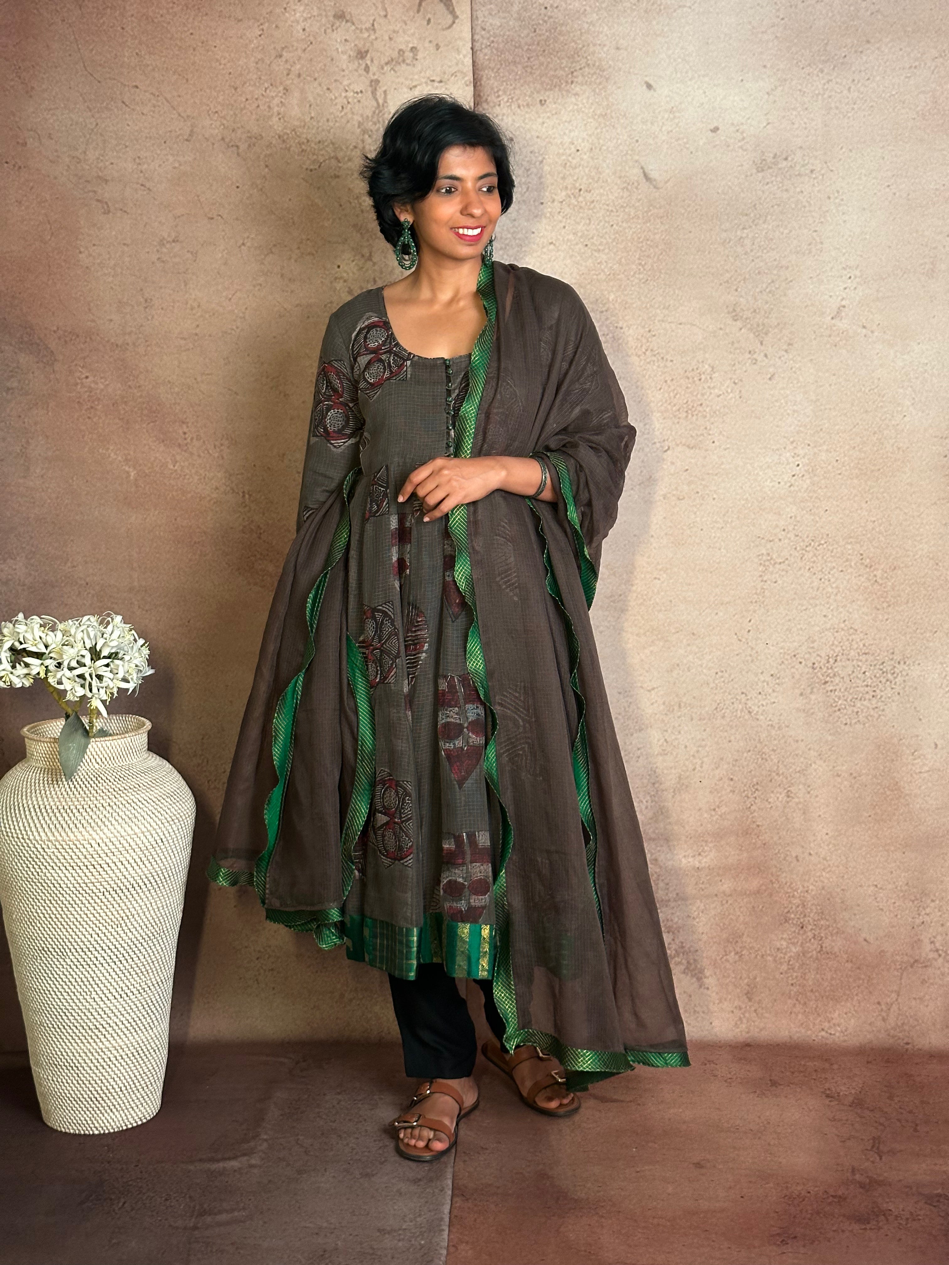 Kota dupatta with a twisted ribbon-like silk frill for a unique statement.