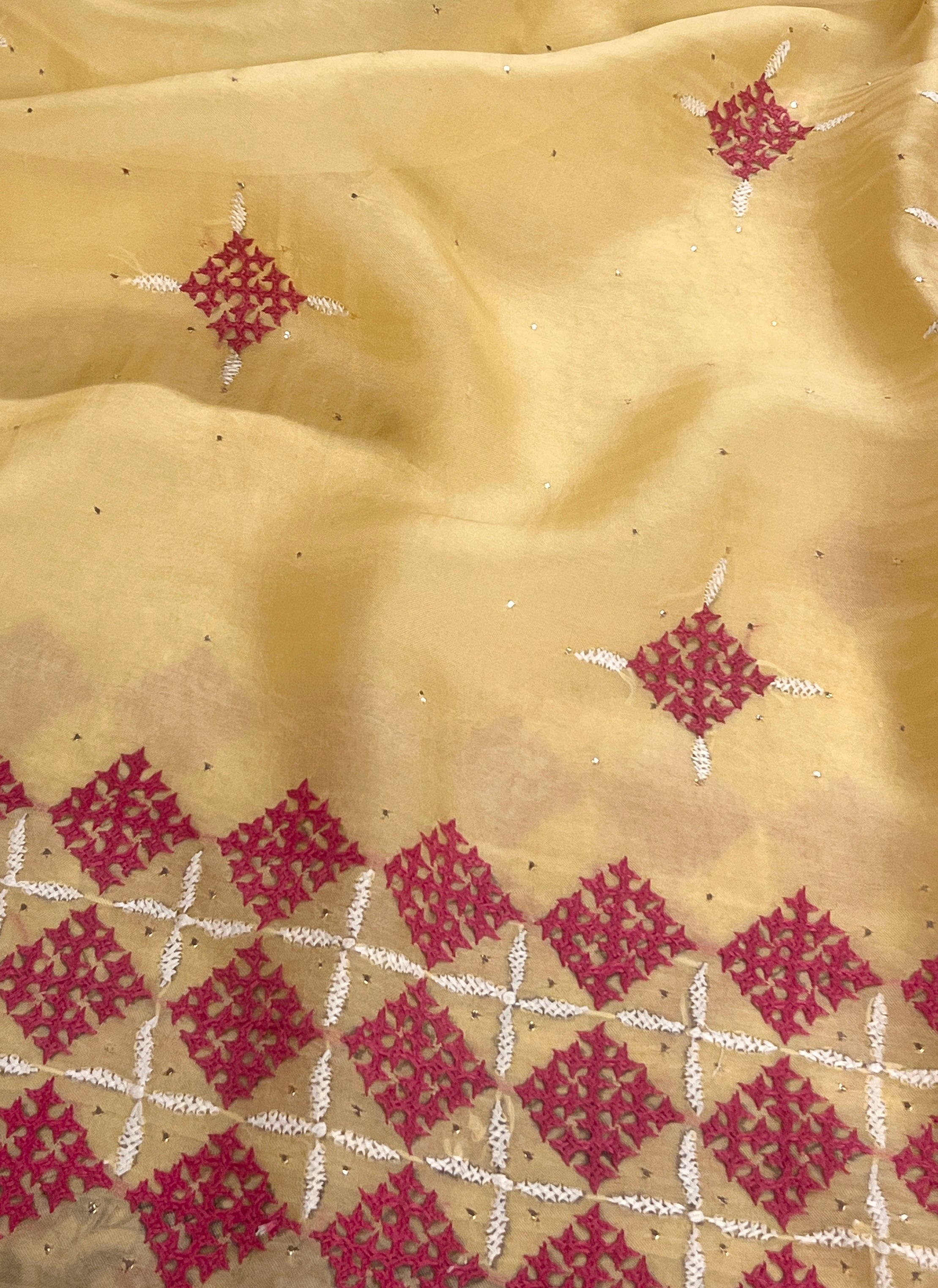 Tuhina Yellow Kutch Embroidery Organza Saree