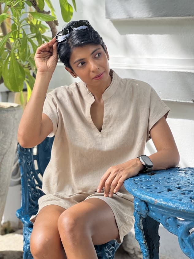 Mocha linen embroidered kurta