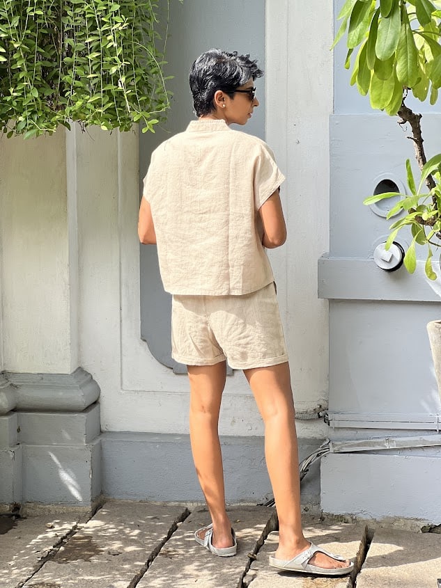 Beige linen box shirt