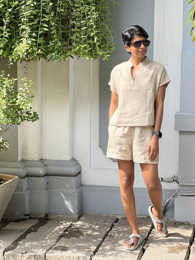 Beige linen shorts
