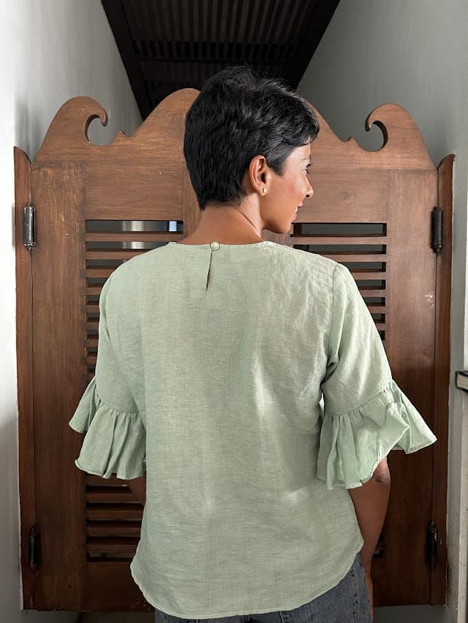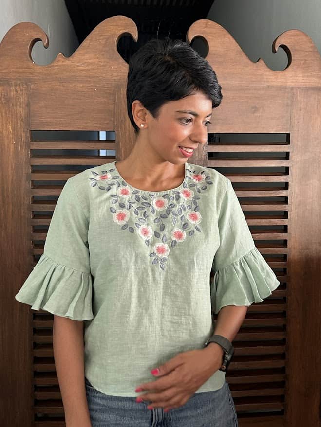 Green embroidered linen top