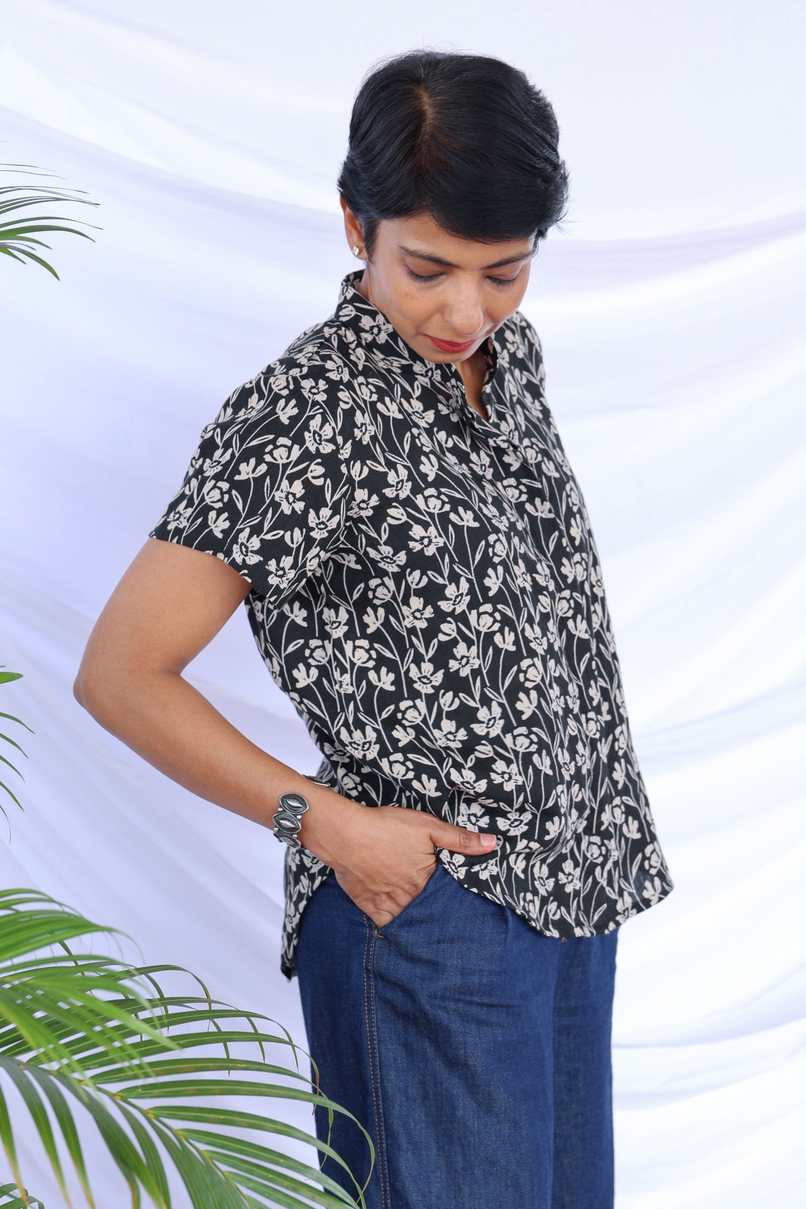 Black floral shirt