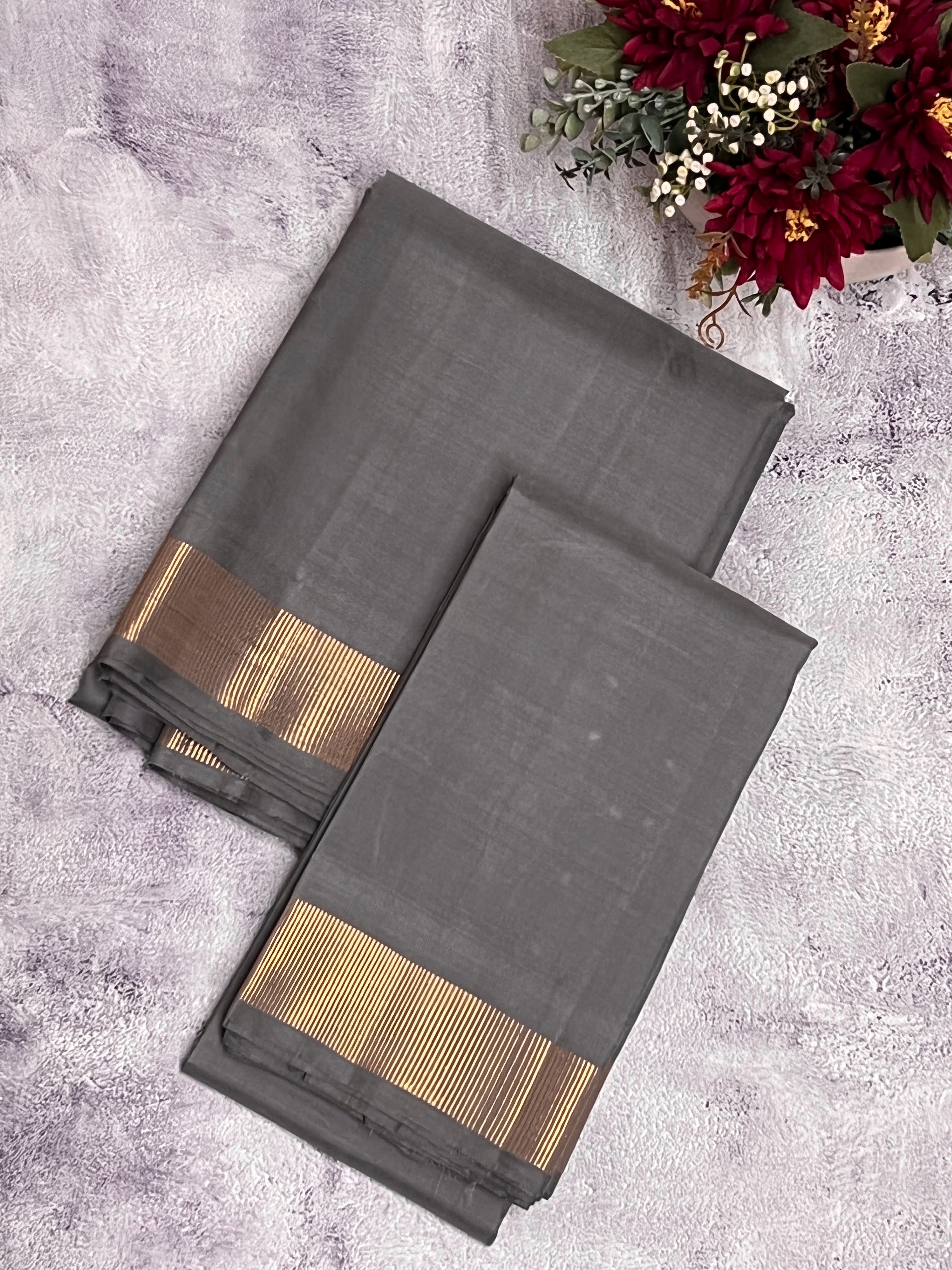 Sah A Steel grey pure silk veshti set