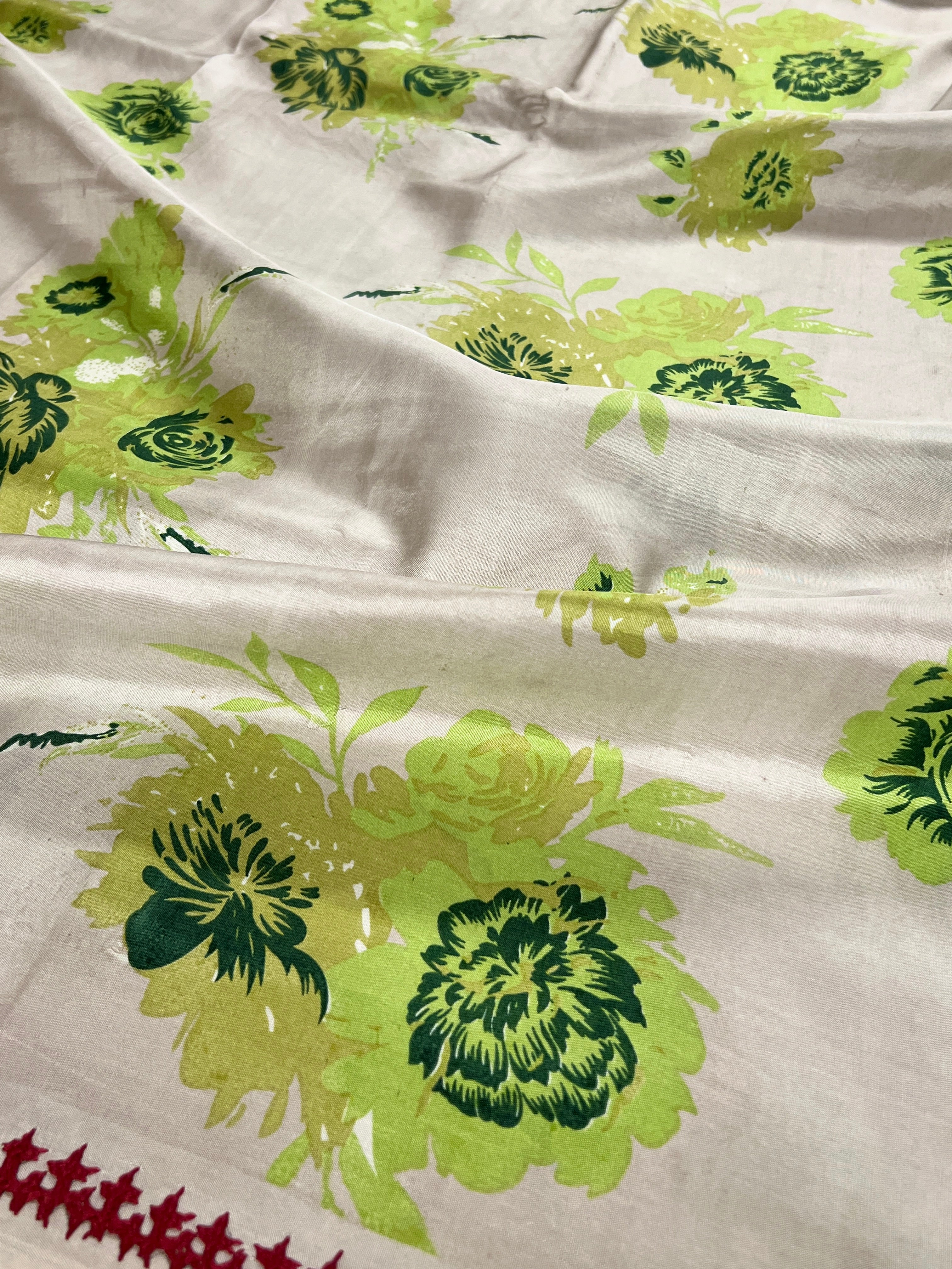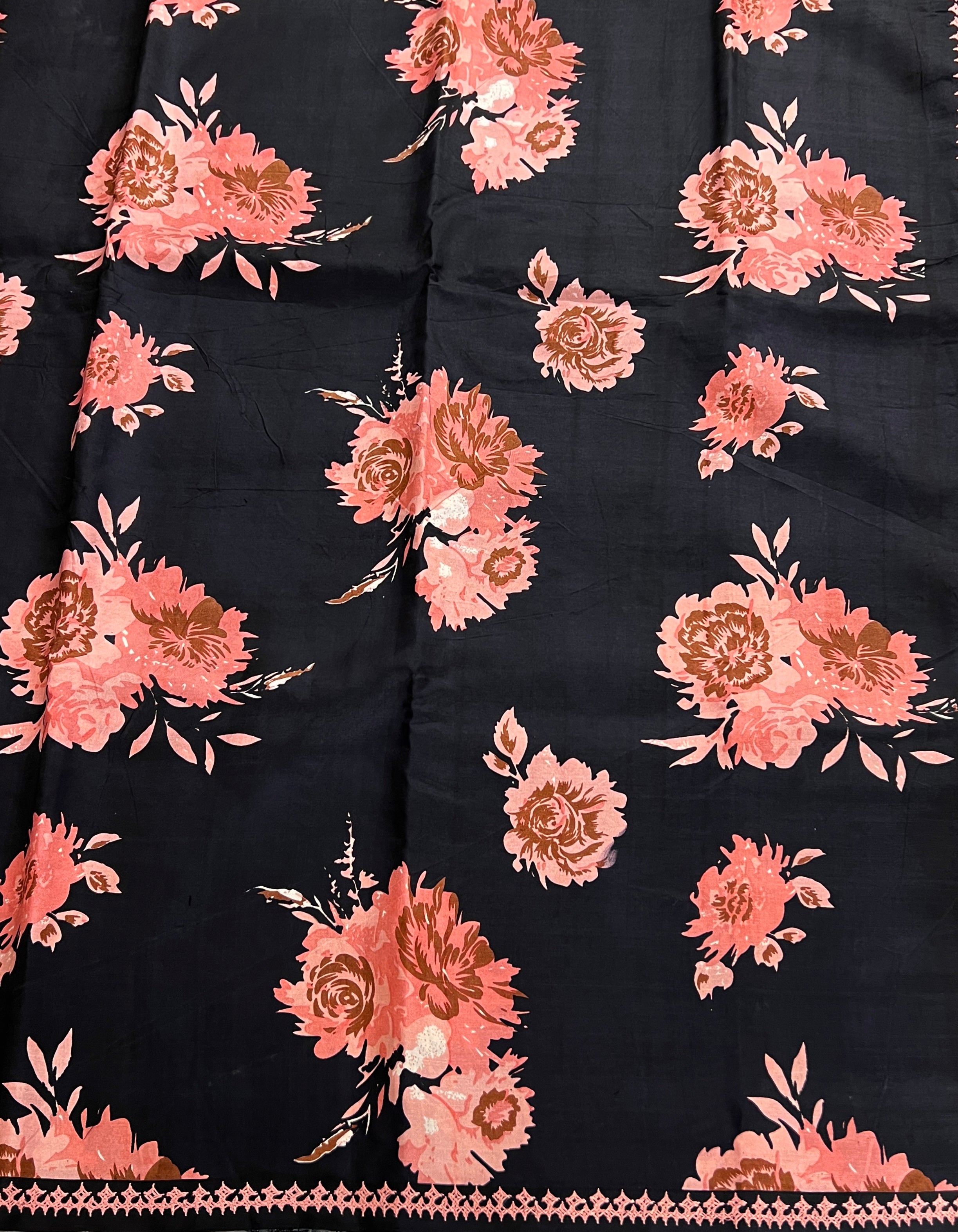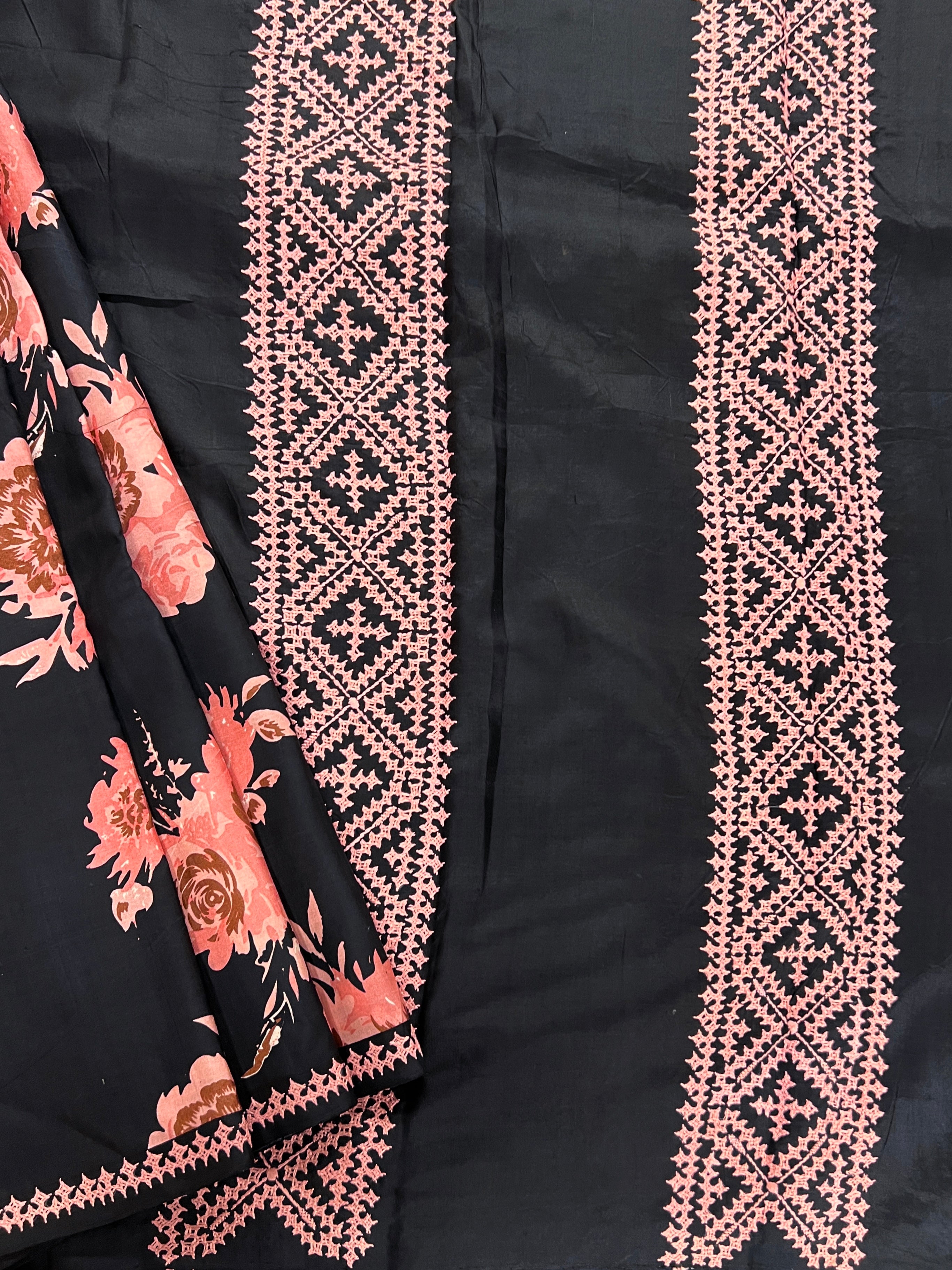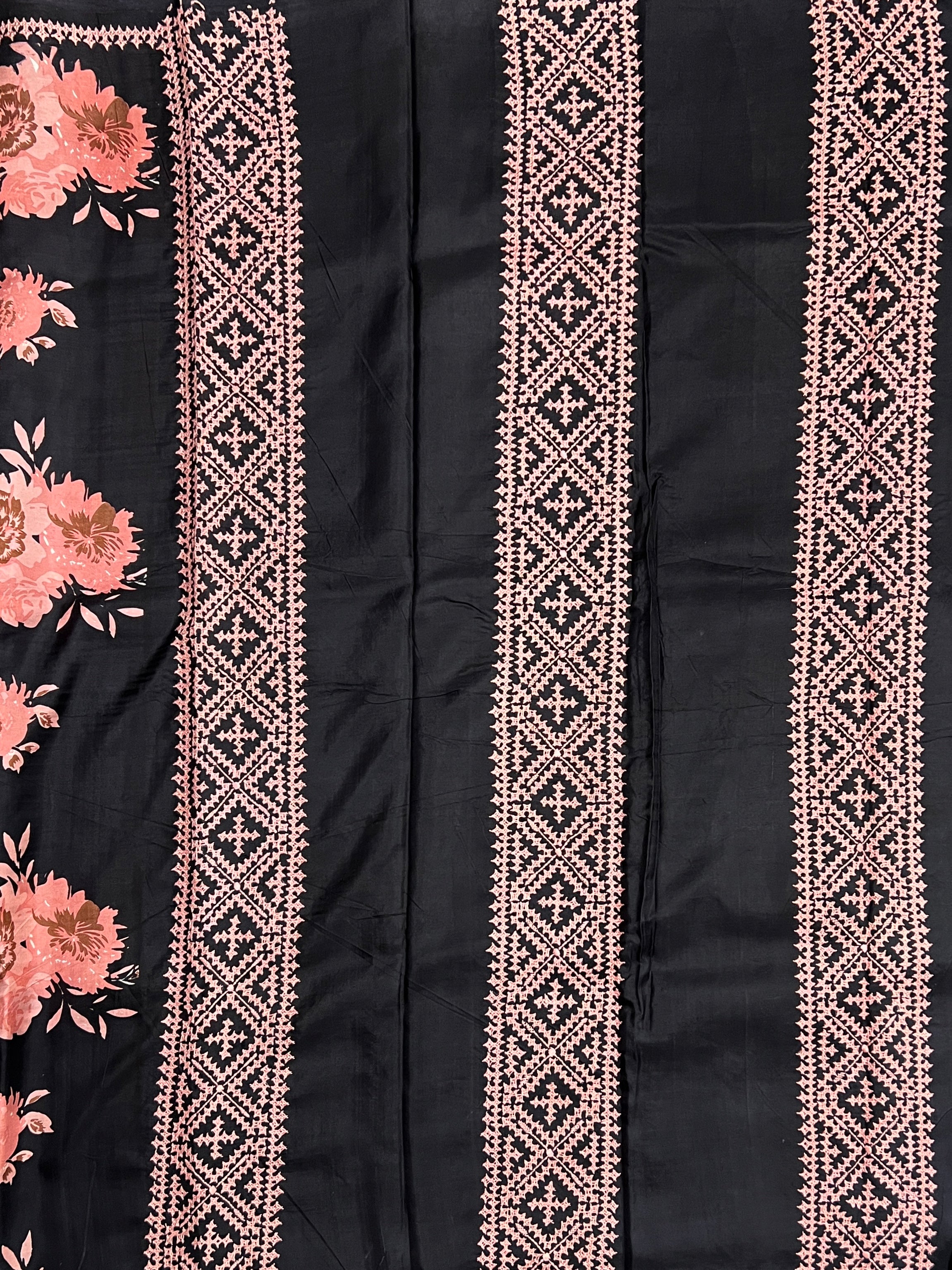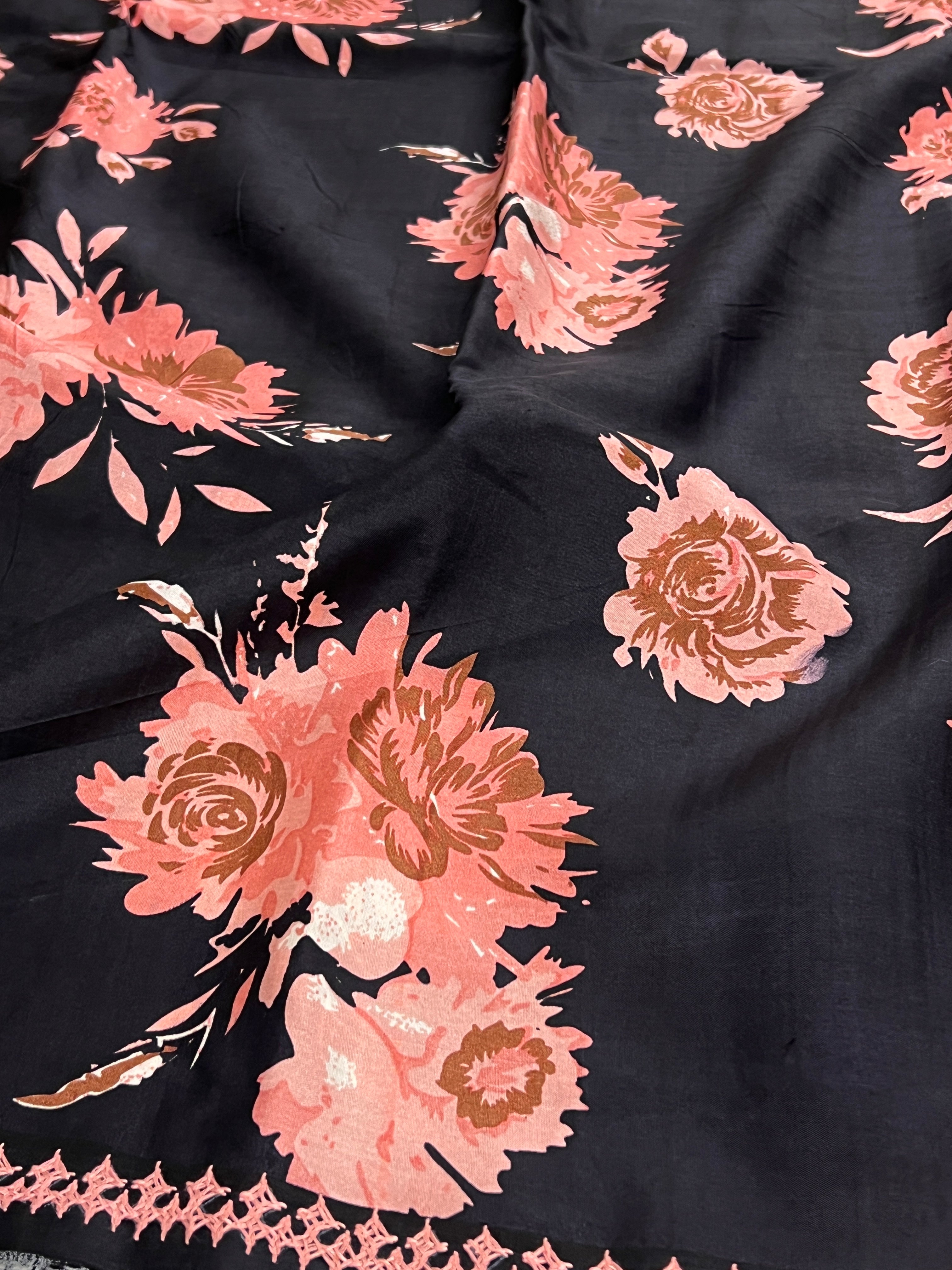 Striking plain base adorned with large blooming floral motifs that create a bold, elegant statement.