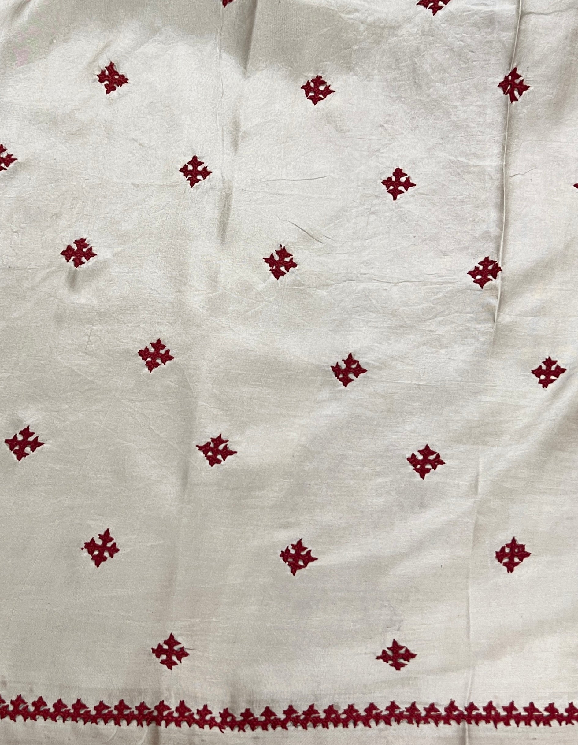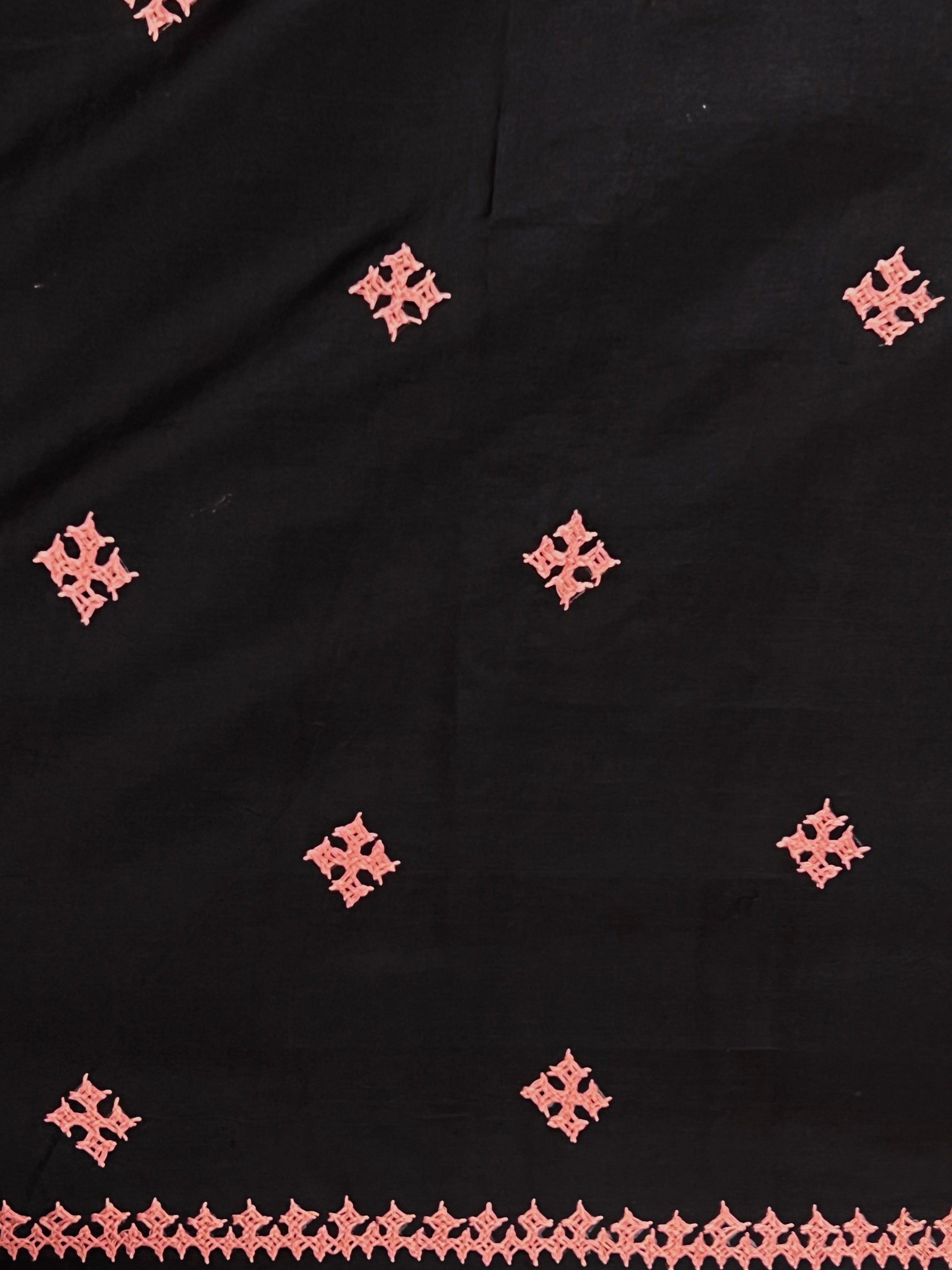 Dry clean only to preserve the fabric, colour, and detailed handwork.