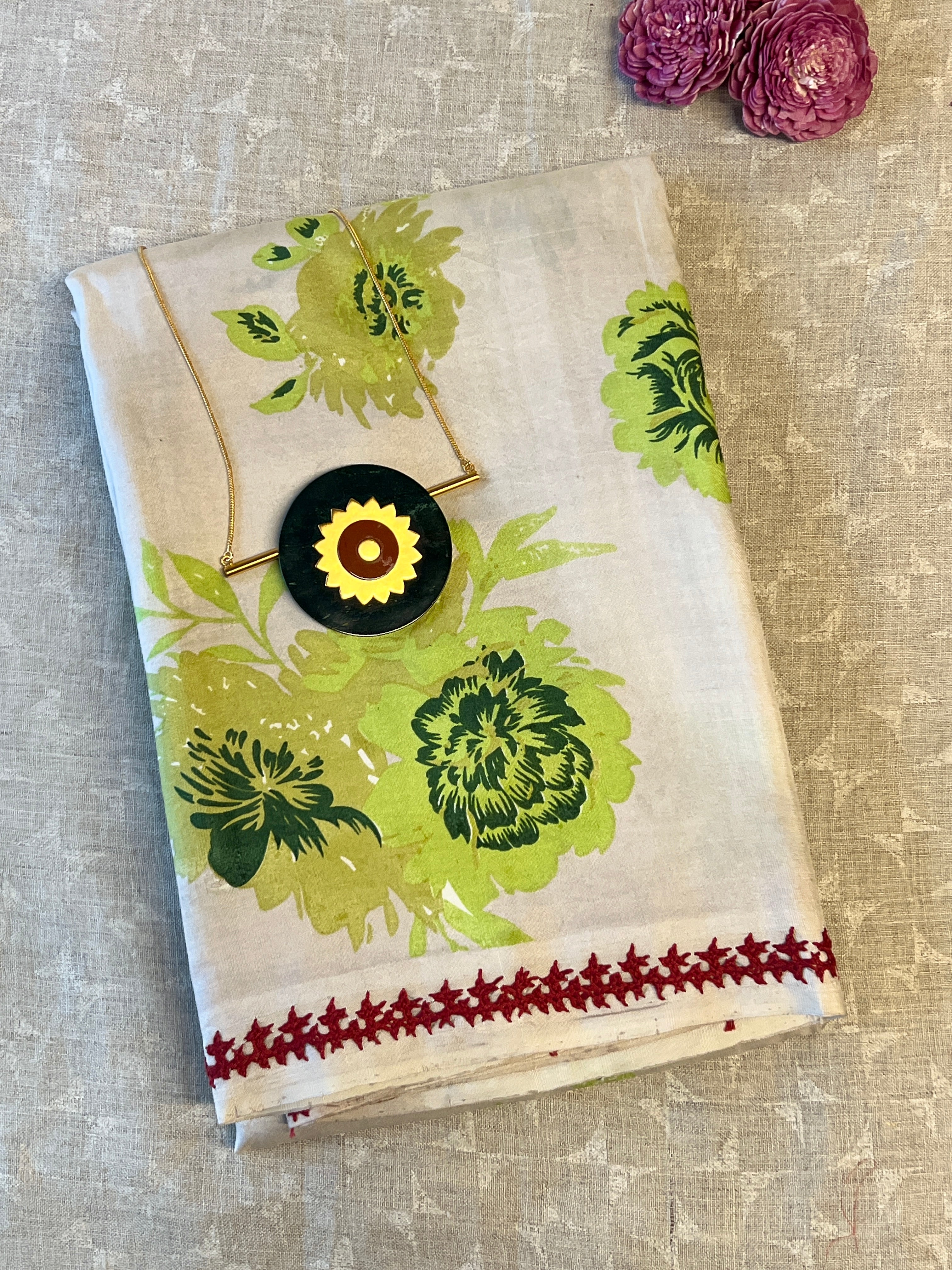 Crafted on pure silk, hand block printed using Azo free dyes for a sustainable and luxurious finish.