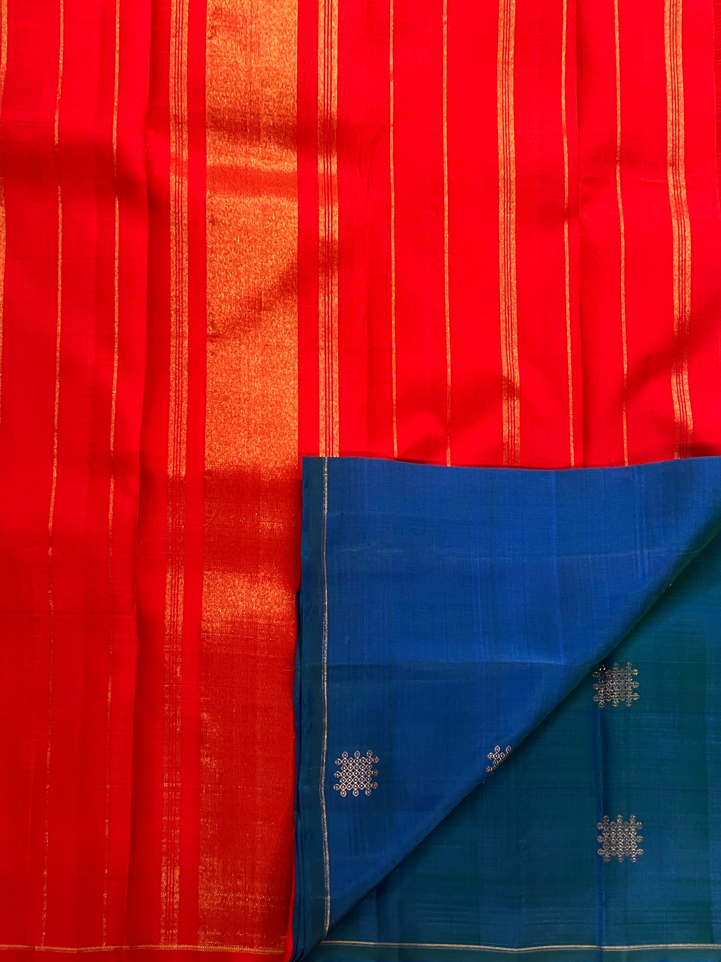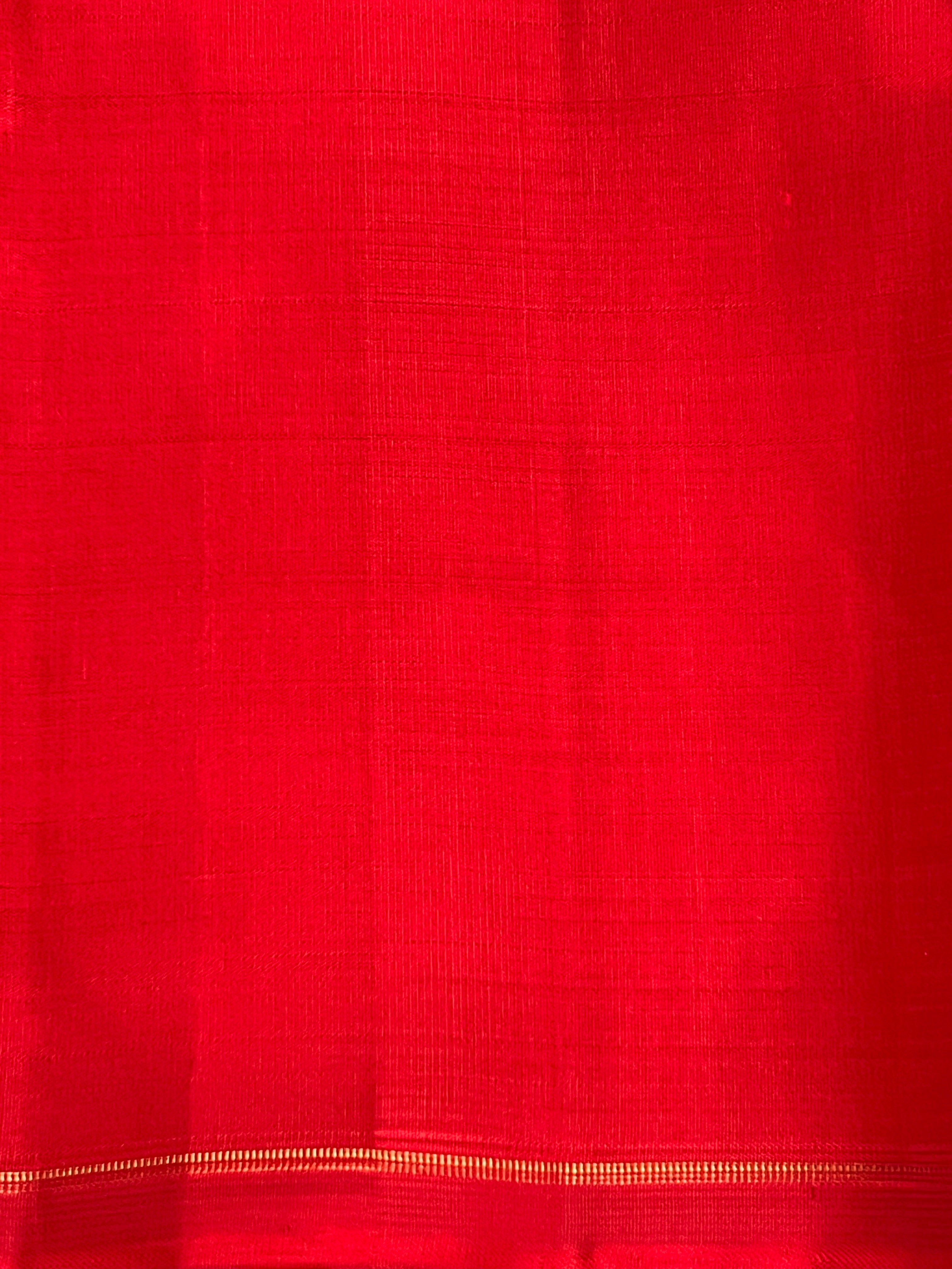 • Pallu and Blouse in contrasting red, creating a striking and elegant look.