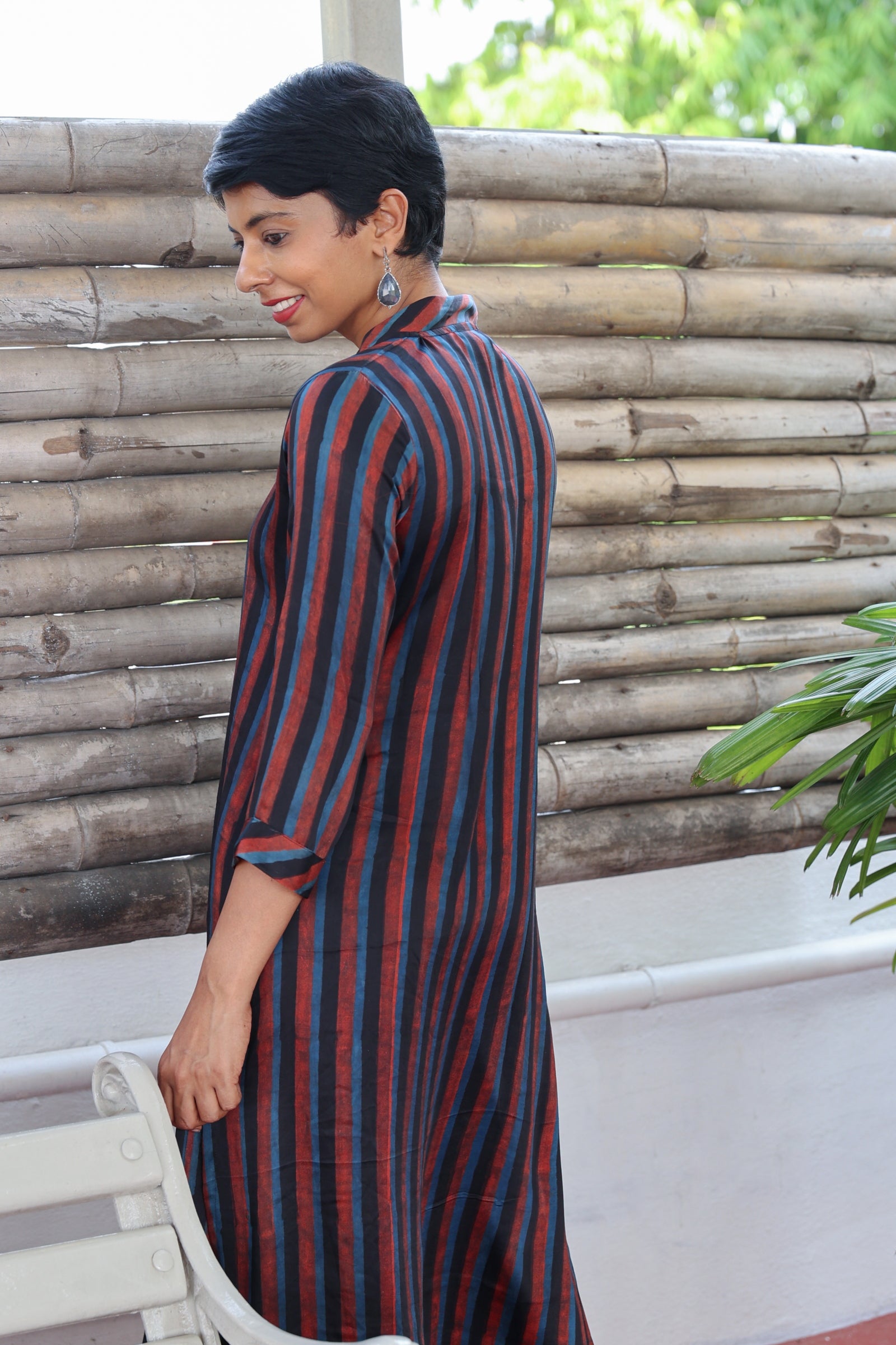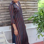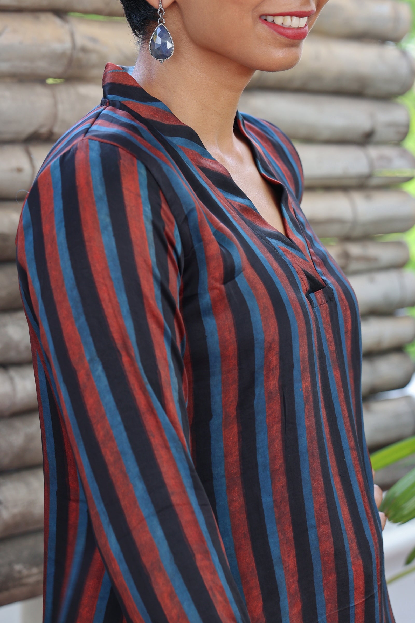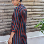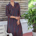 Ajrakh printed striped silk kurta