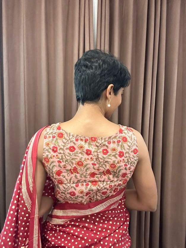 Pink cotton blouse with buttons on the side for an easy slip through. Sleeveless and is the most loved colour in the wardrobe