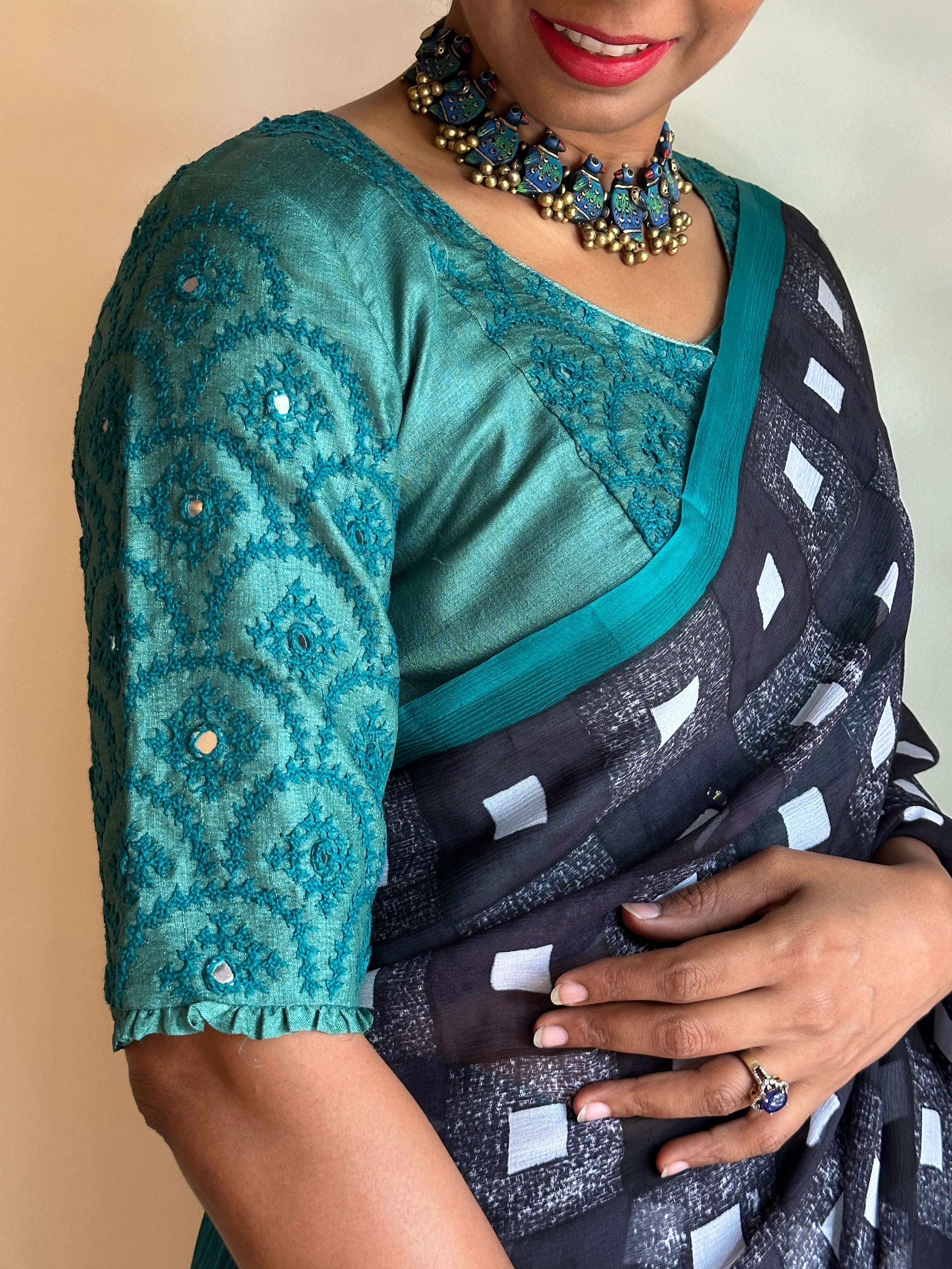 - For international orders, in the event of returns due to exchange, customer issue or if the recipient refuses the delivery due to high duty charges, the customer will be charged to & fro shipping fees as well as local duties that Aavaranaa may incur when the parcel is shipped back to us. Refunds or store credit, if any, will be calculated after the package is returned to us without damage. Any damage to the saree will need to be borne by the customer. Aavaranaa will bear the charges for shipment ONLY in cases where a wrong product or damaged product has been shipped.