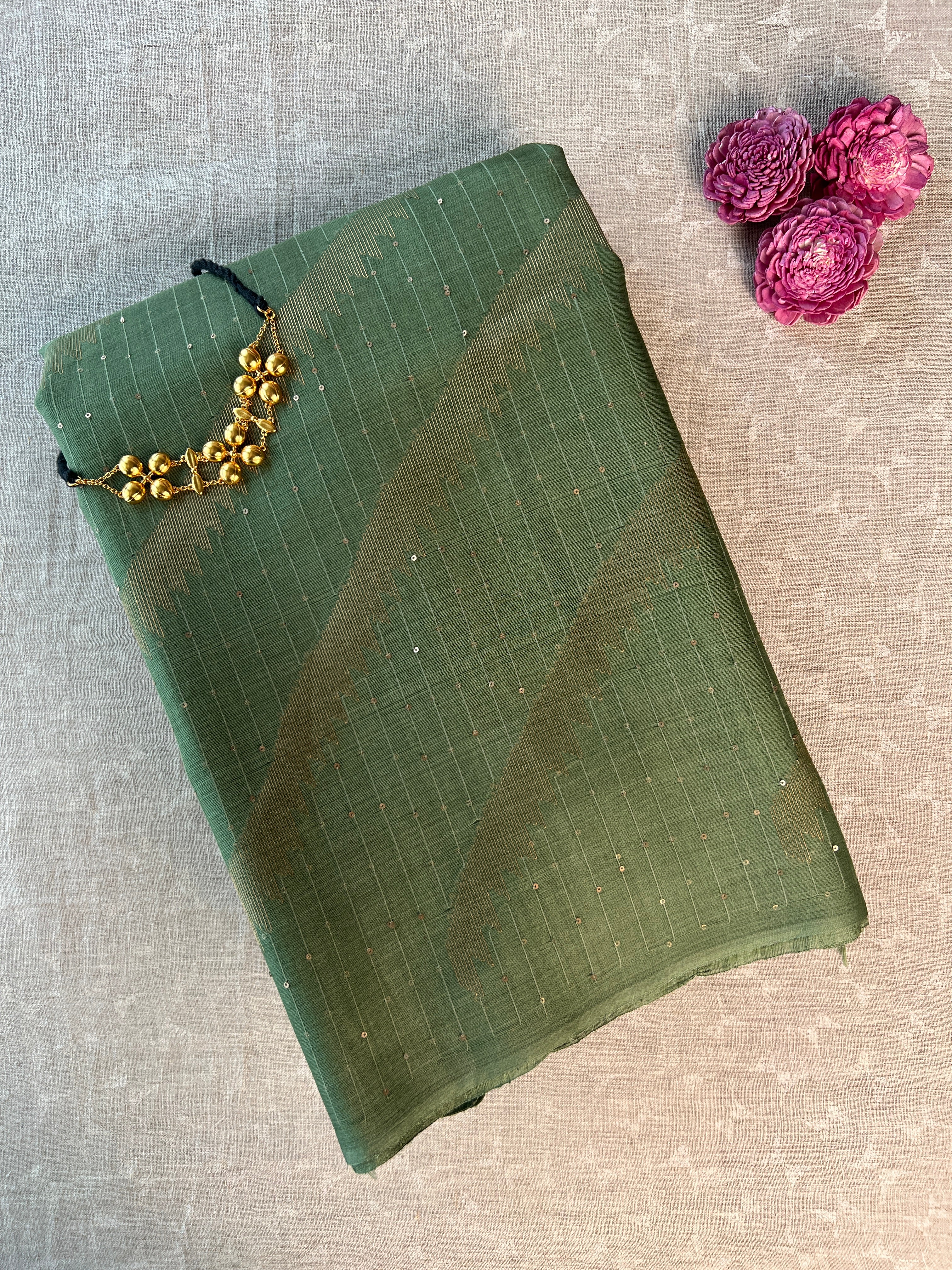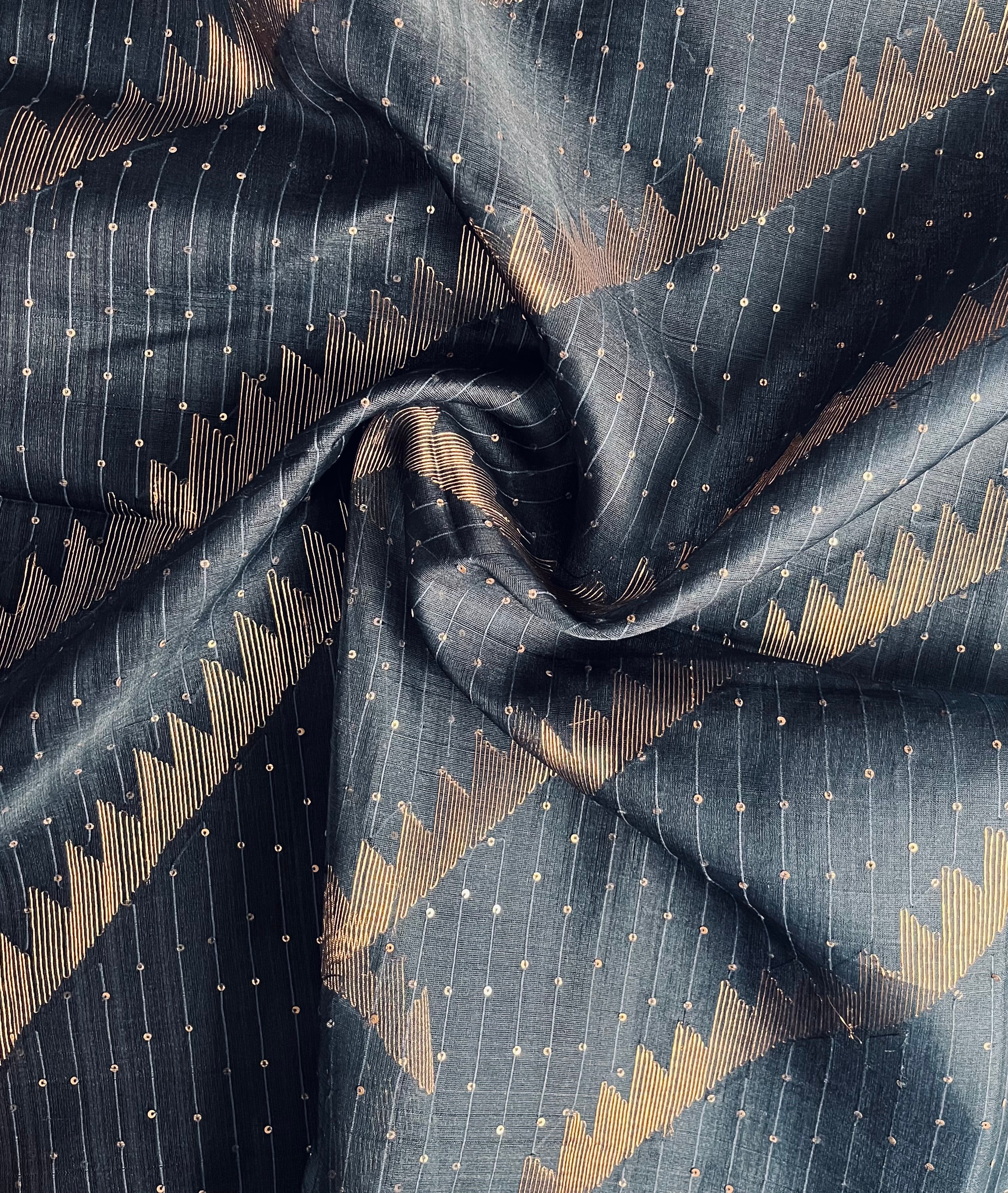 • Zari stripes woven in a diagonal fashion